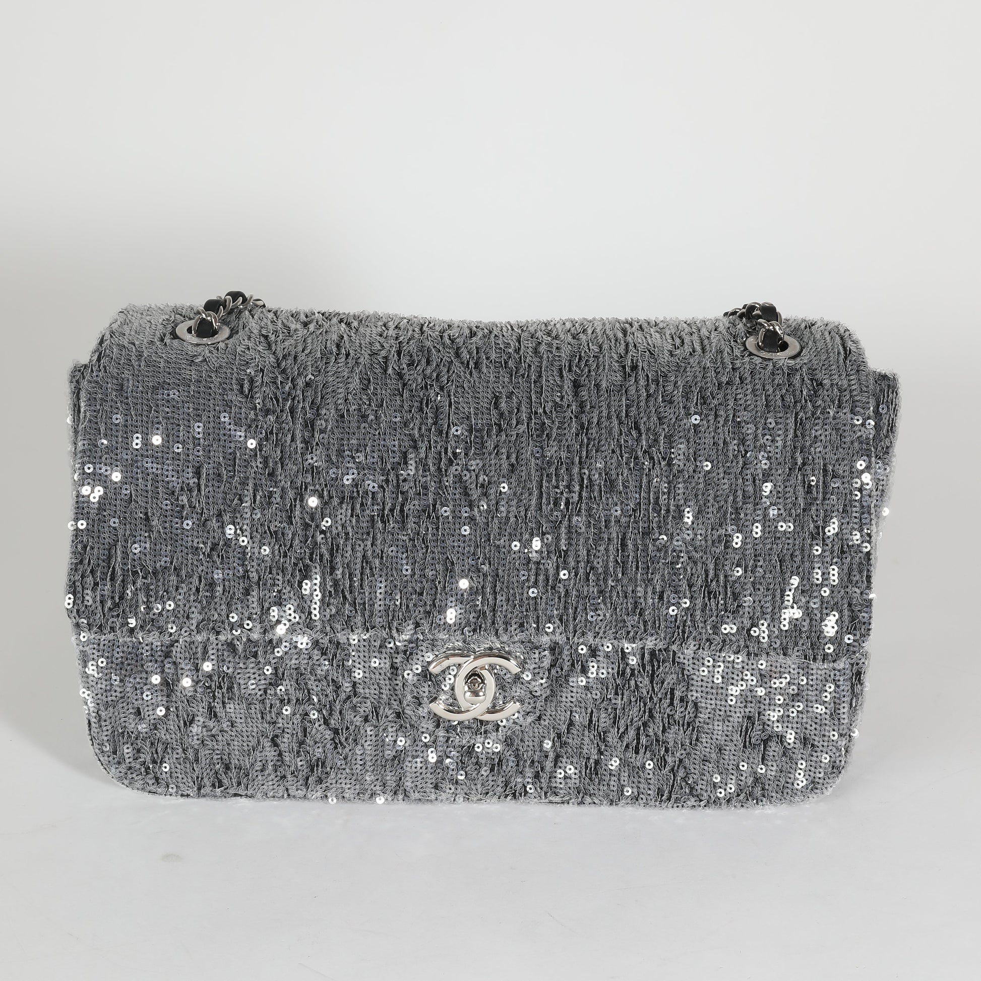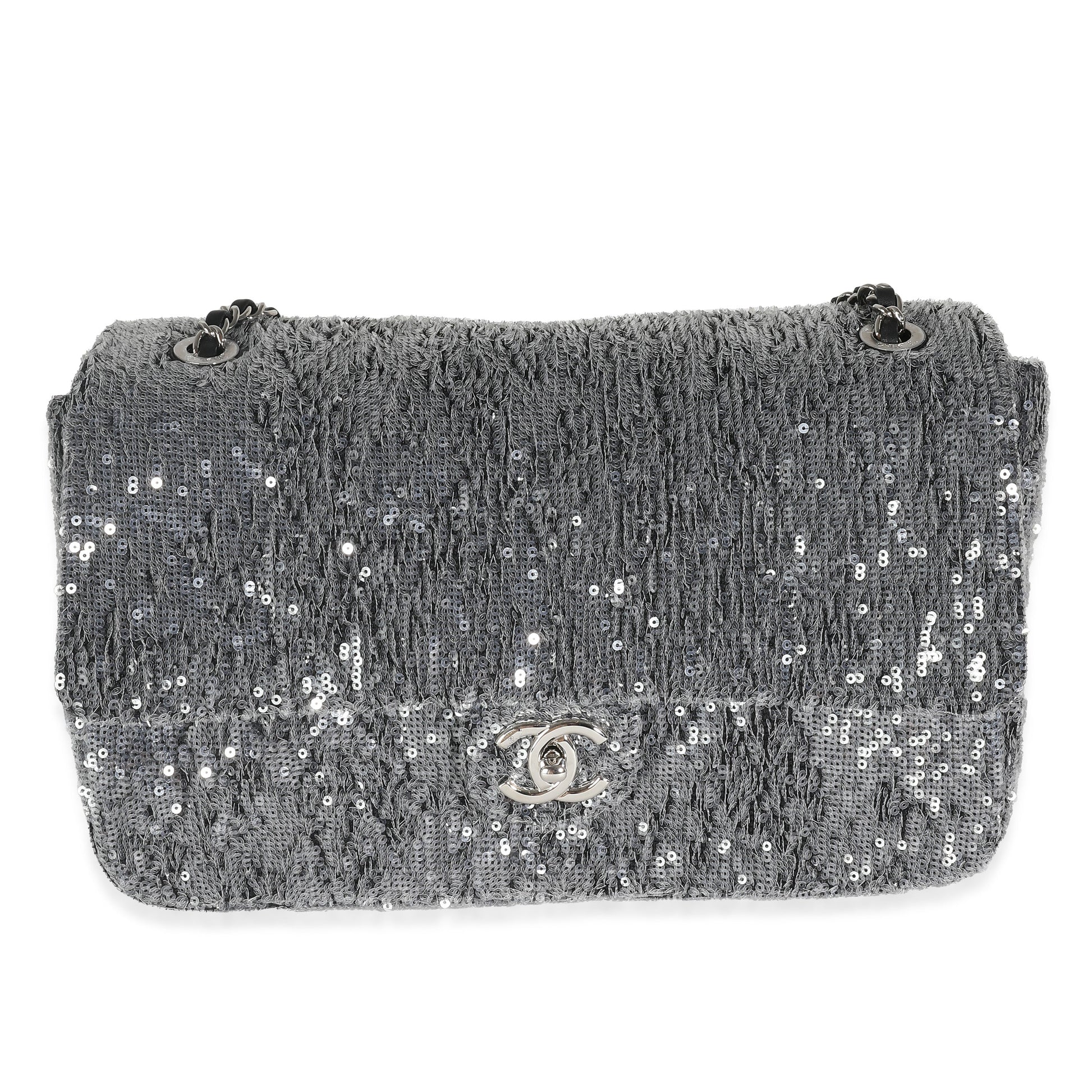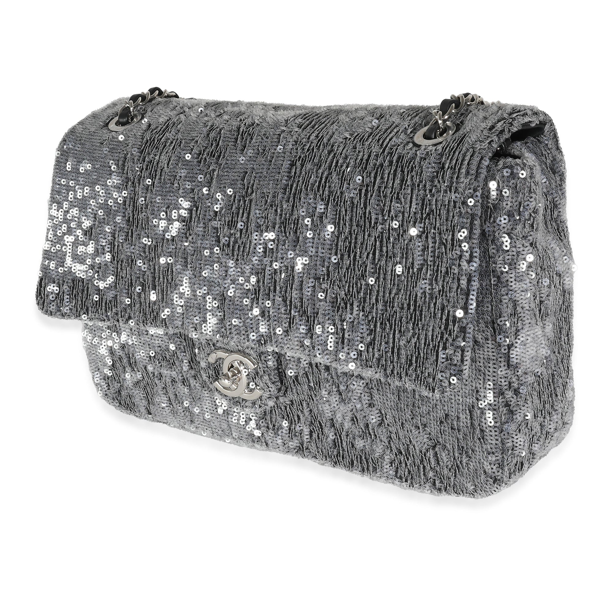 Listing Title: Chanel Silver Sequin Jumbo Single Flap Bag