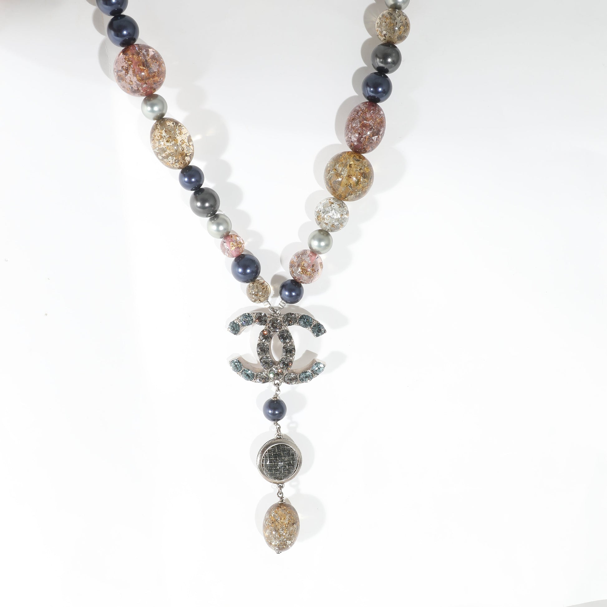 CHANEL Silver Tone 2006 CC Rhinestone, Faux Pearls & Beads Necklace