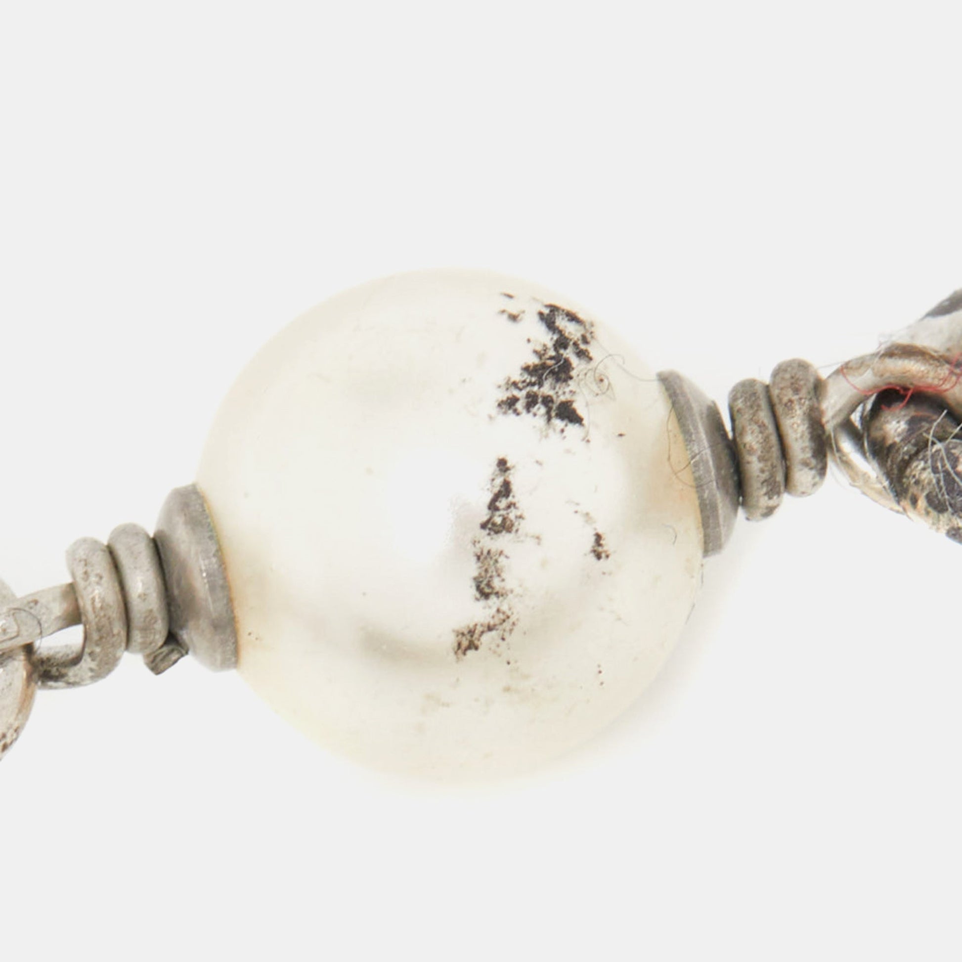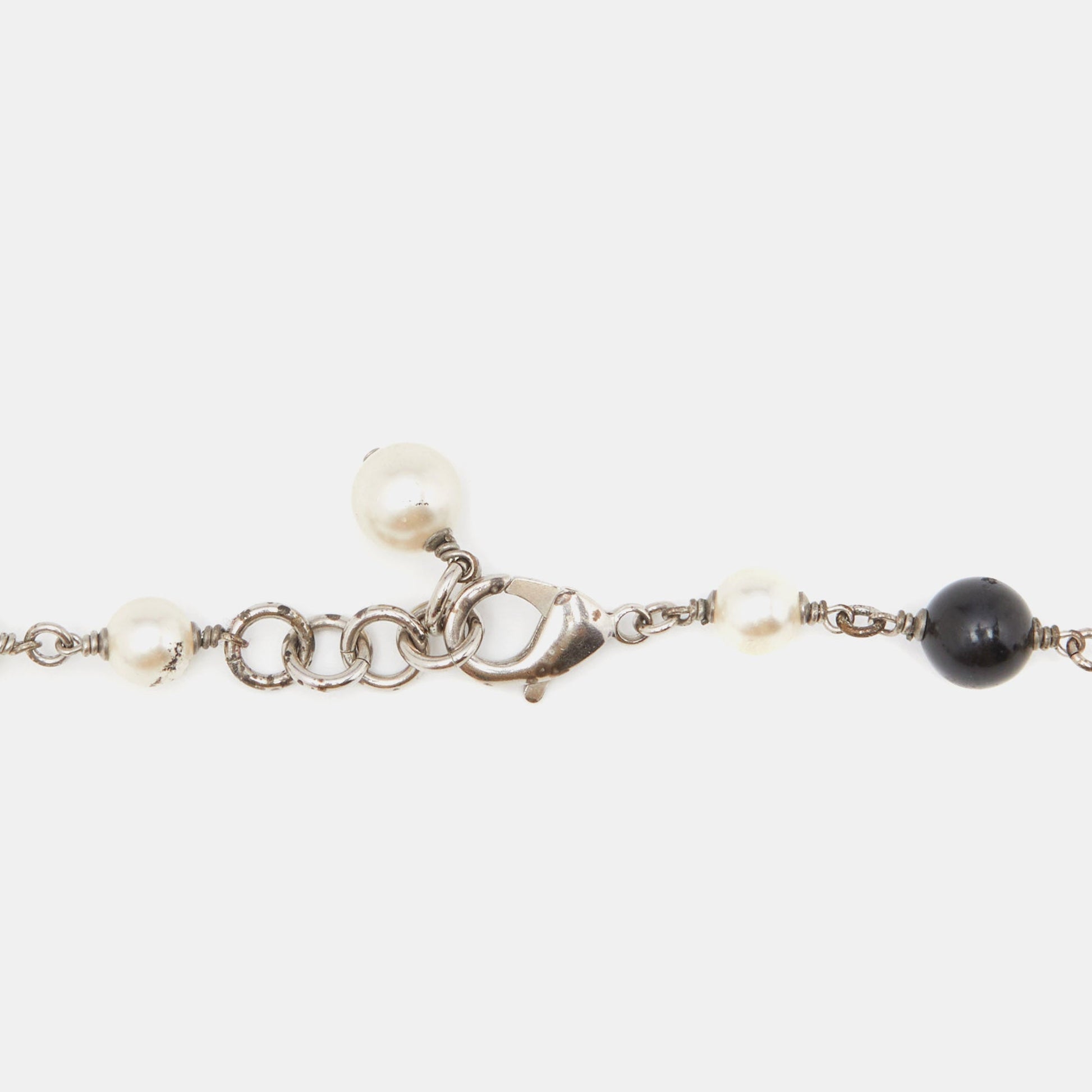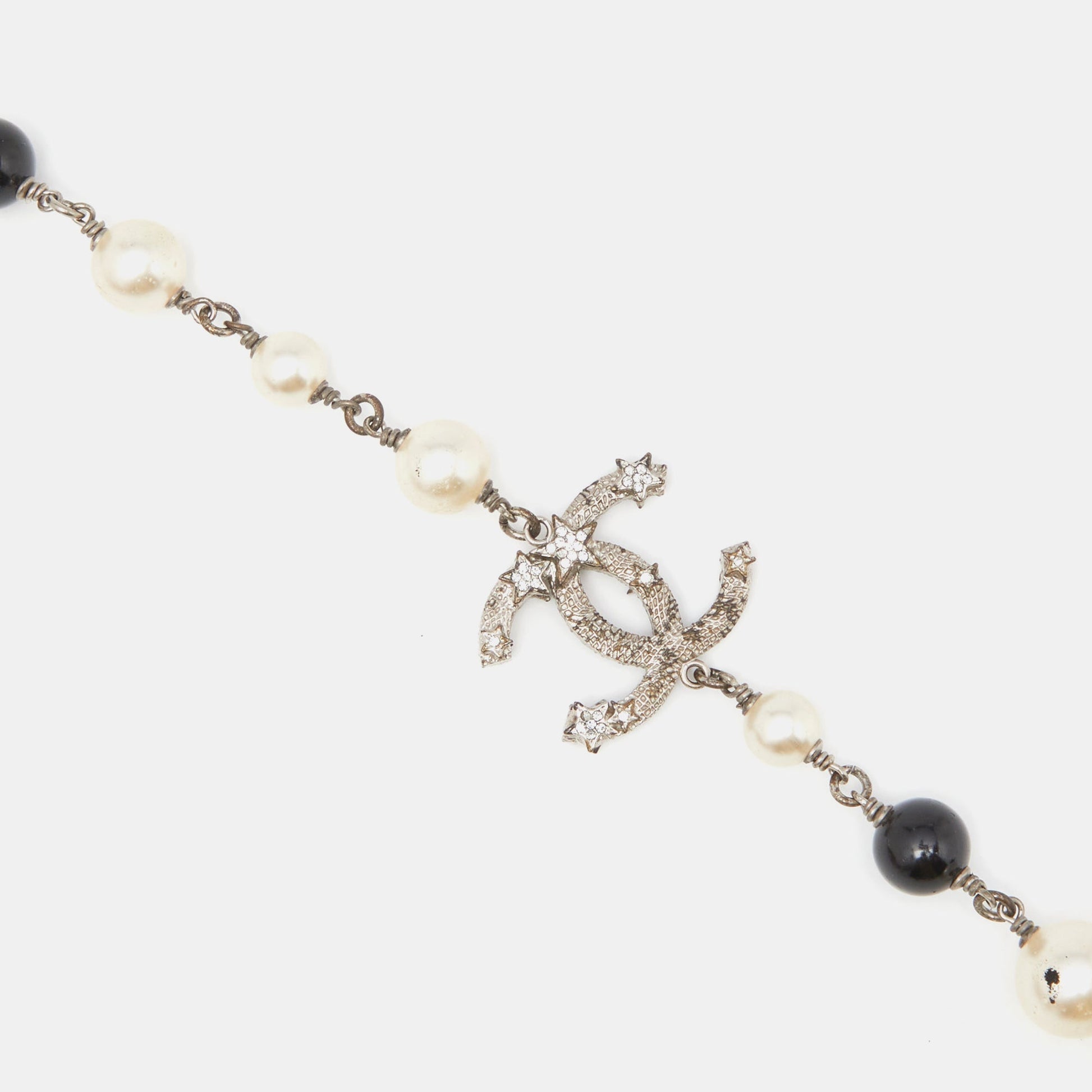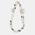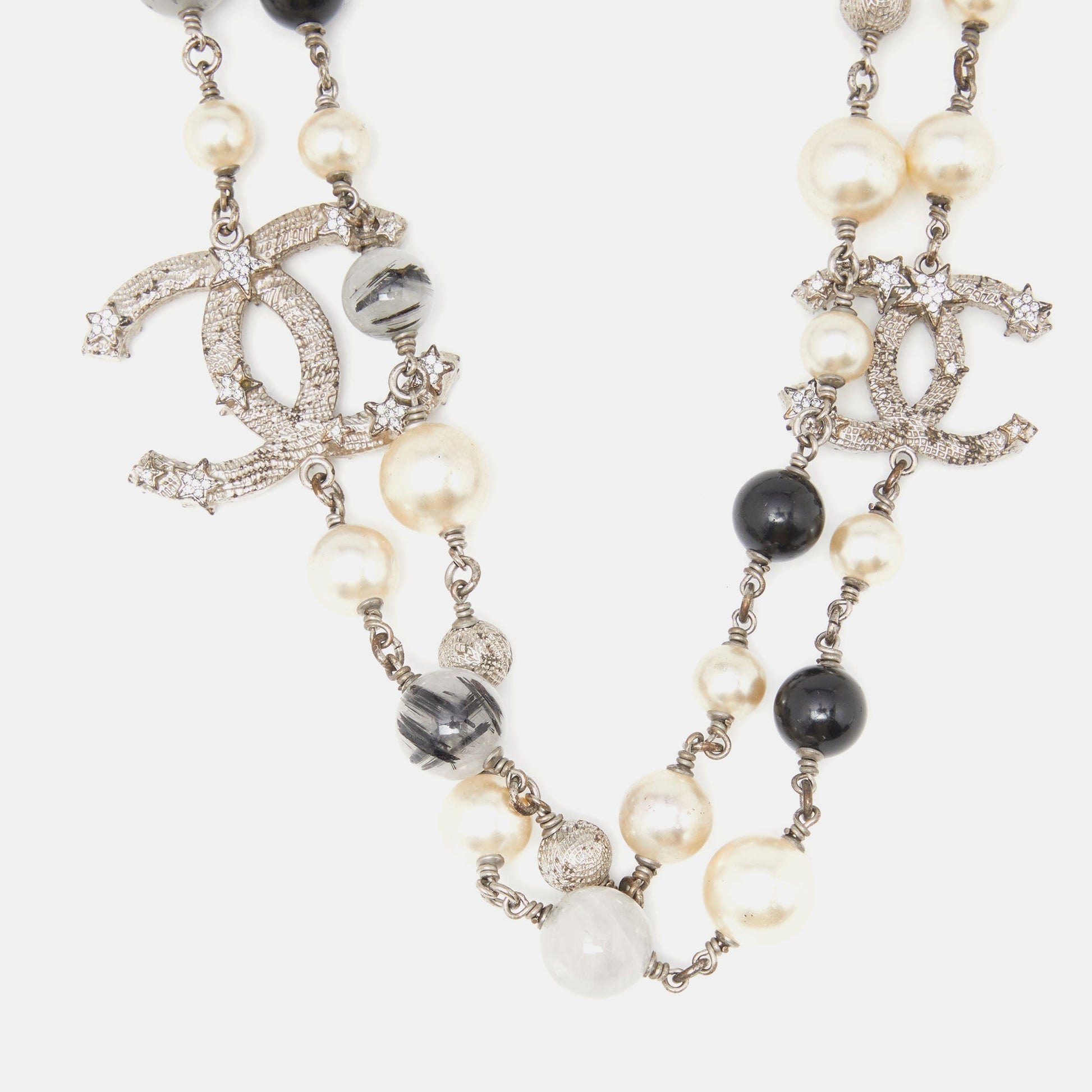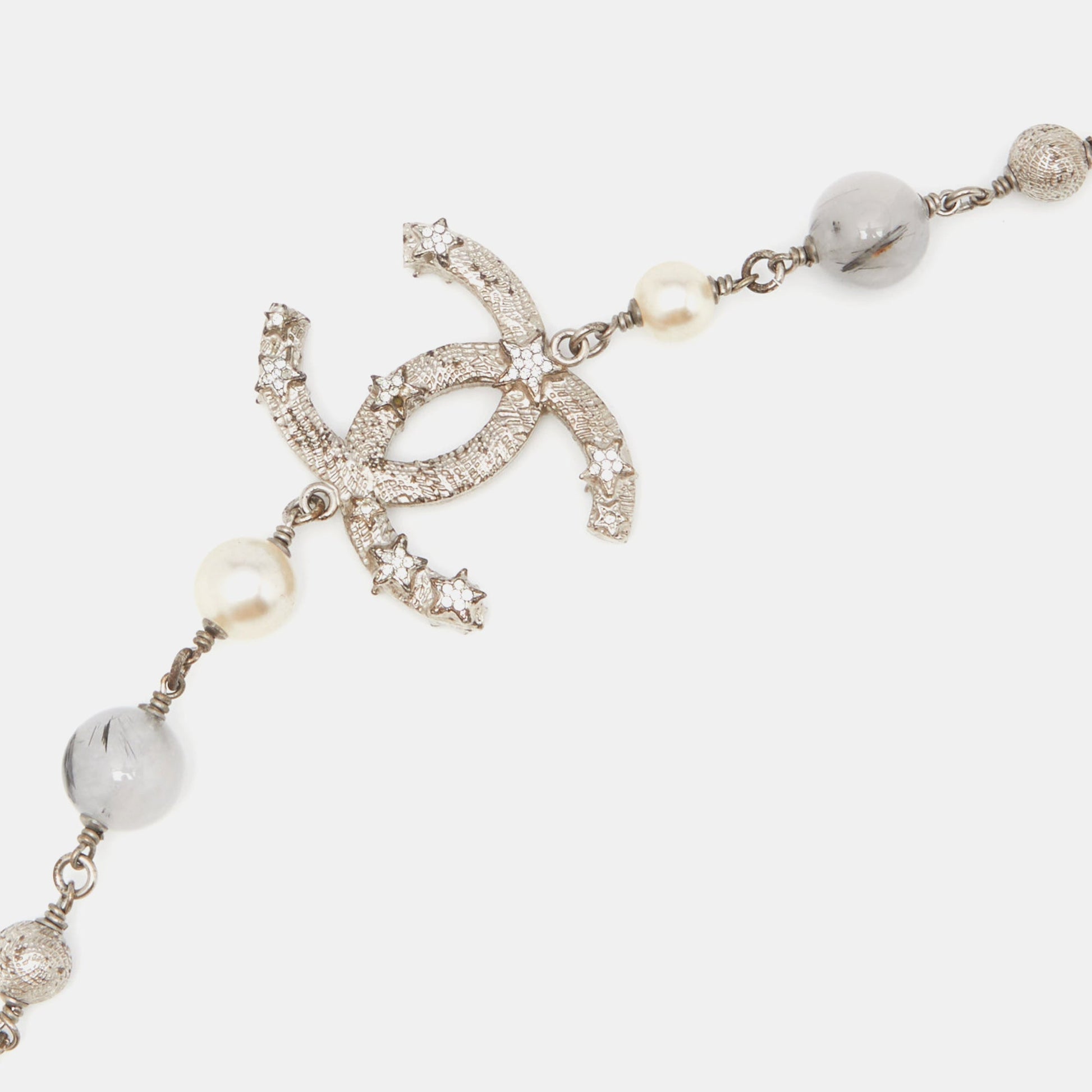 CHANEL Silver Tone Faux Pearl & Beaded Star CC Long Necklace