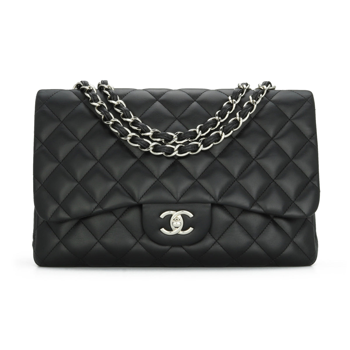 CHANEL Classic Single Flap Jumbo Bag Black Lambskin with Silver-Tone Hardware 2010.