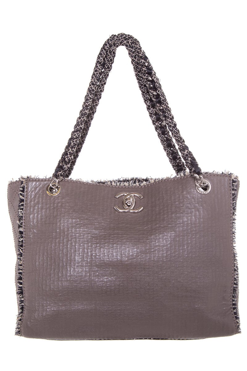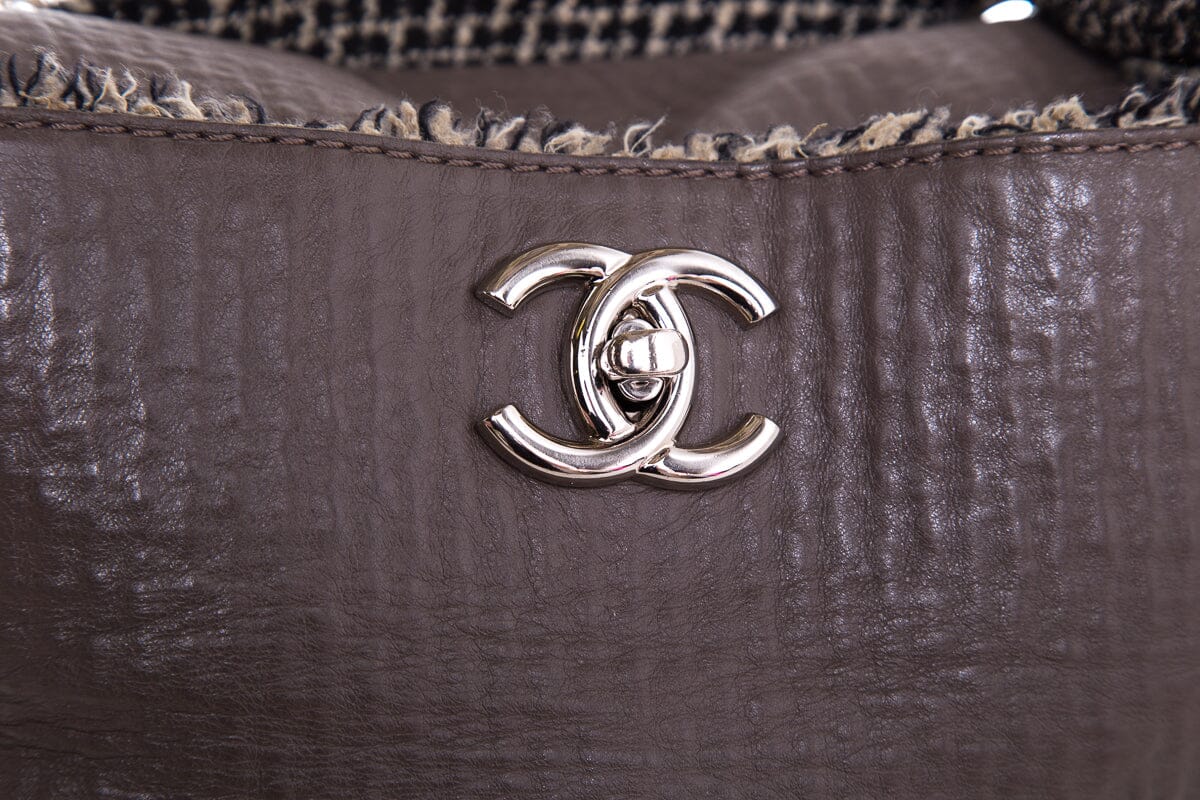 Chanel Slate Gray '09 Tweedy XL Lambskin & Tweed Tote Handbag