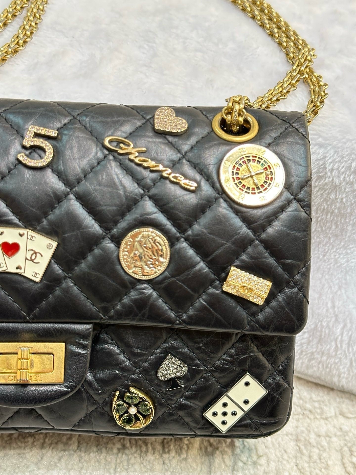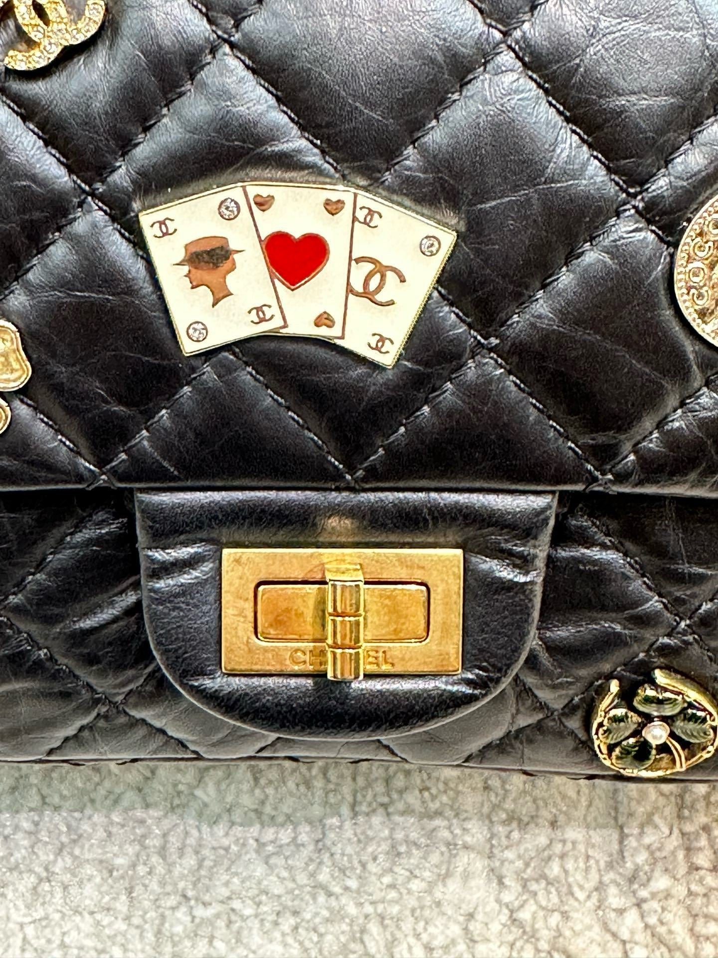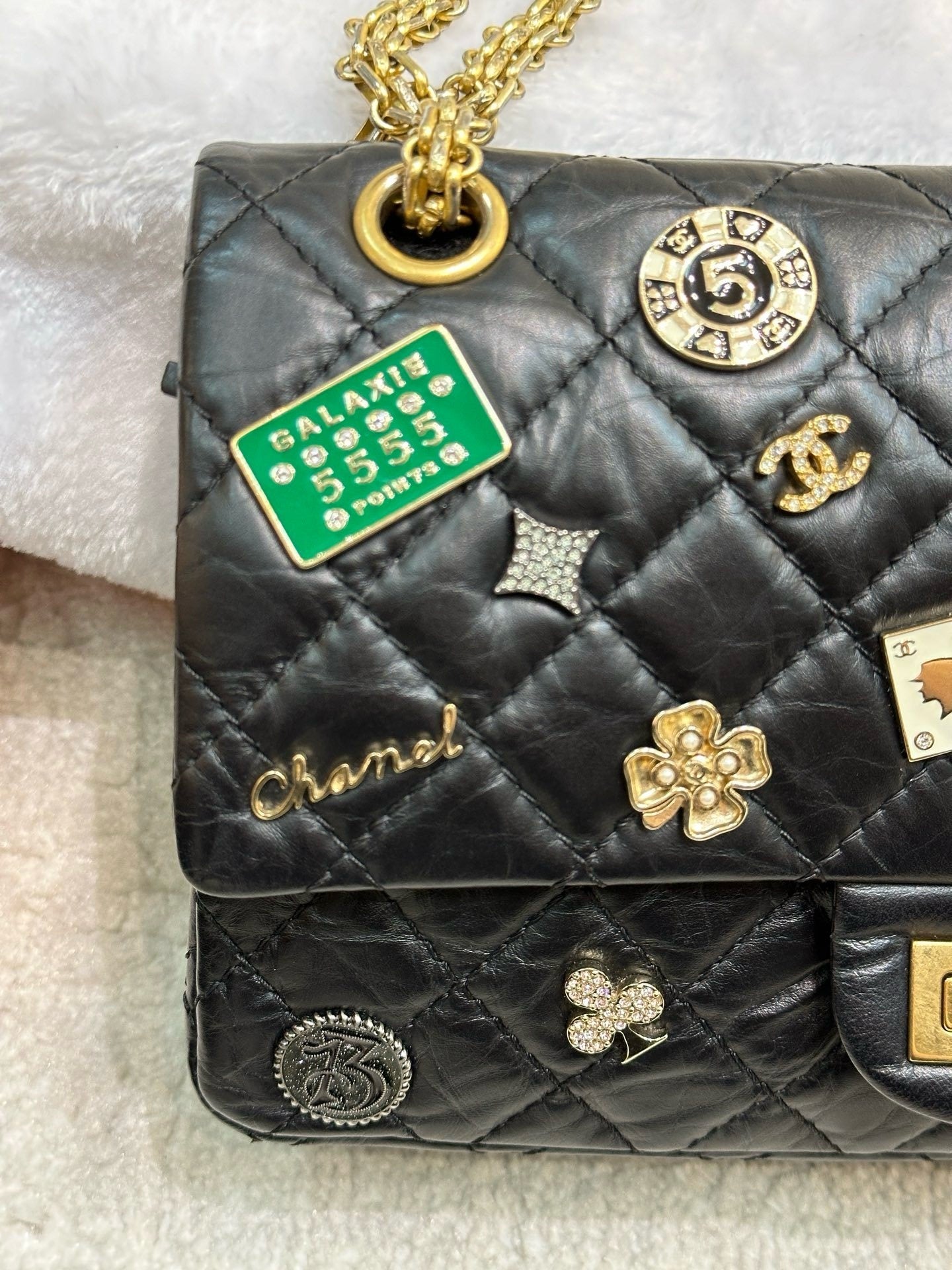 Chanel Small 2.55 Reissue Aged Calfskin Lucky Charms 225 Flap Black GHW