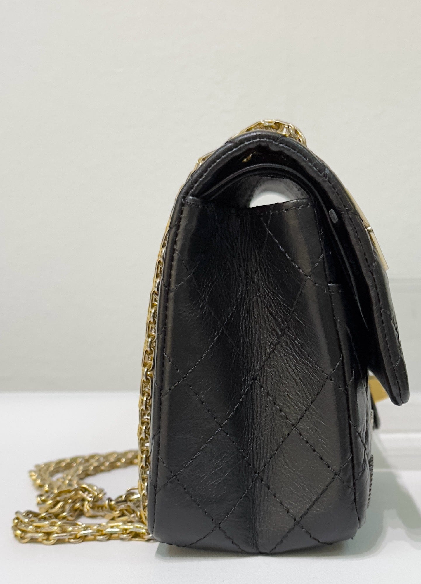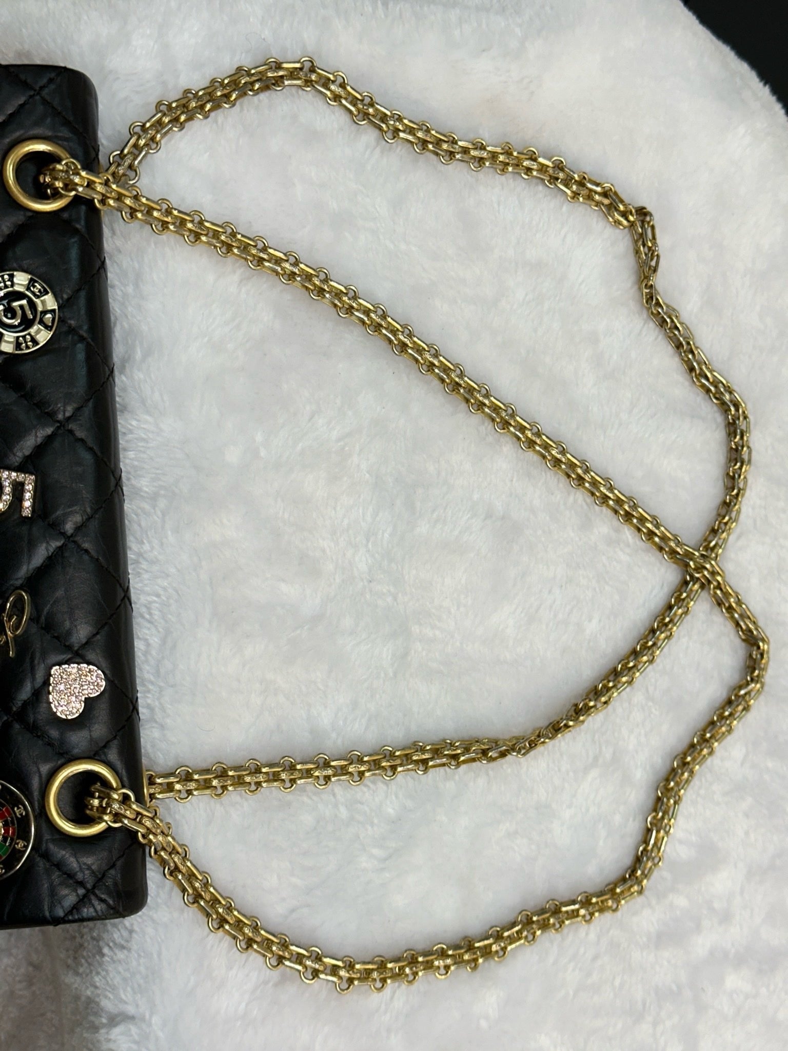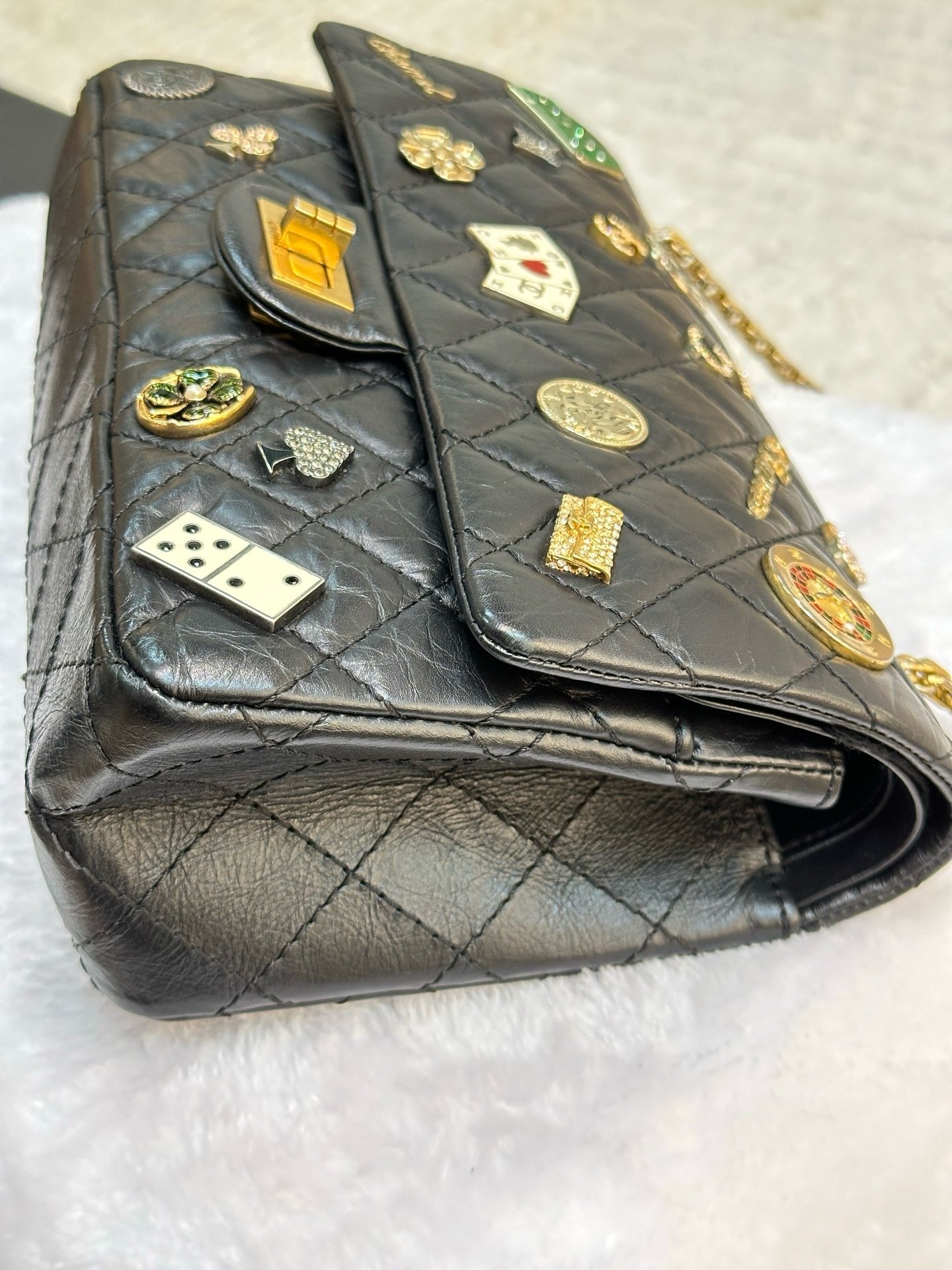 Chanel Small 2.55 Reissue Aged Calfskin Lucky Charms 225 Flap Black GHW