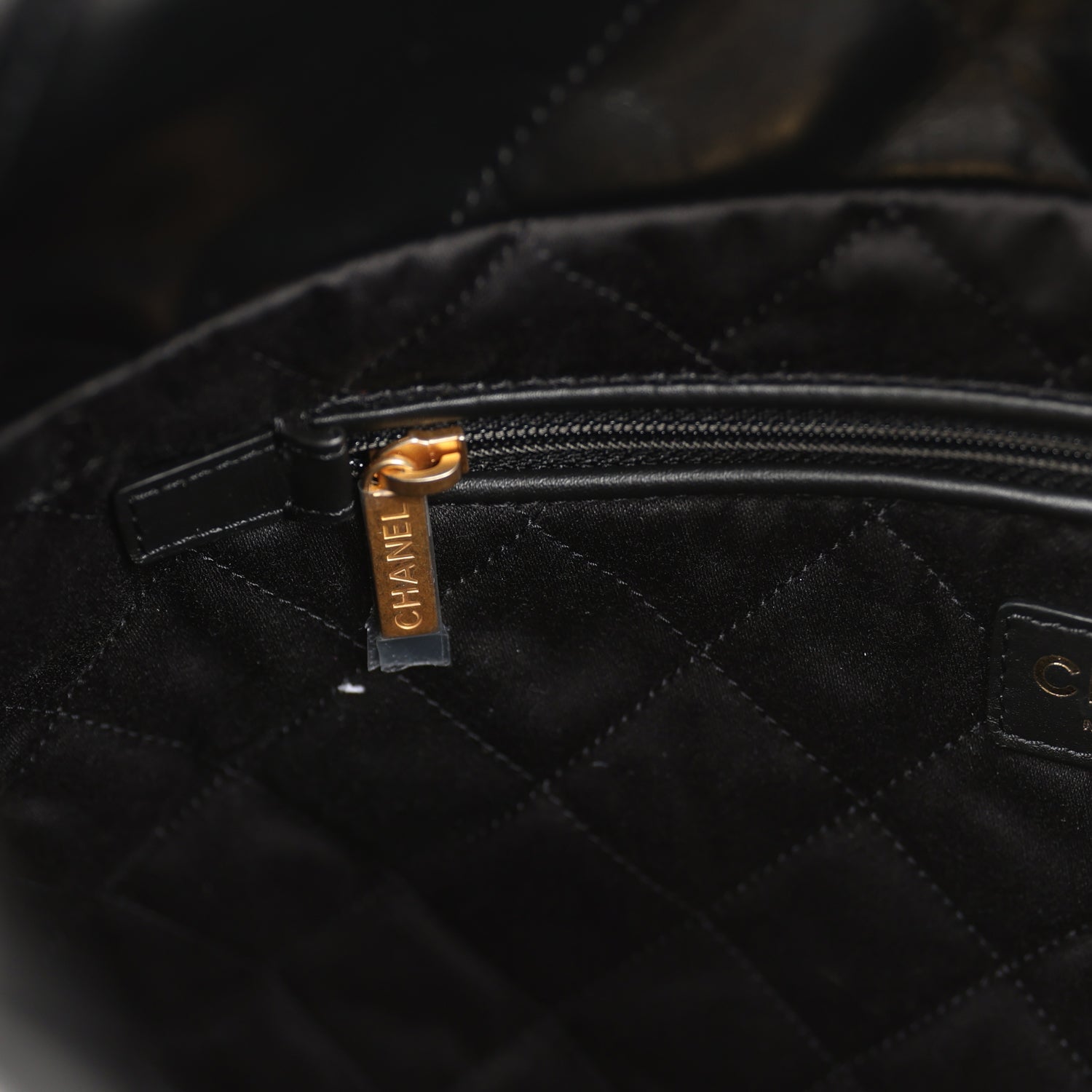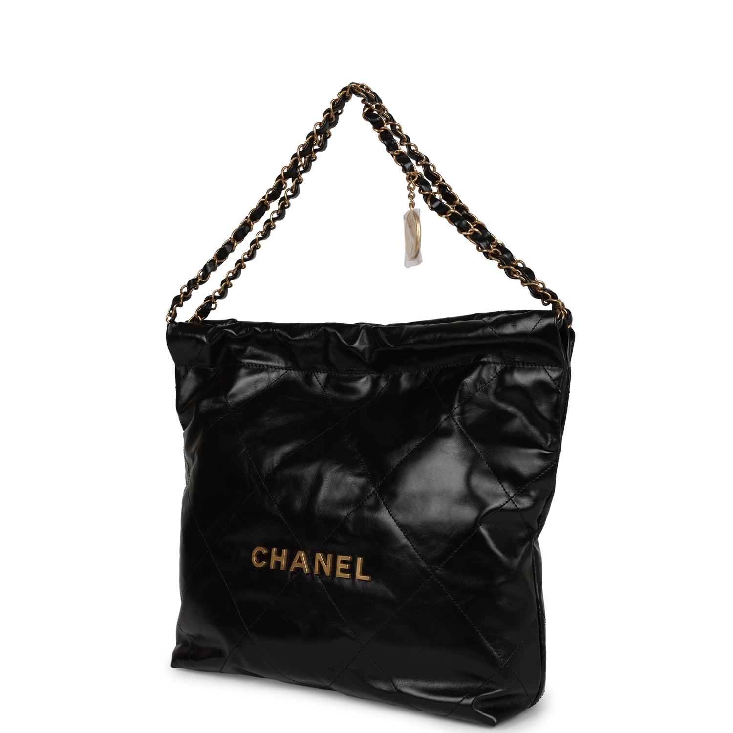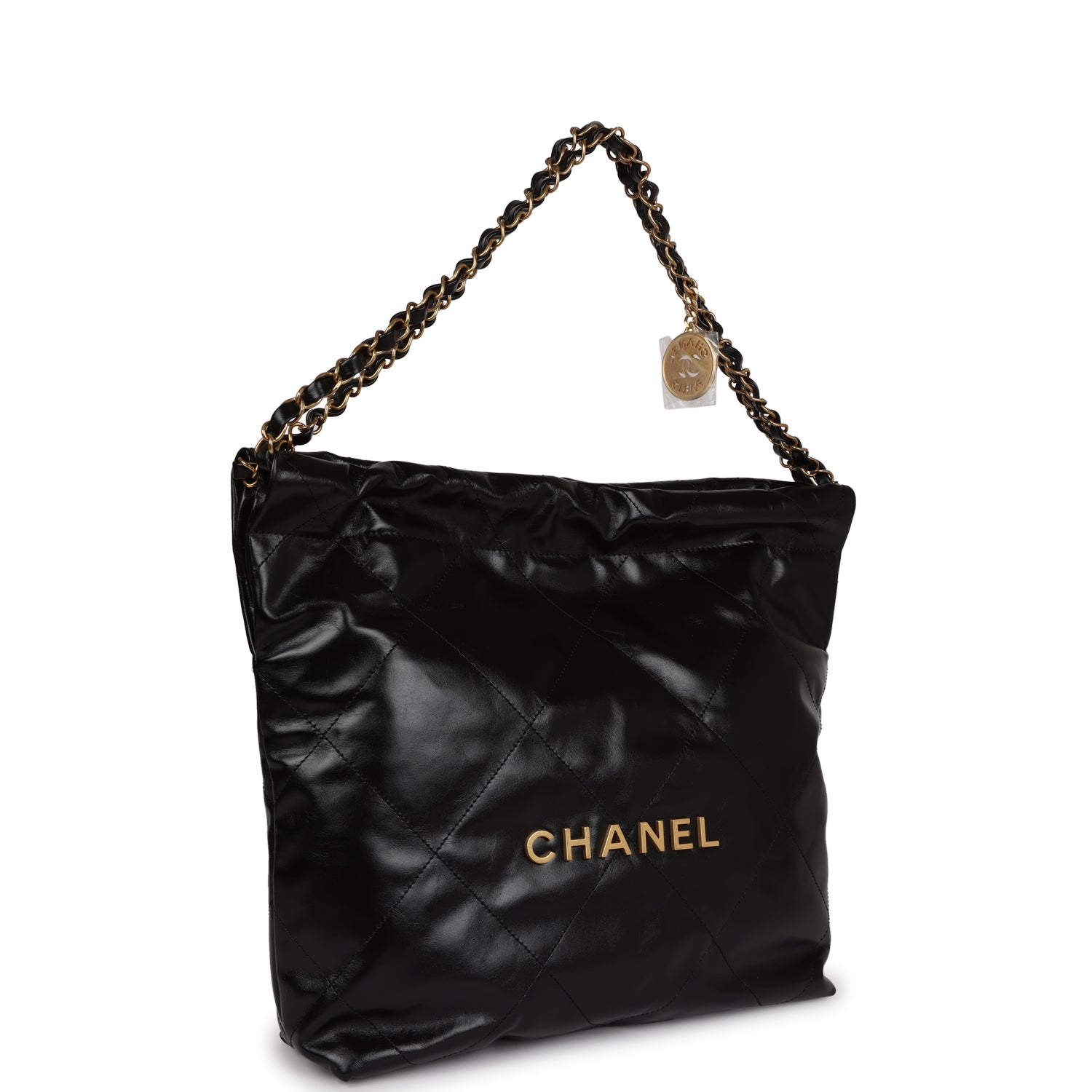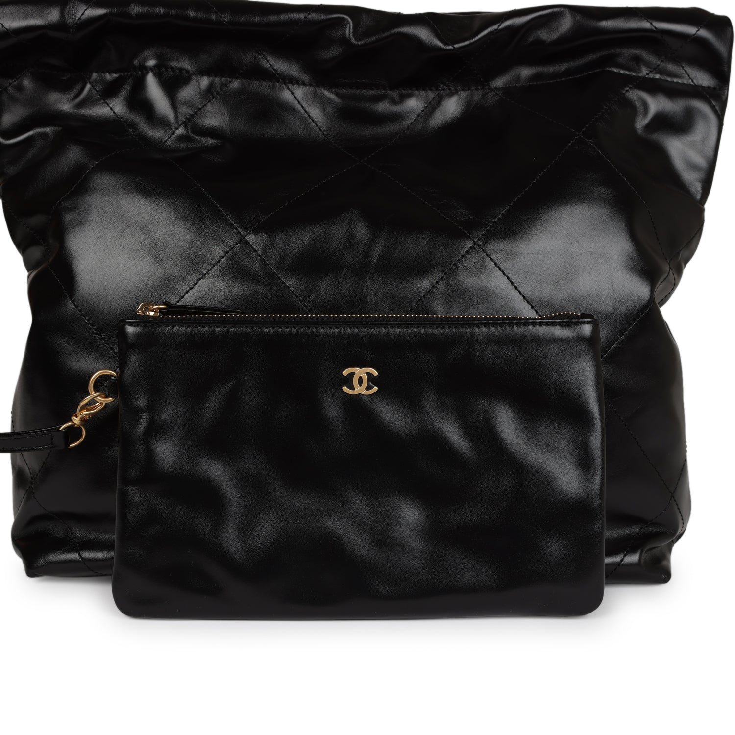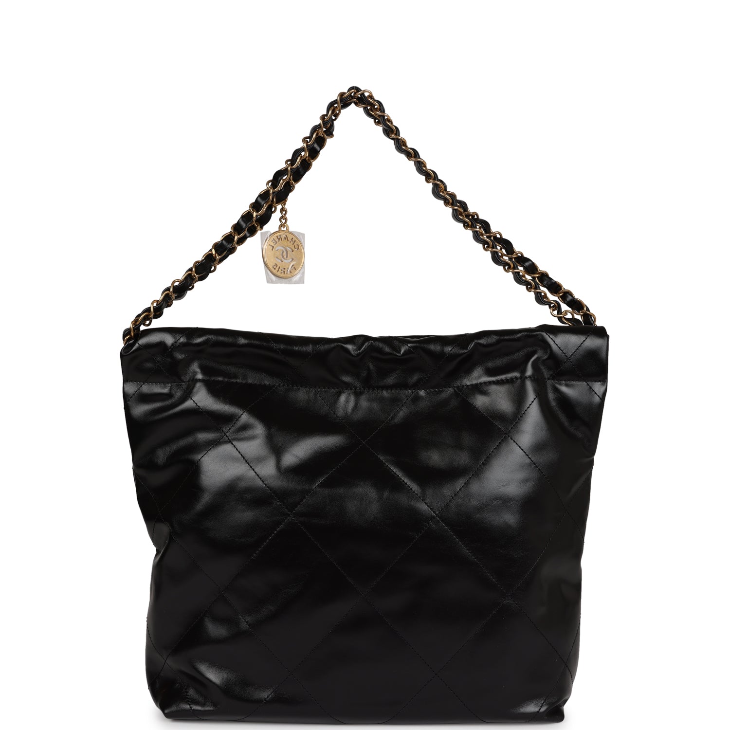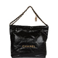 Chanel Small 22 Bag Black Shiny Crumpled Calfskin Gold Hardware