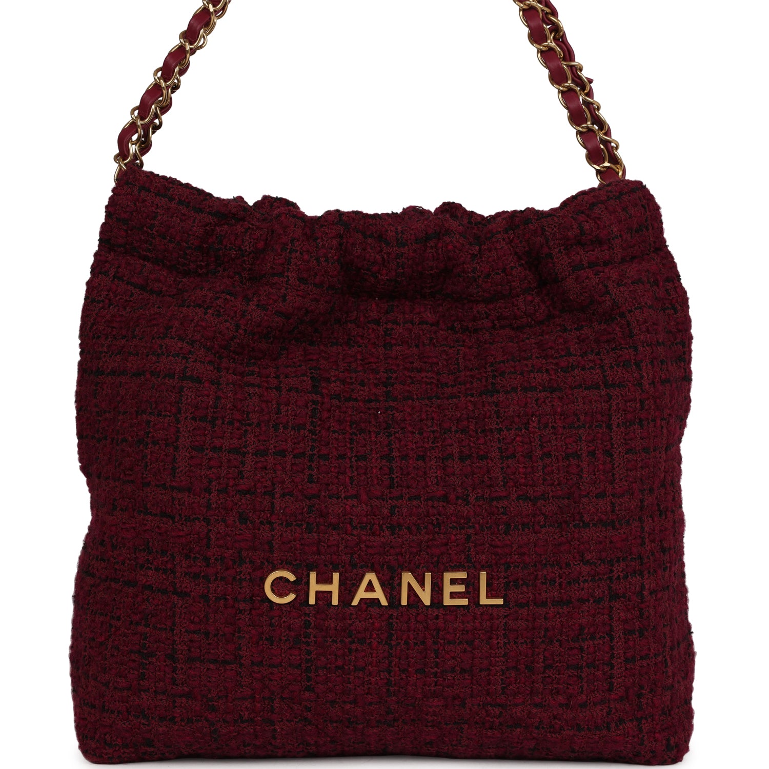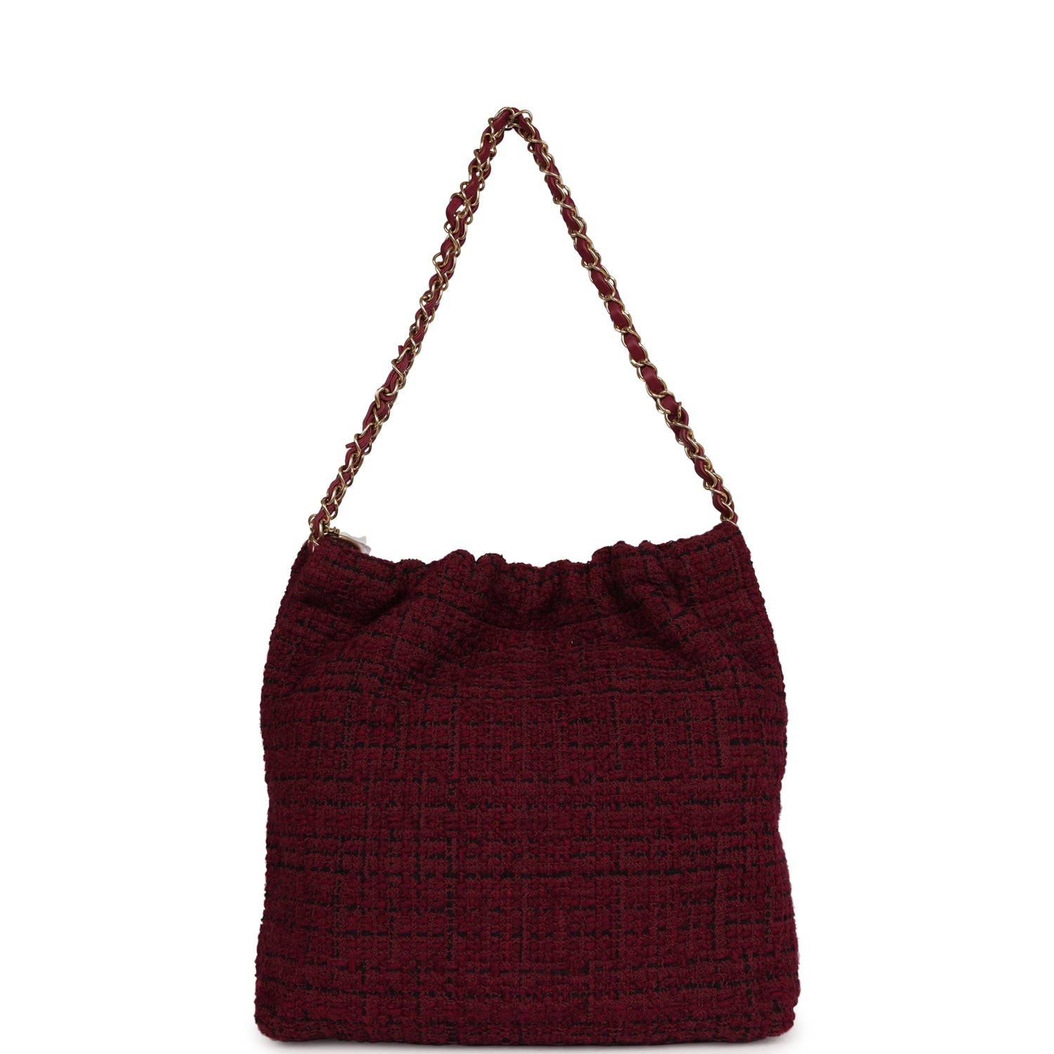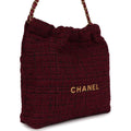 Chanel Small 22 Bag Burgundy and Black Tweed Gold Hardware