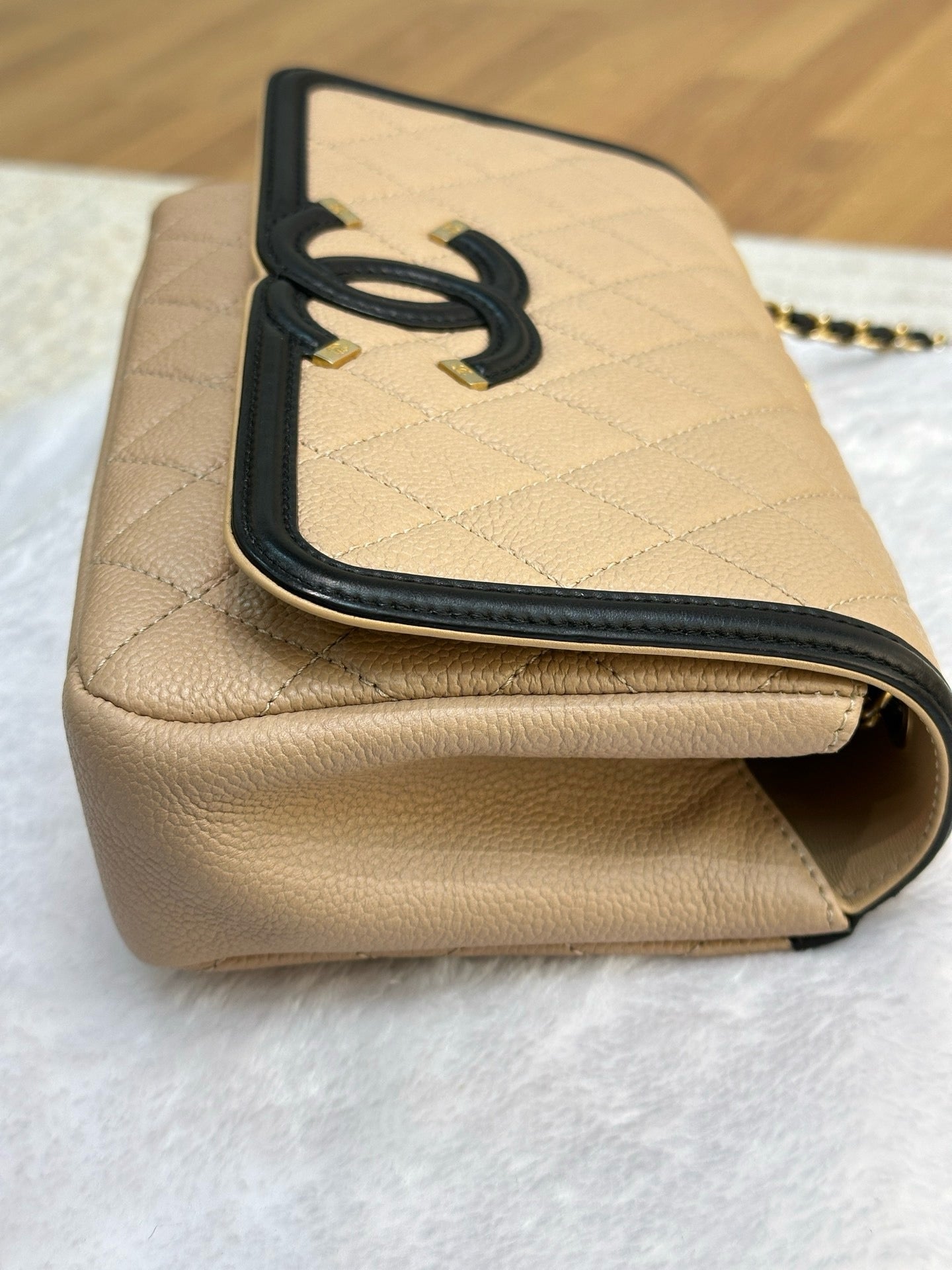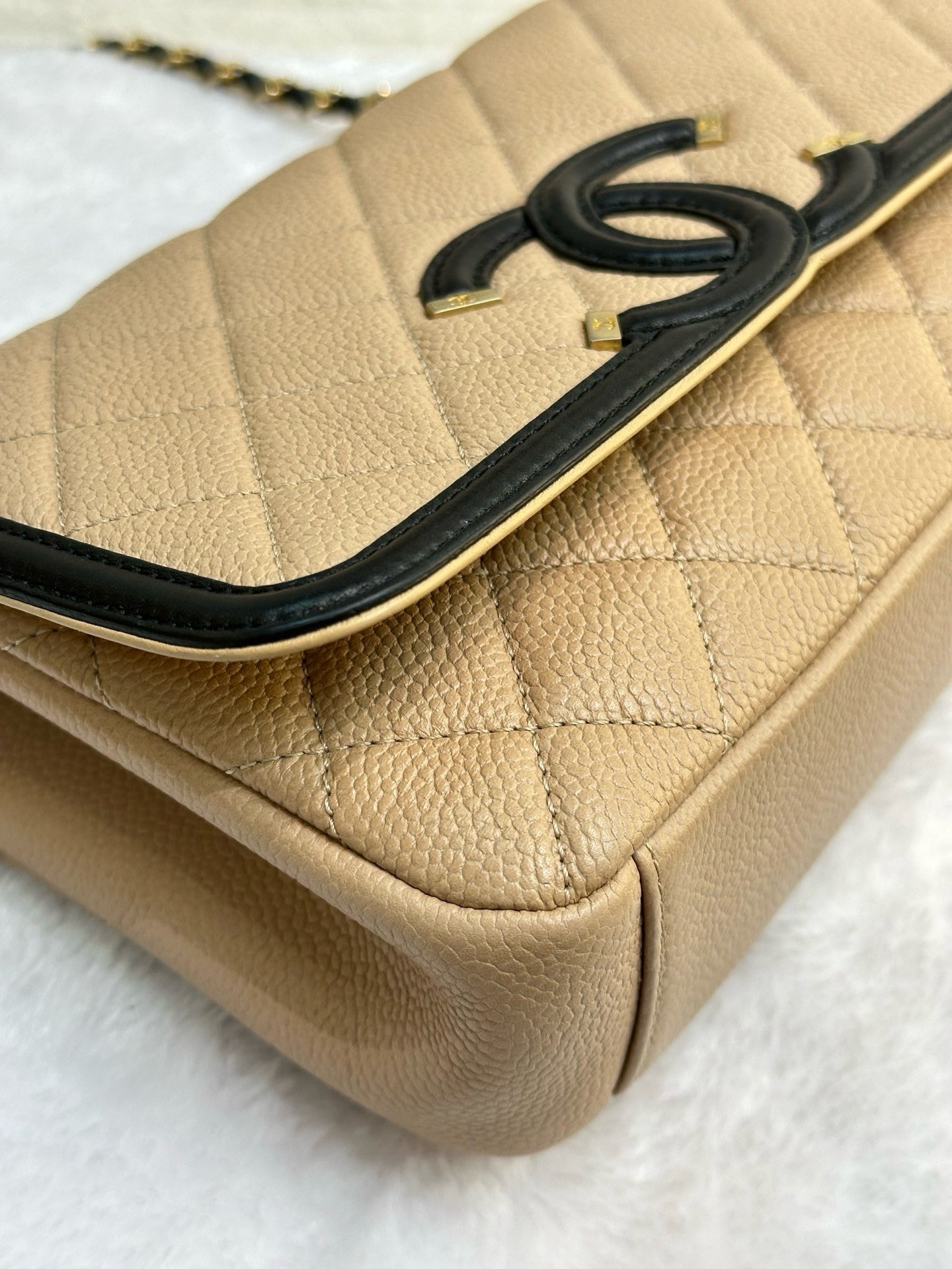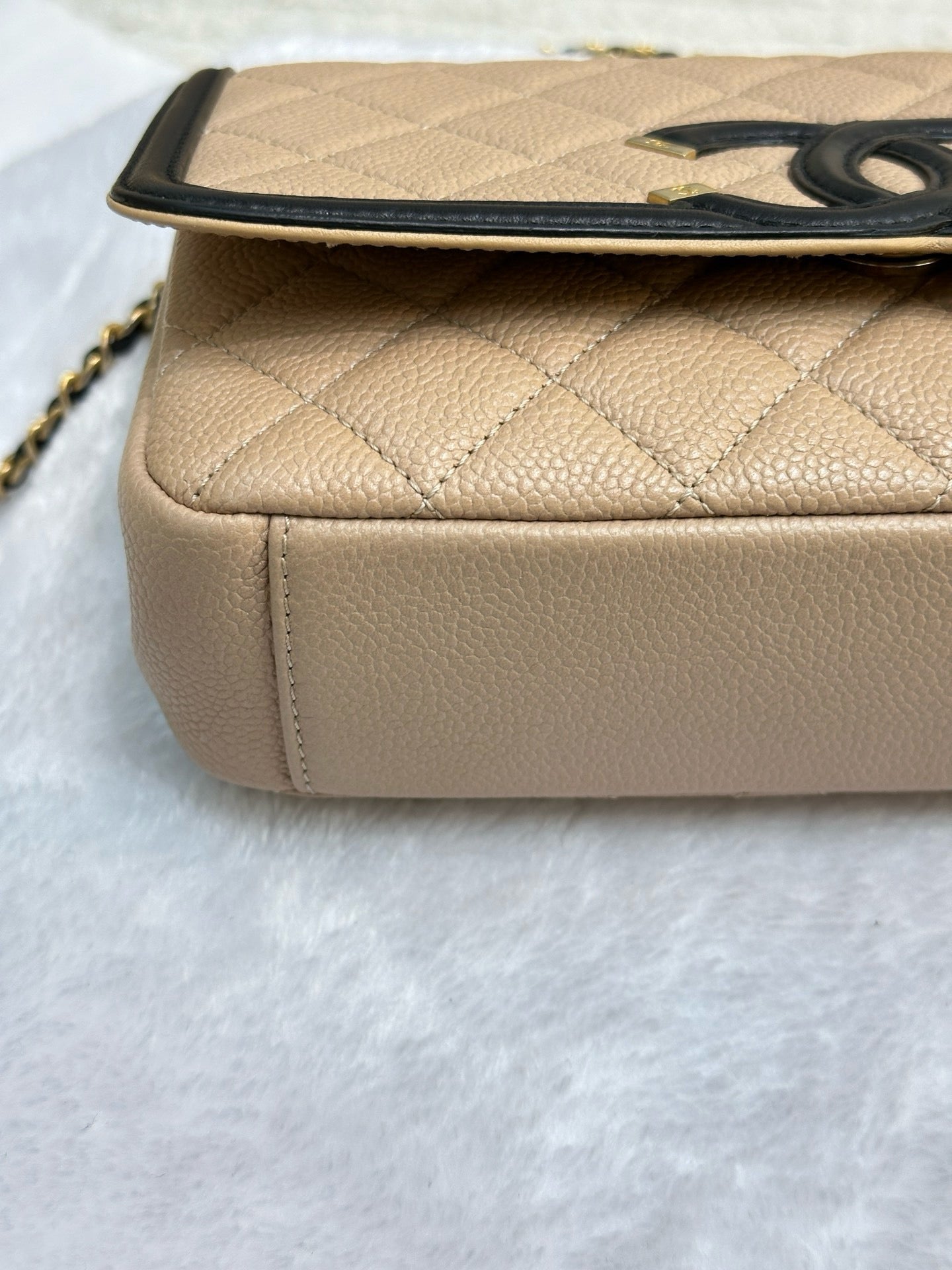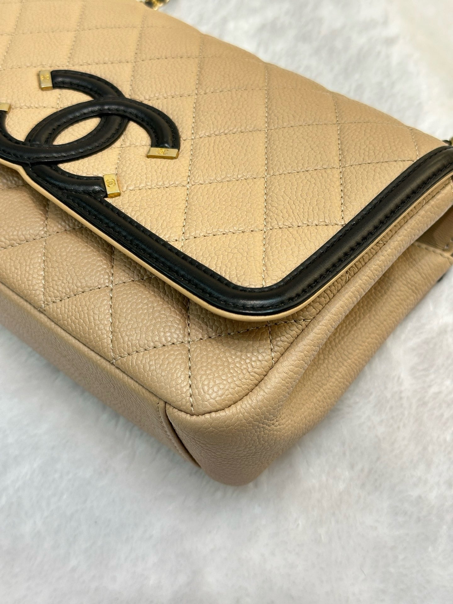Chanel Small Caviar Quilted CC Filigree Flap Beige Black GHW