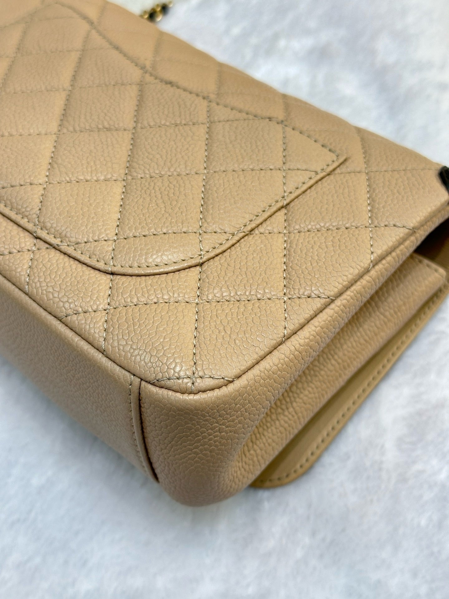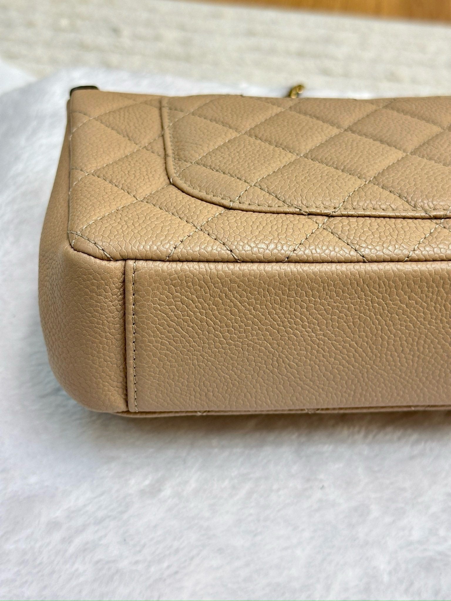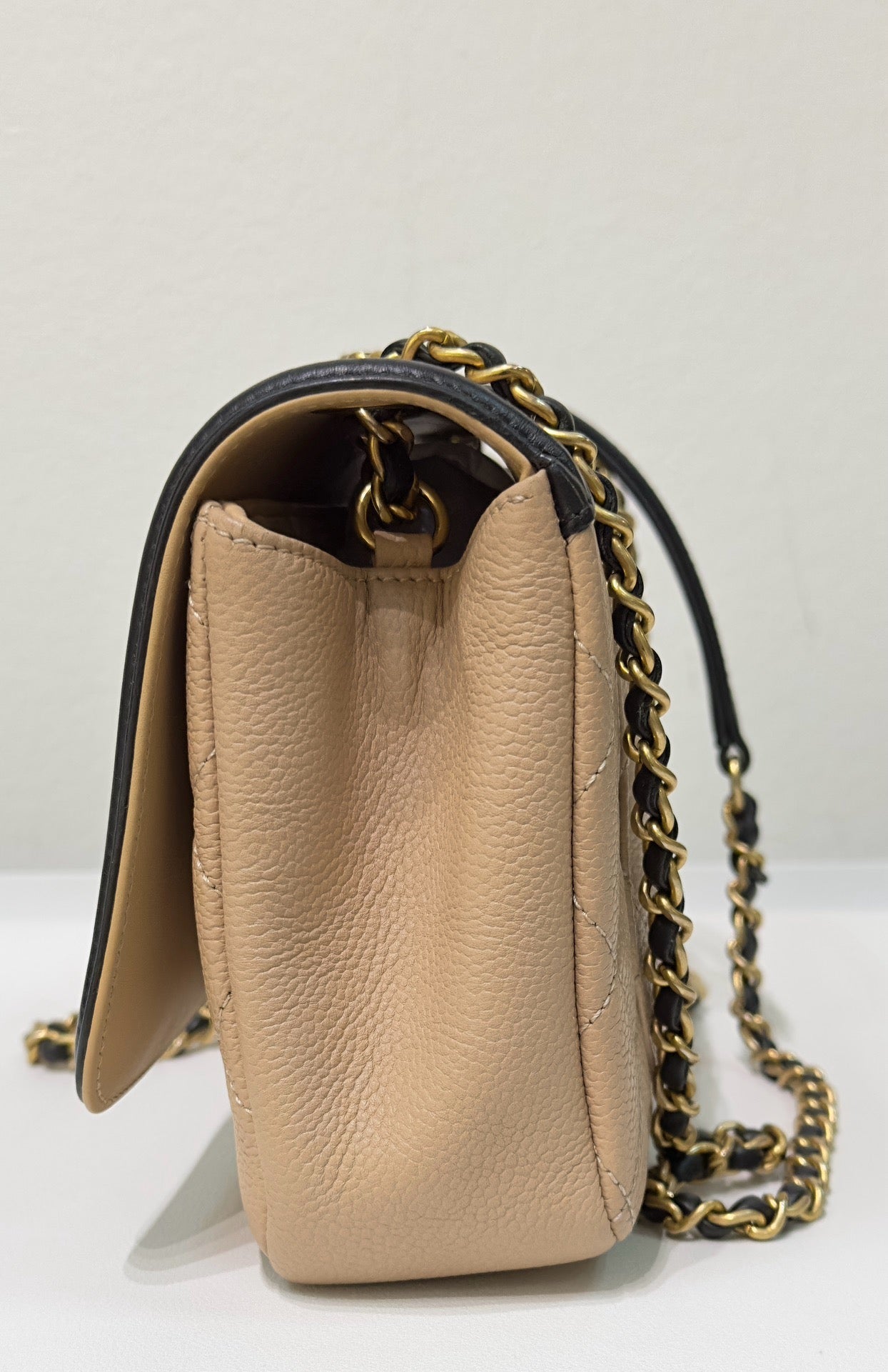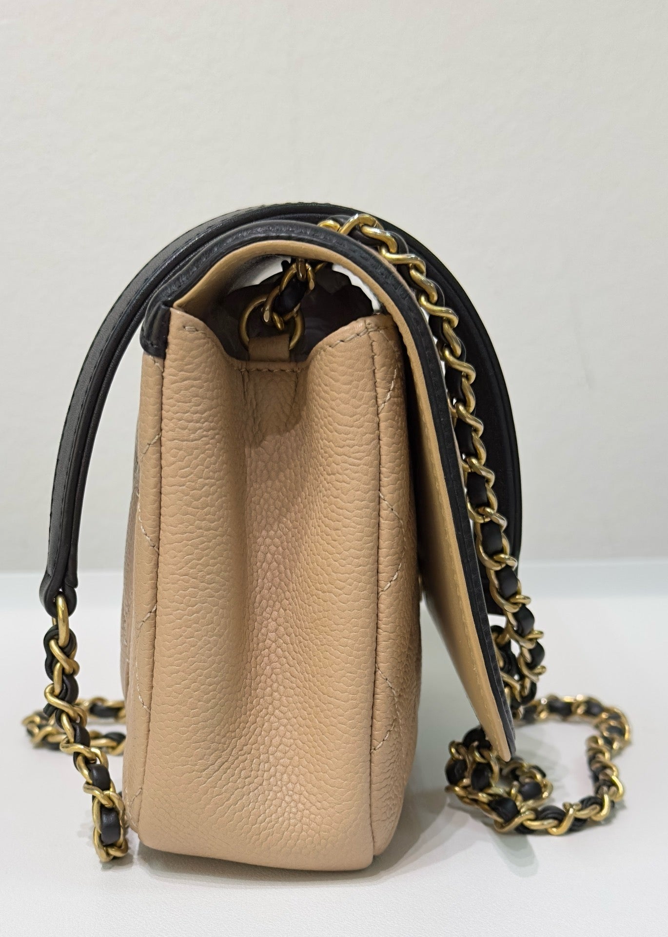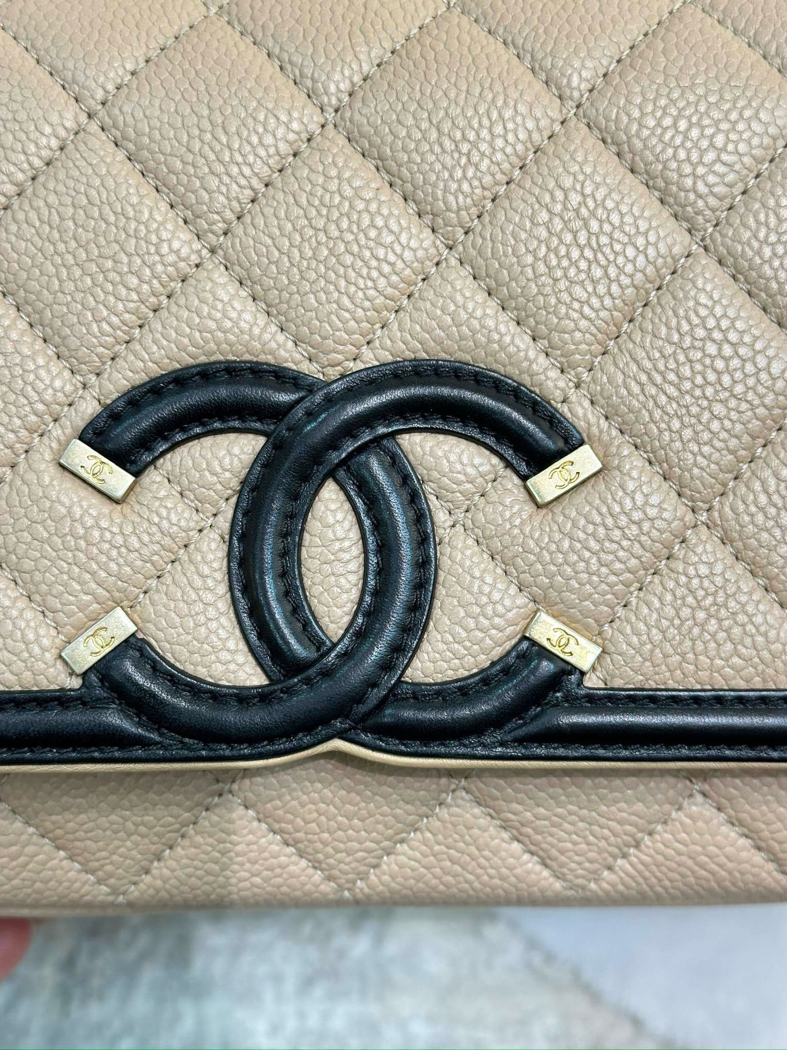 Chanel Small Caviar Quilted CC Filigree Flap Beige Black GHW