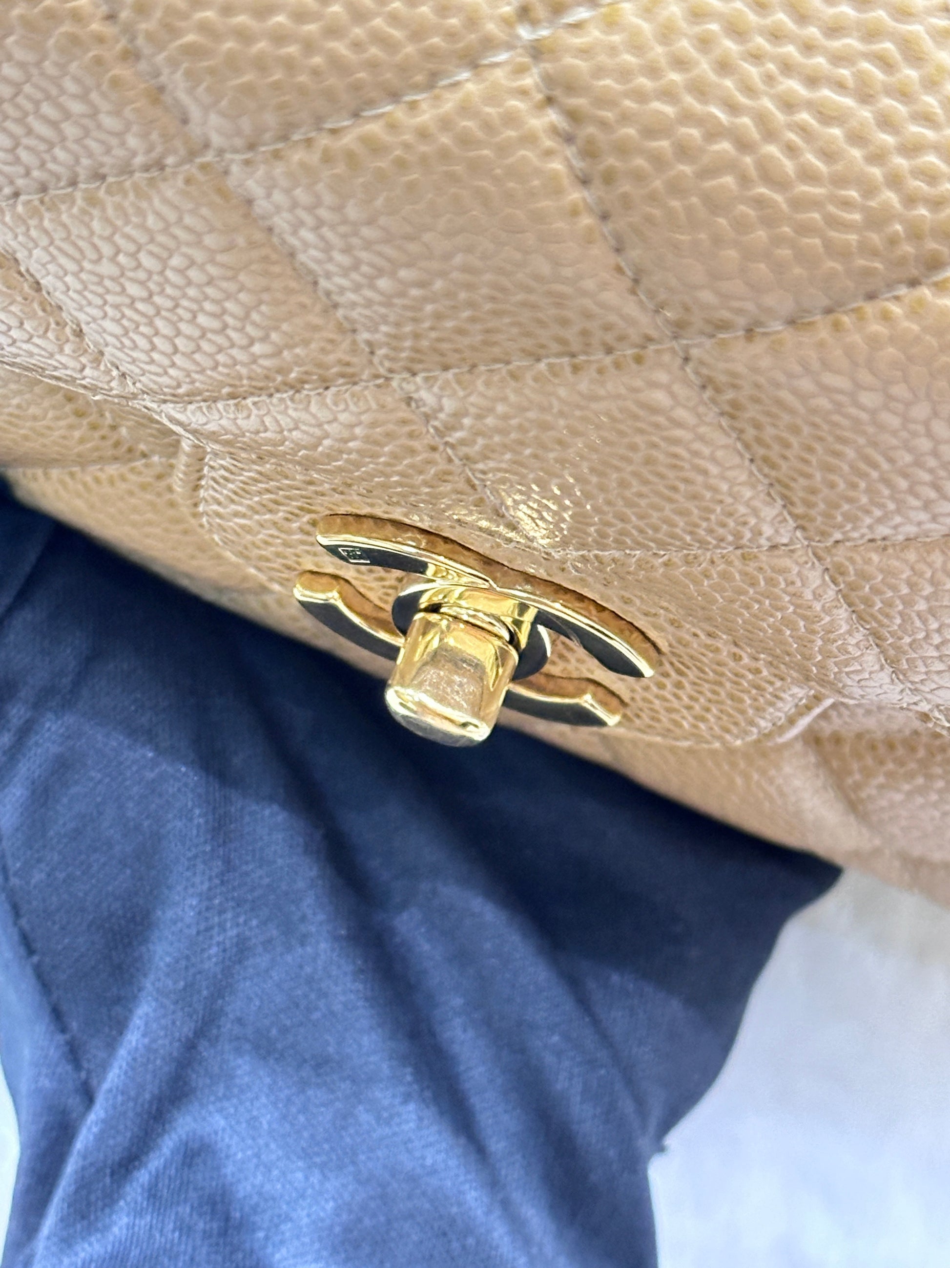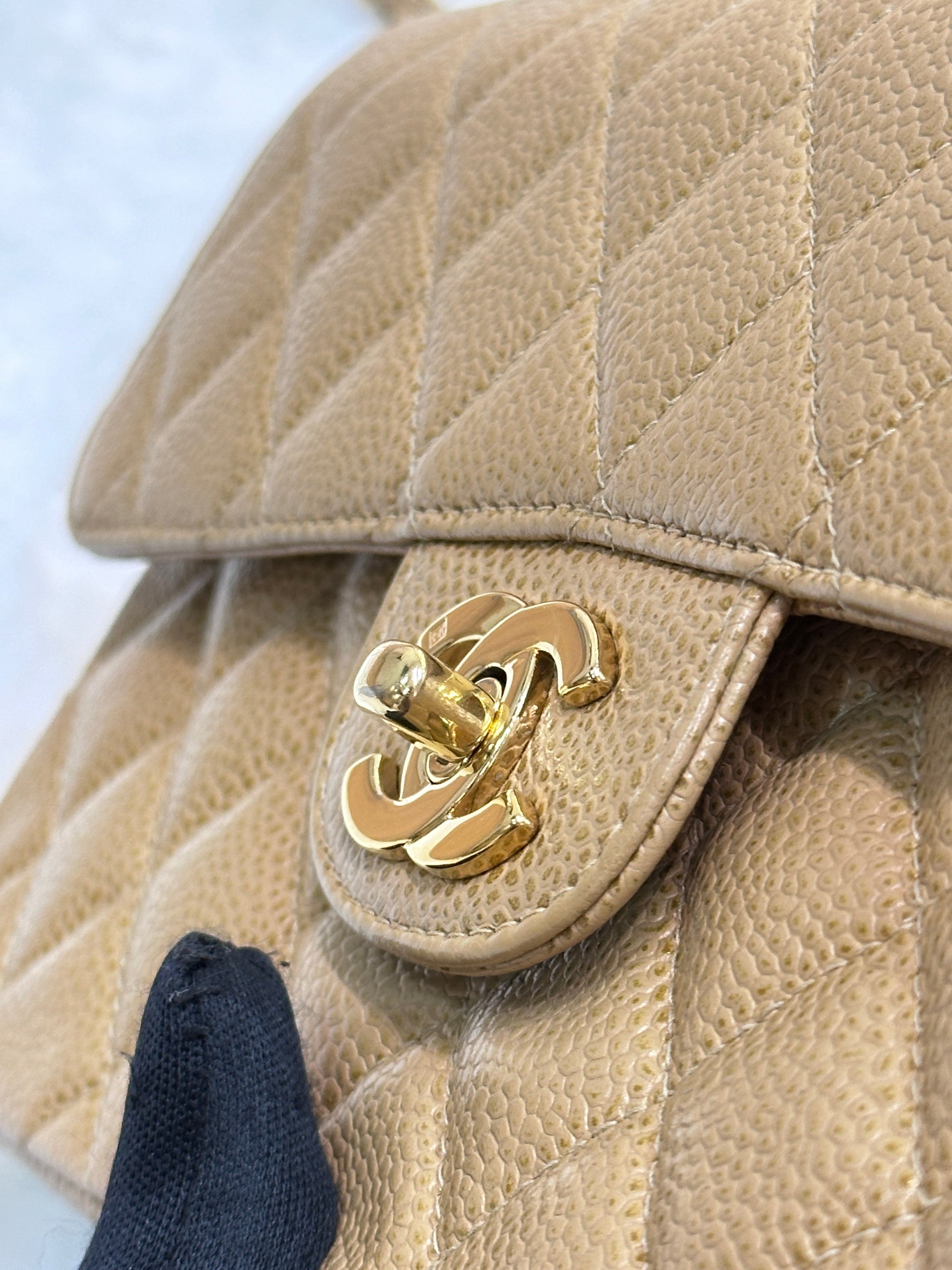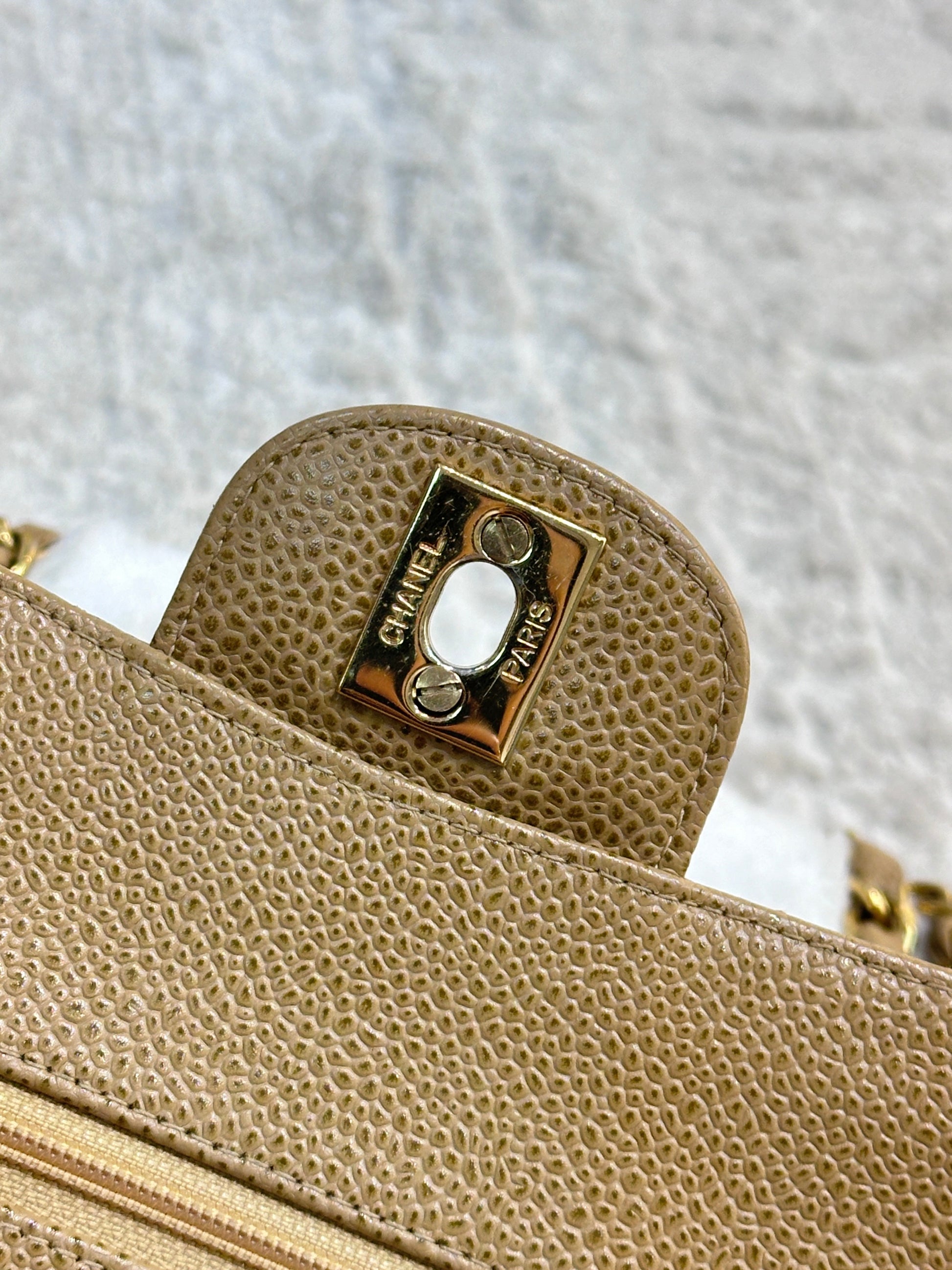 Chanel Small Caviar Quilted Double Flap Bag Beige