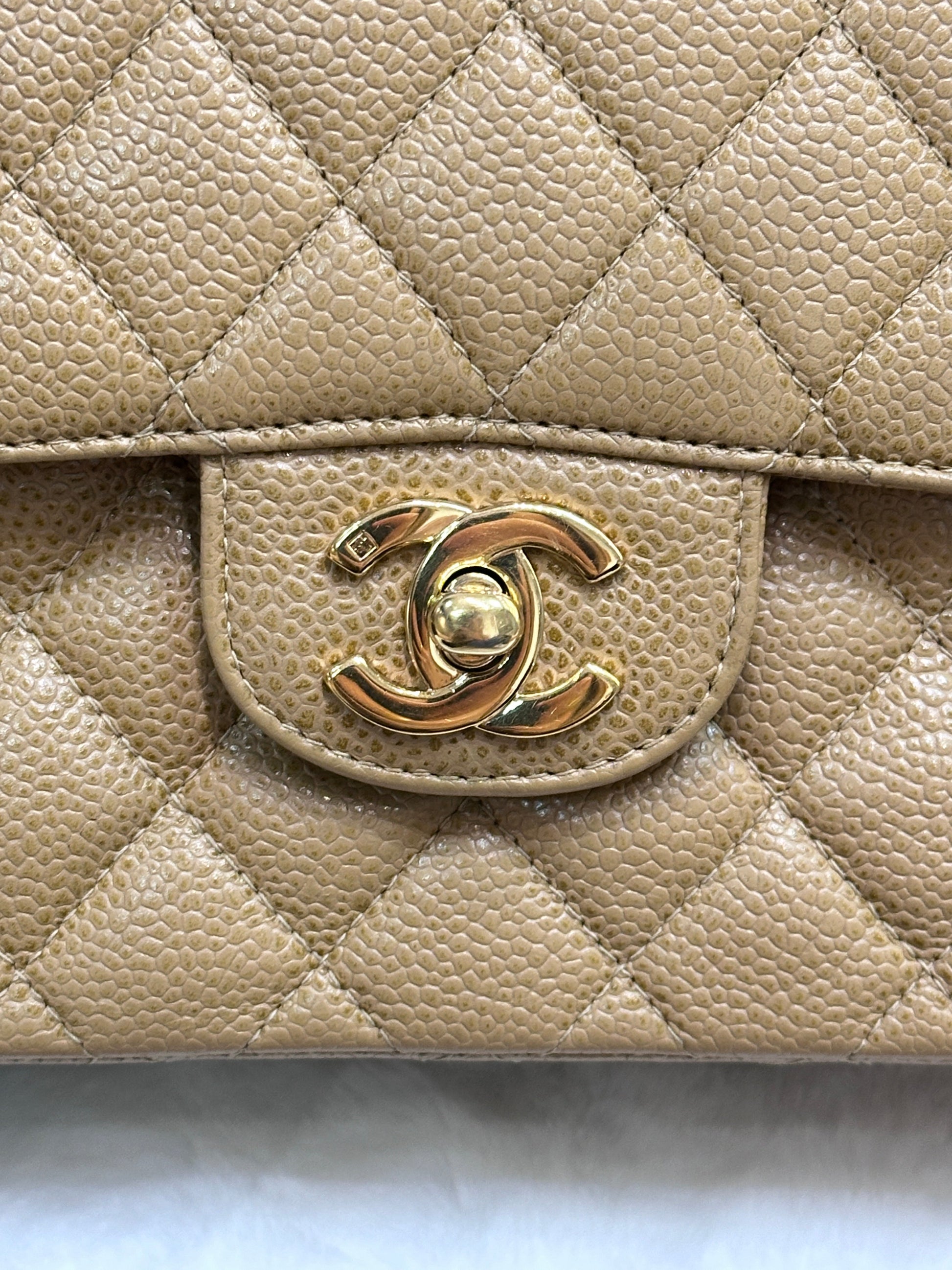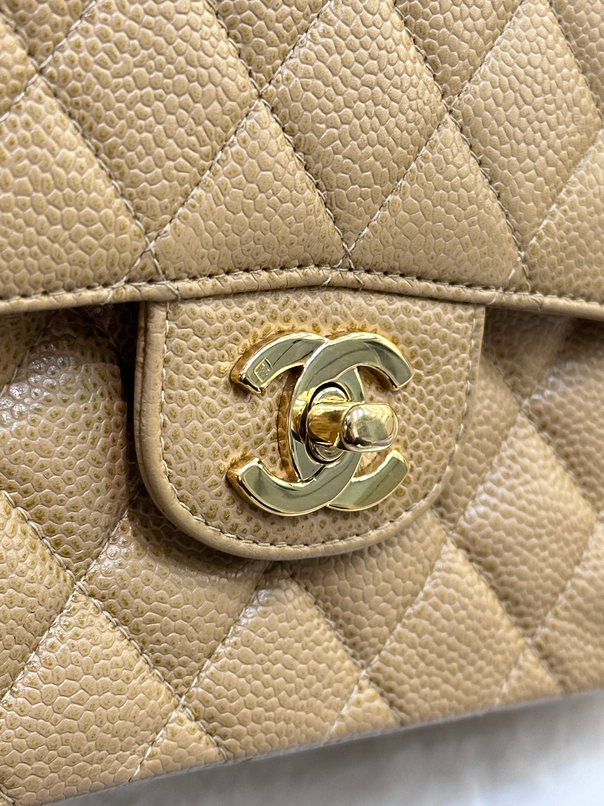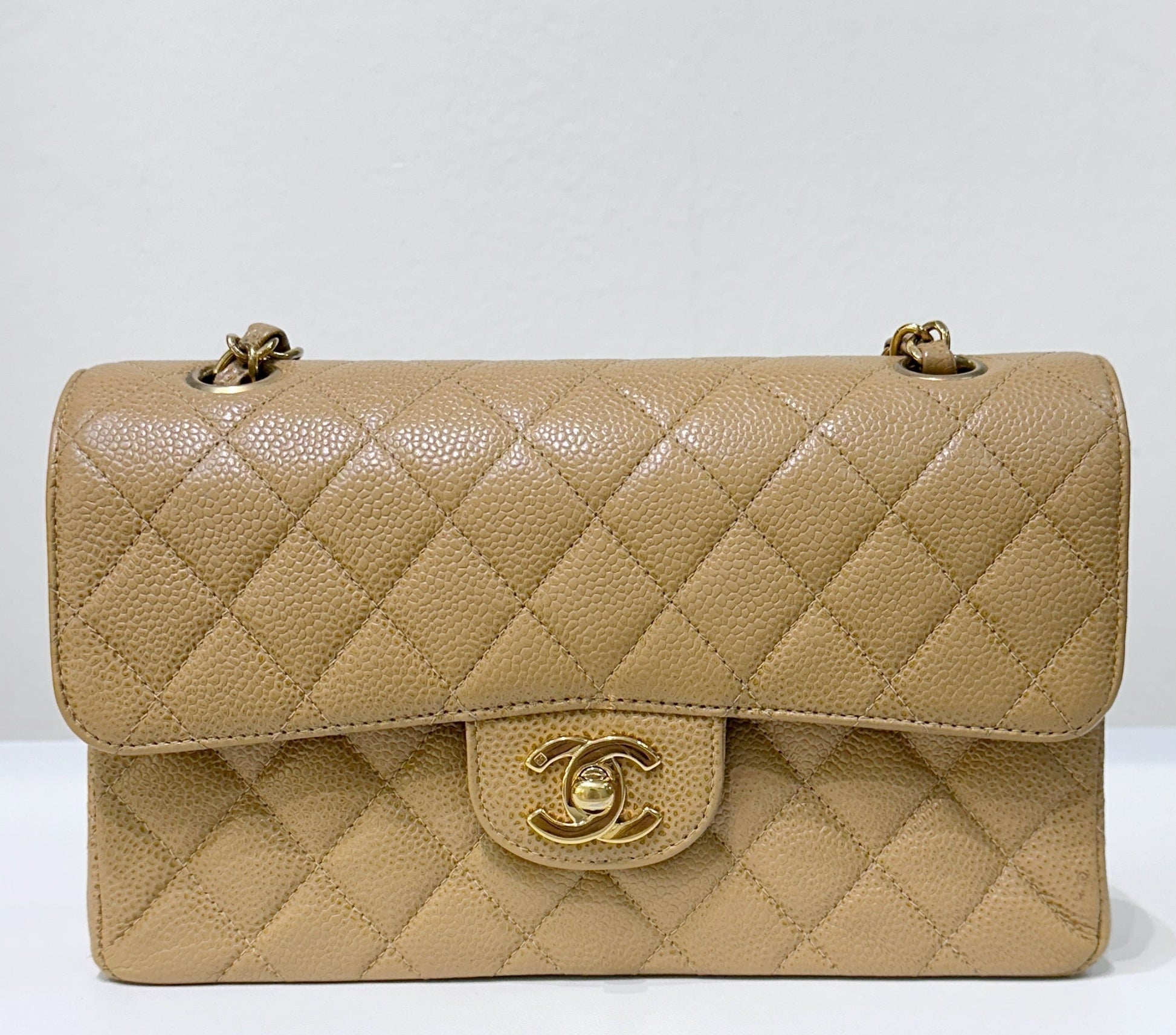 Chanel Small Caviar Quilted Double Flap Bag Beige
