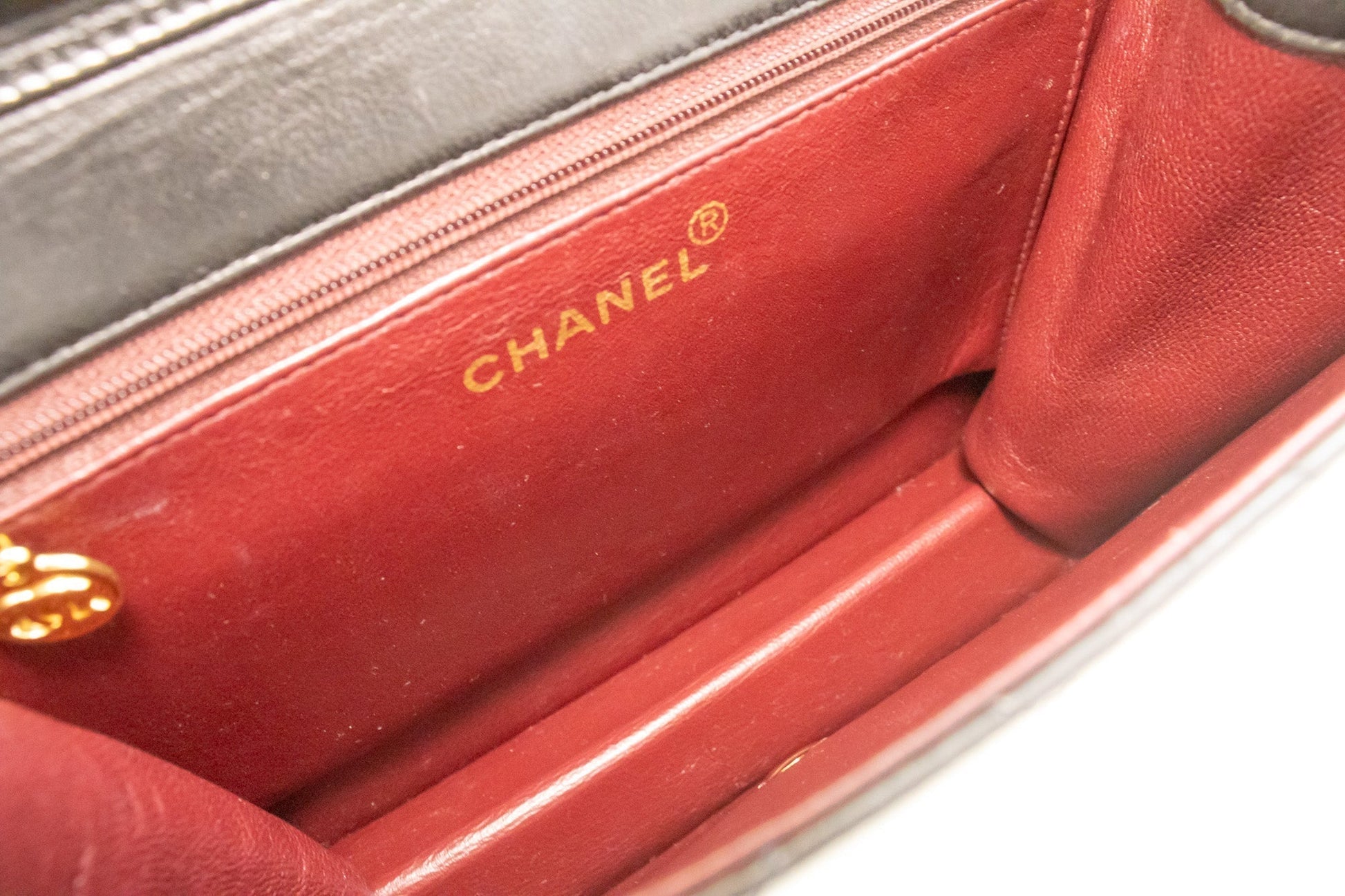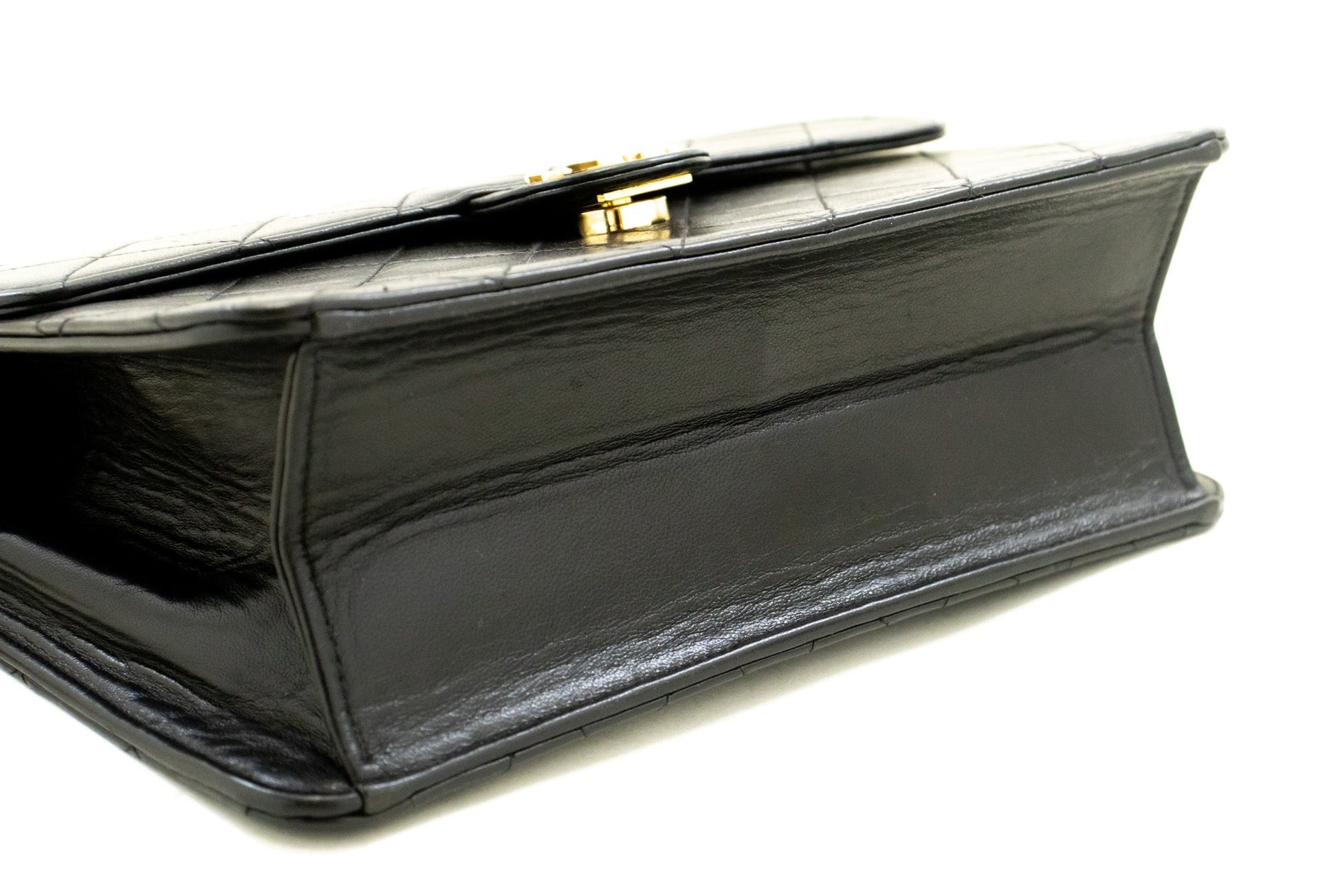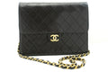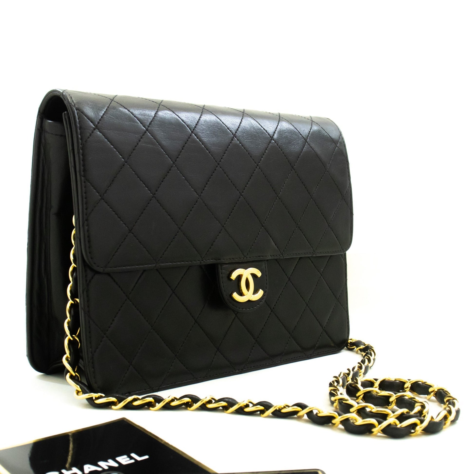 CHANEL Small Chain Shoulder Bag Clutch Black Quilted Flap Lambskin