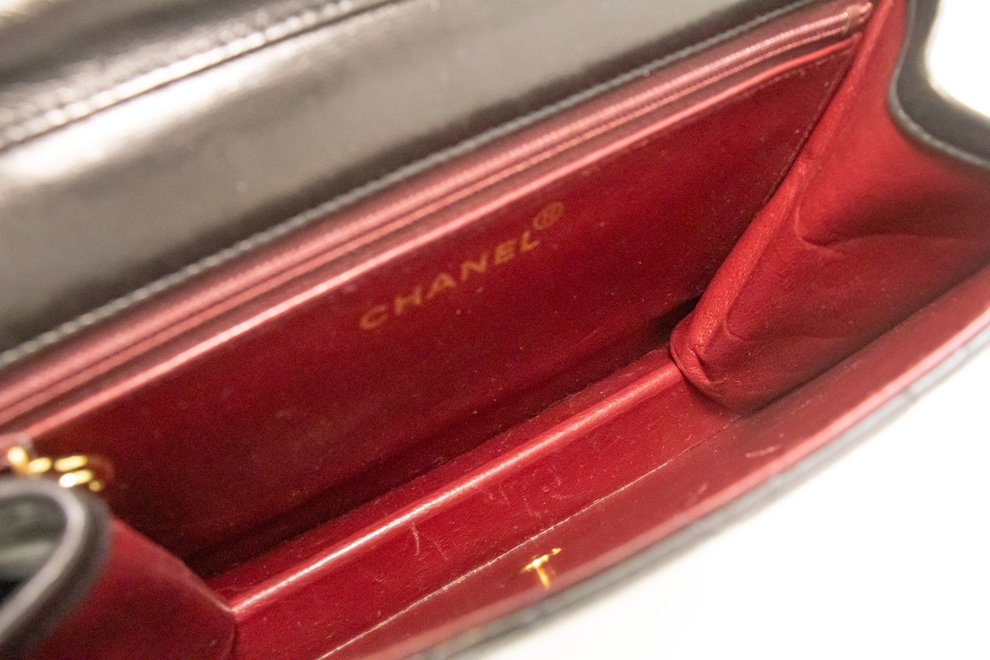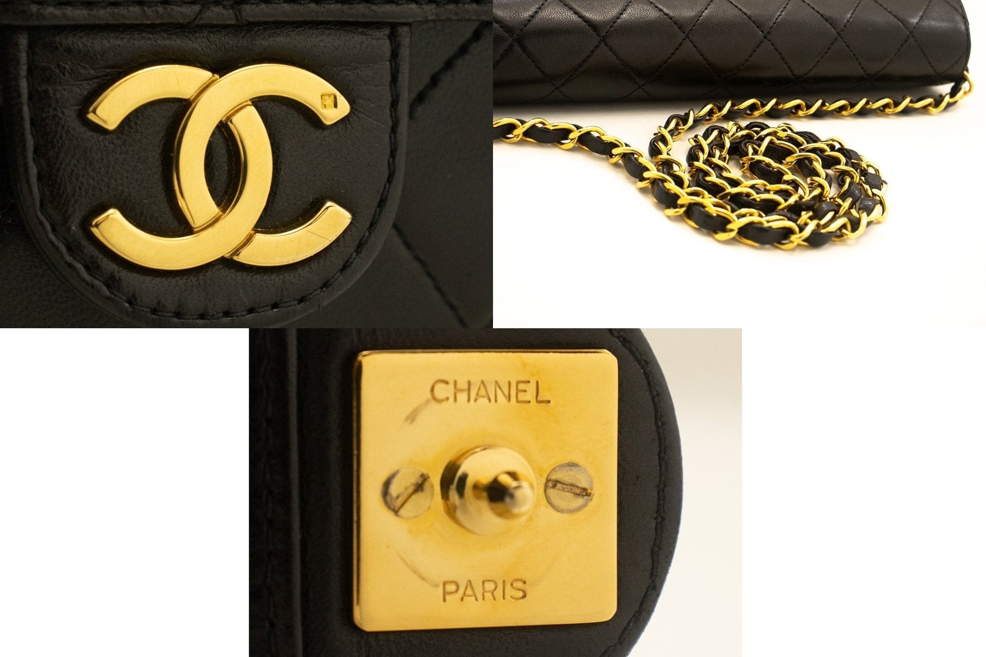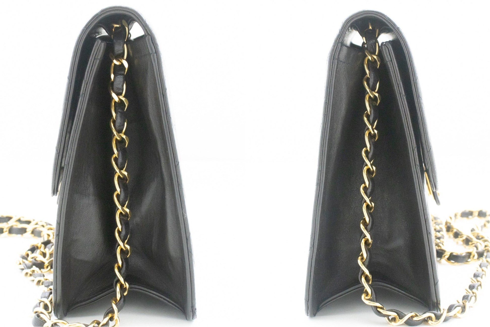 CHANEL Small Chain Shoulder Bag Clutch Black Quilted Flap Lambskin