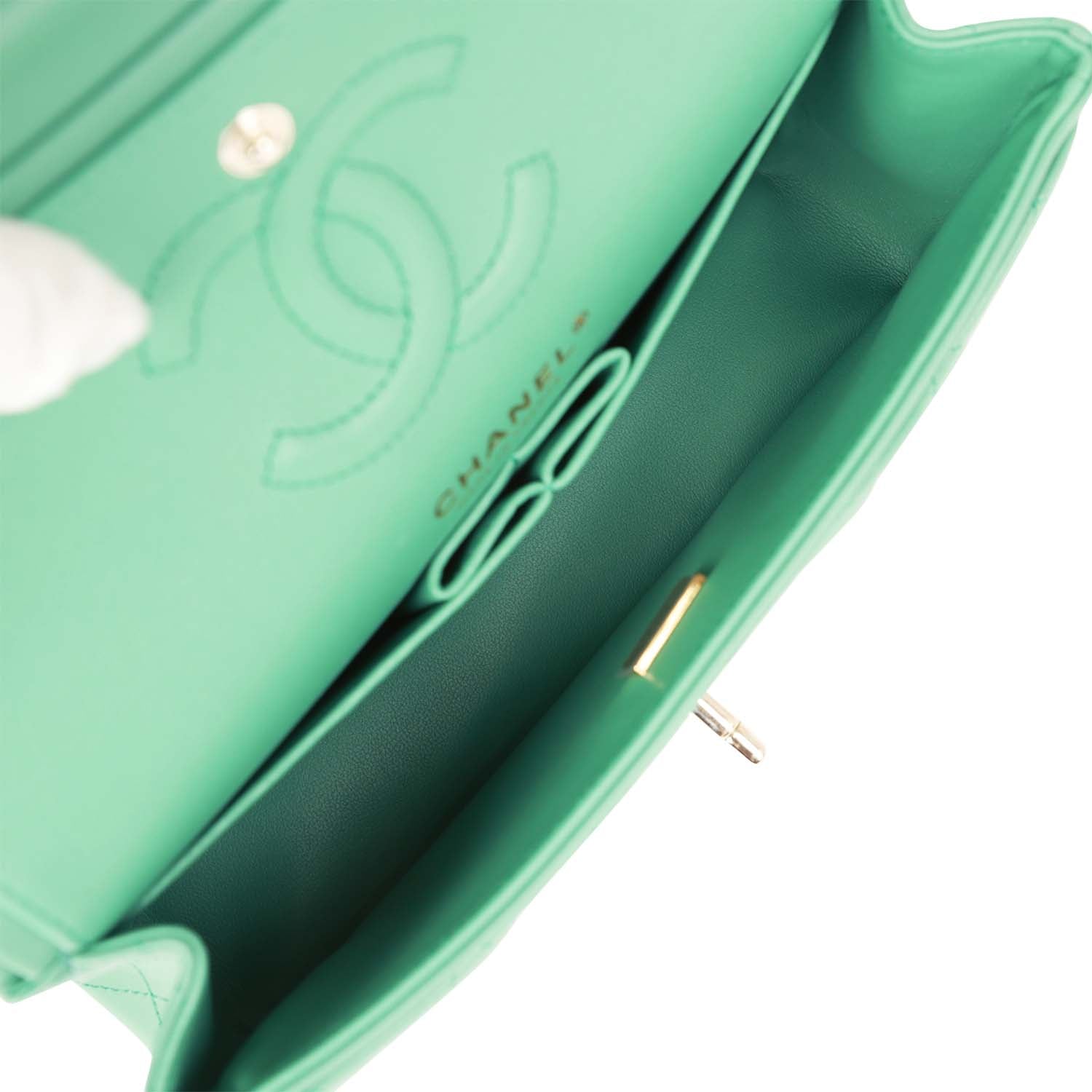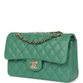 Chanel Small Classic Double Flap Bag Green Lambskin Light Gold Hardware