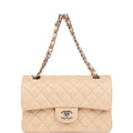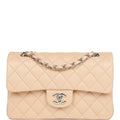 Chanel Small Classic Double Flap Beige Lambskin Silver Hardware