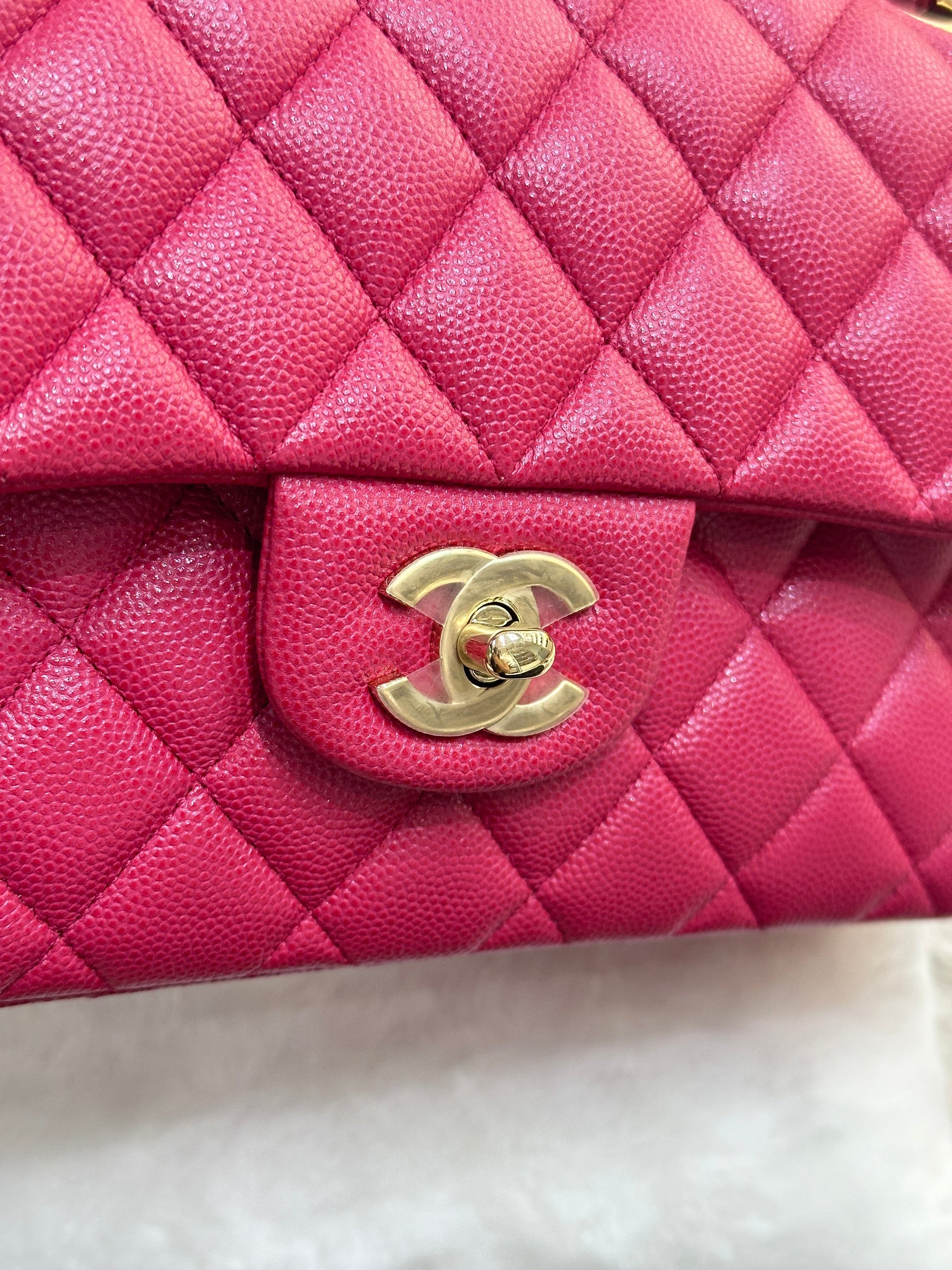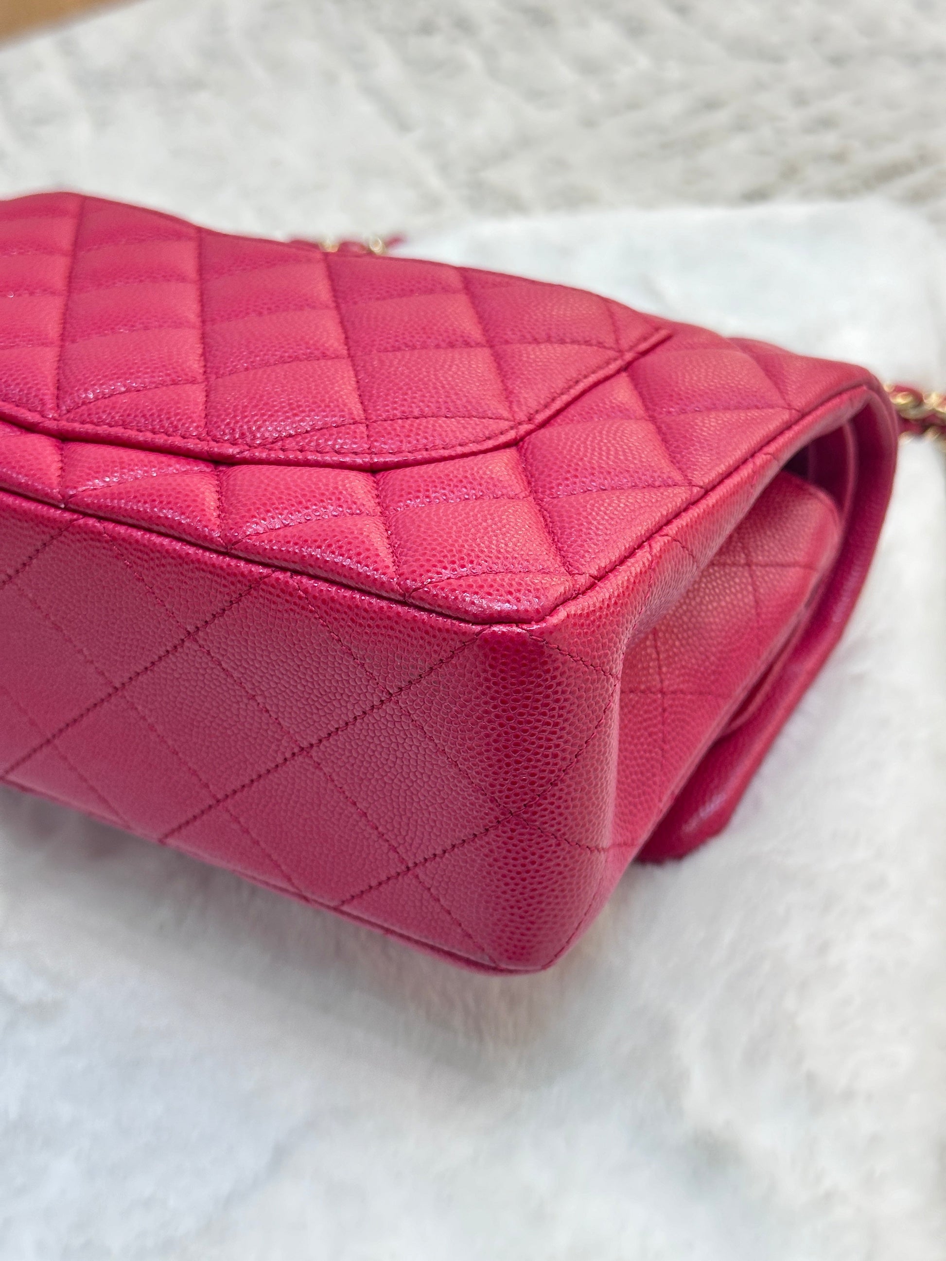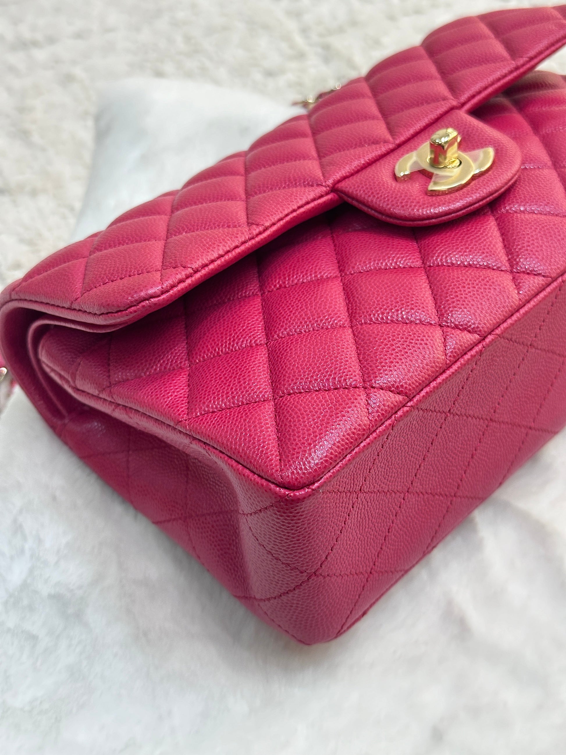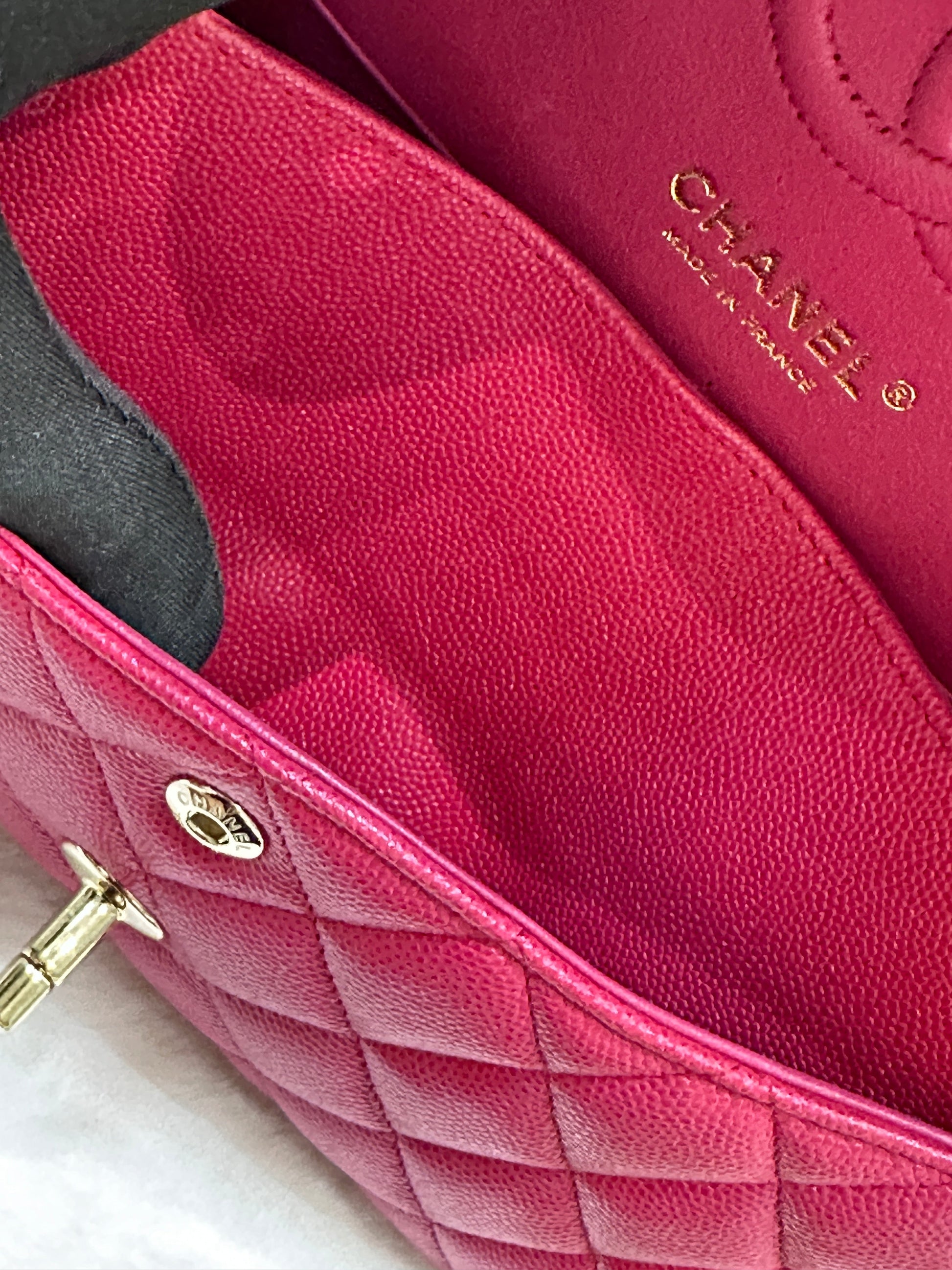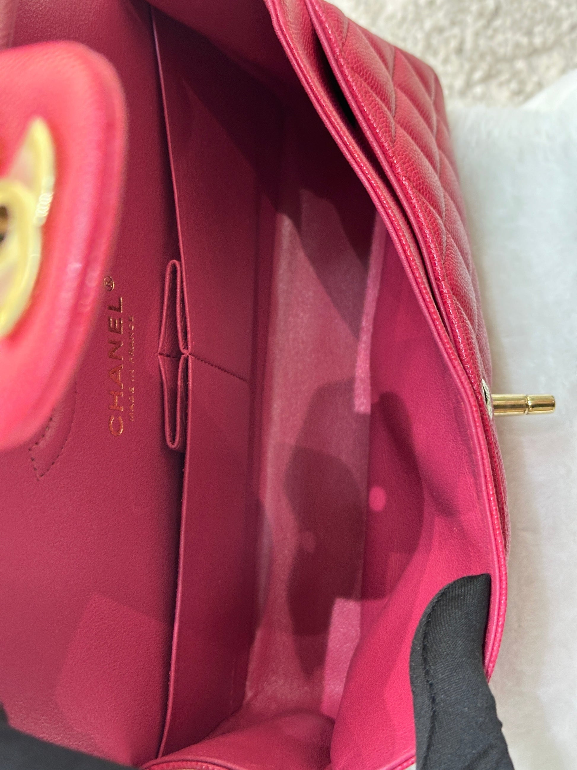 CHANEL Small Classic Double Flap Caviar Quilted Red GHW ?