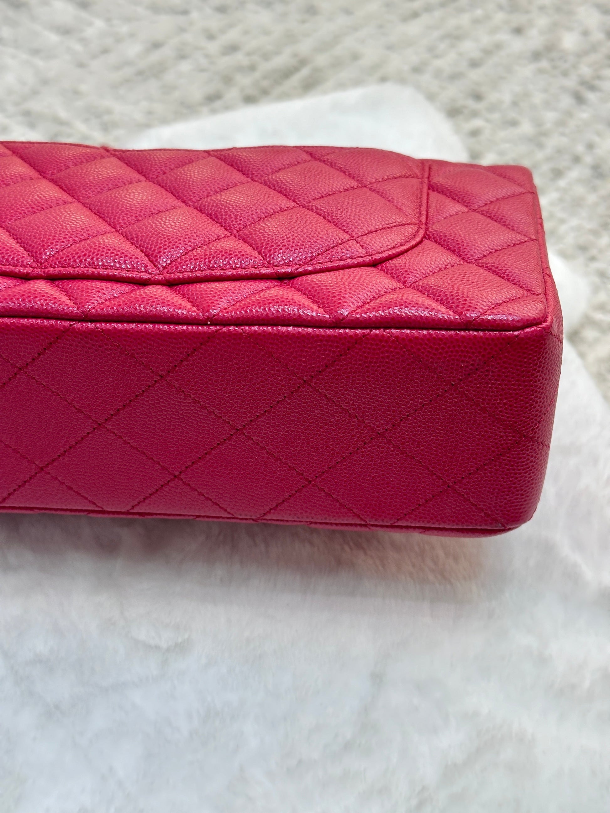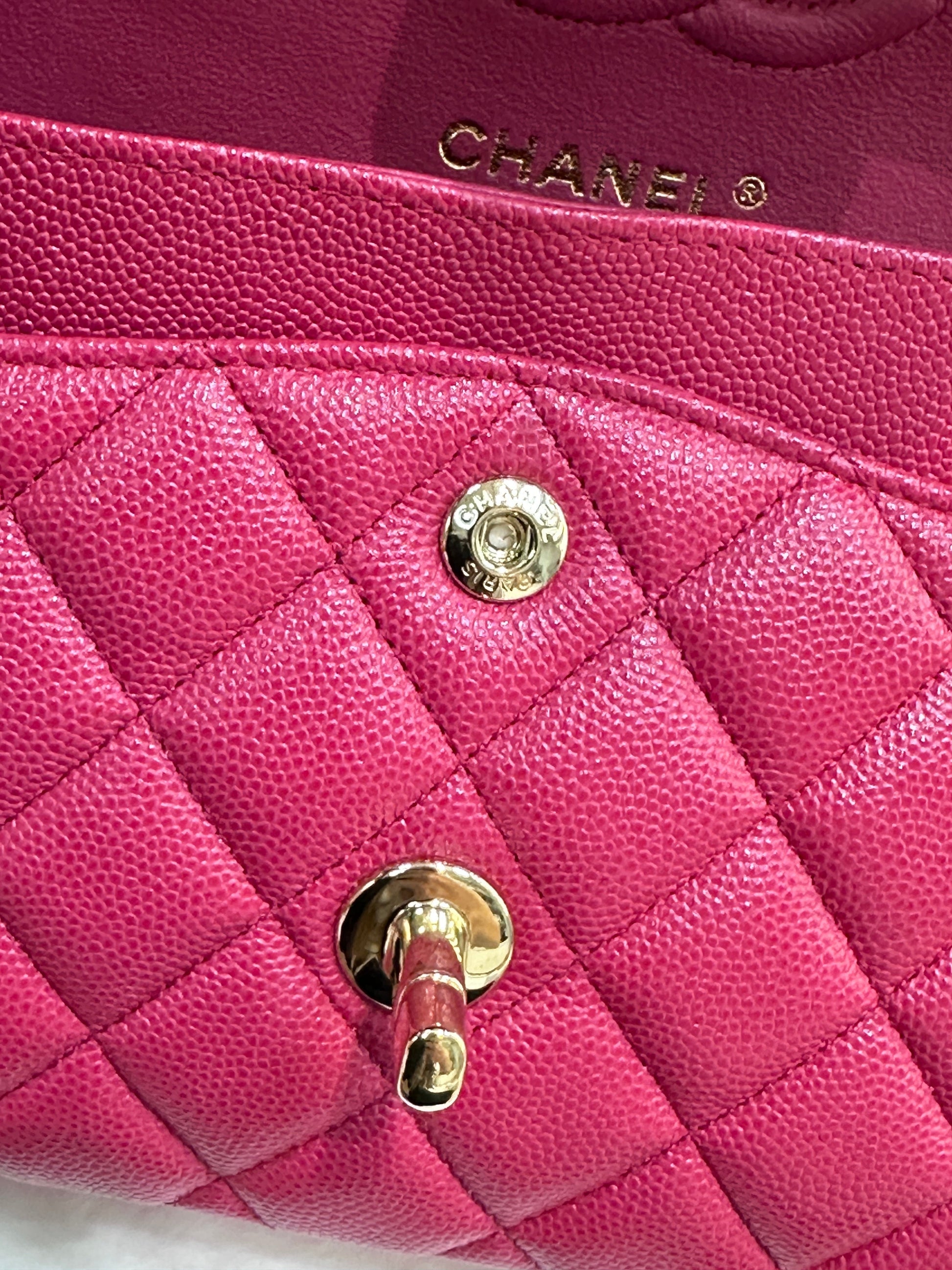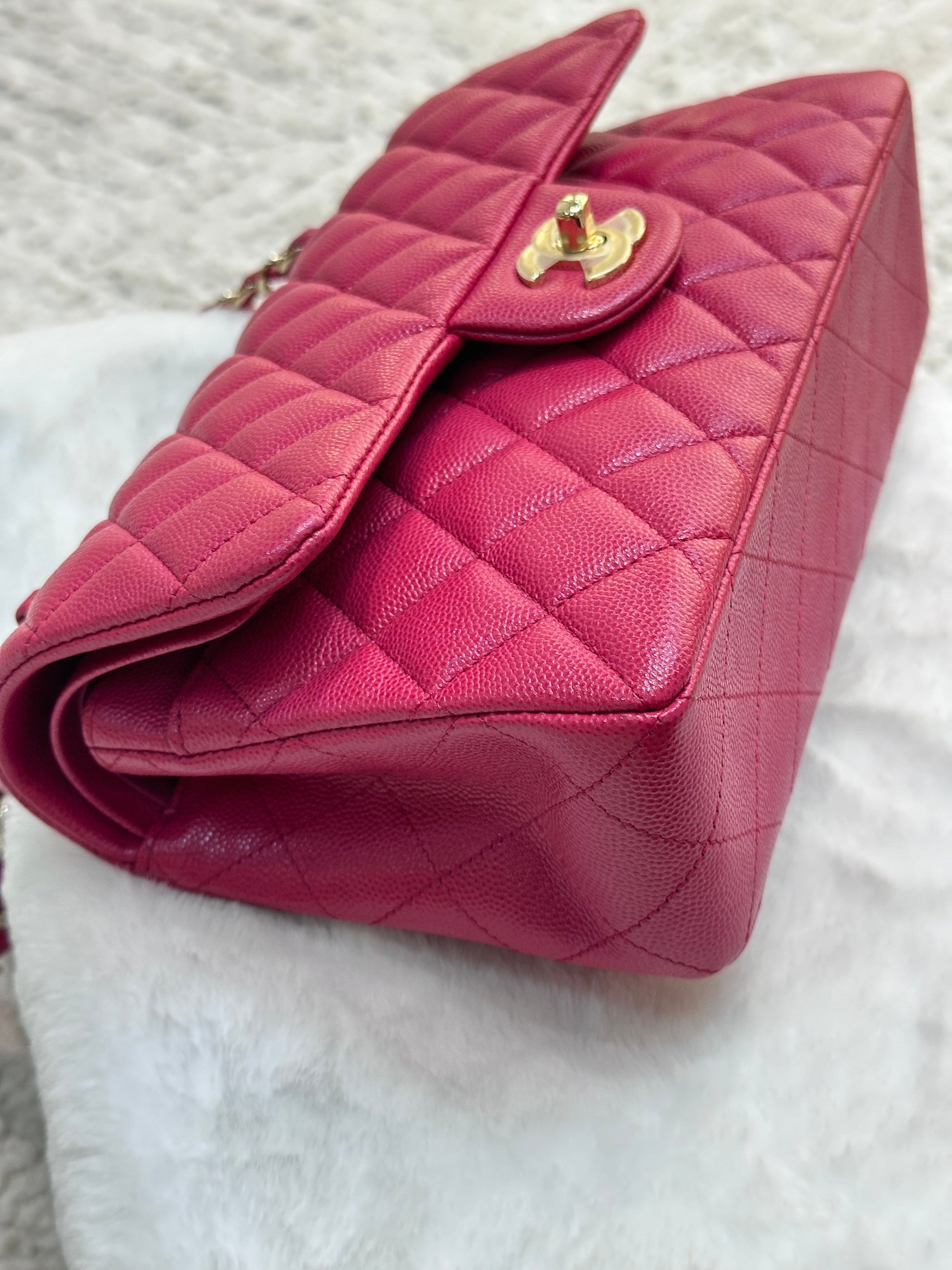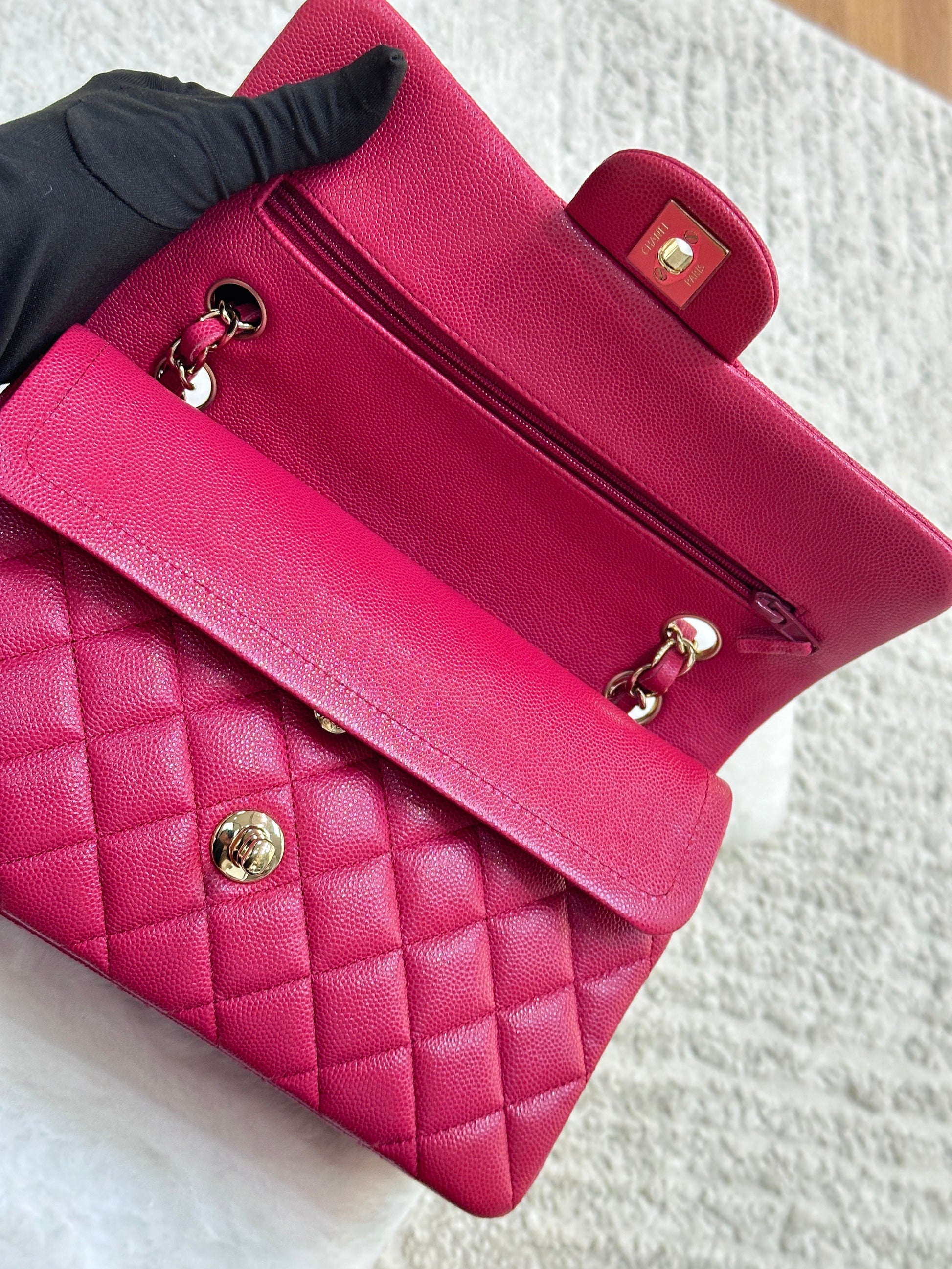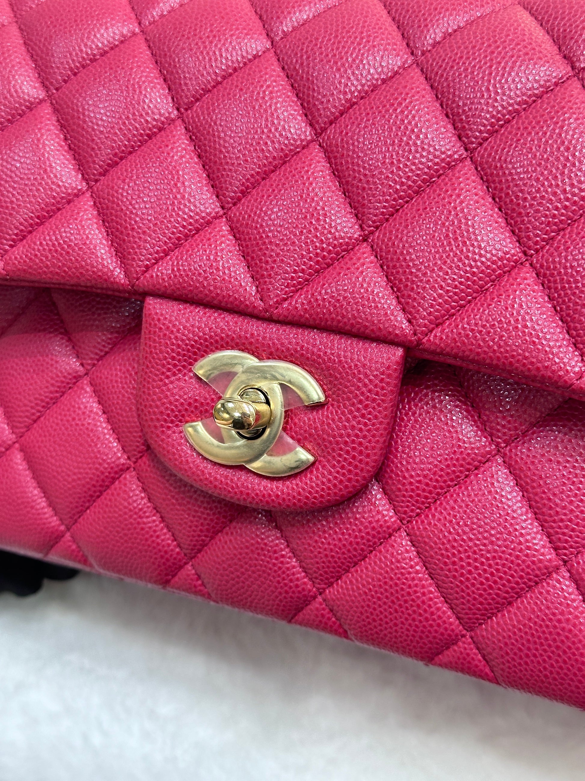CHANEL Small Classic Double Flap Caviar Quilted Red GHW ?
