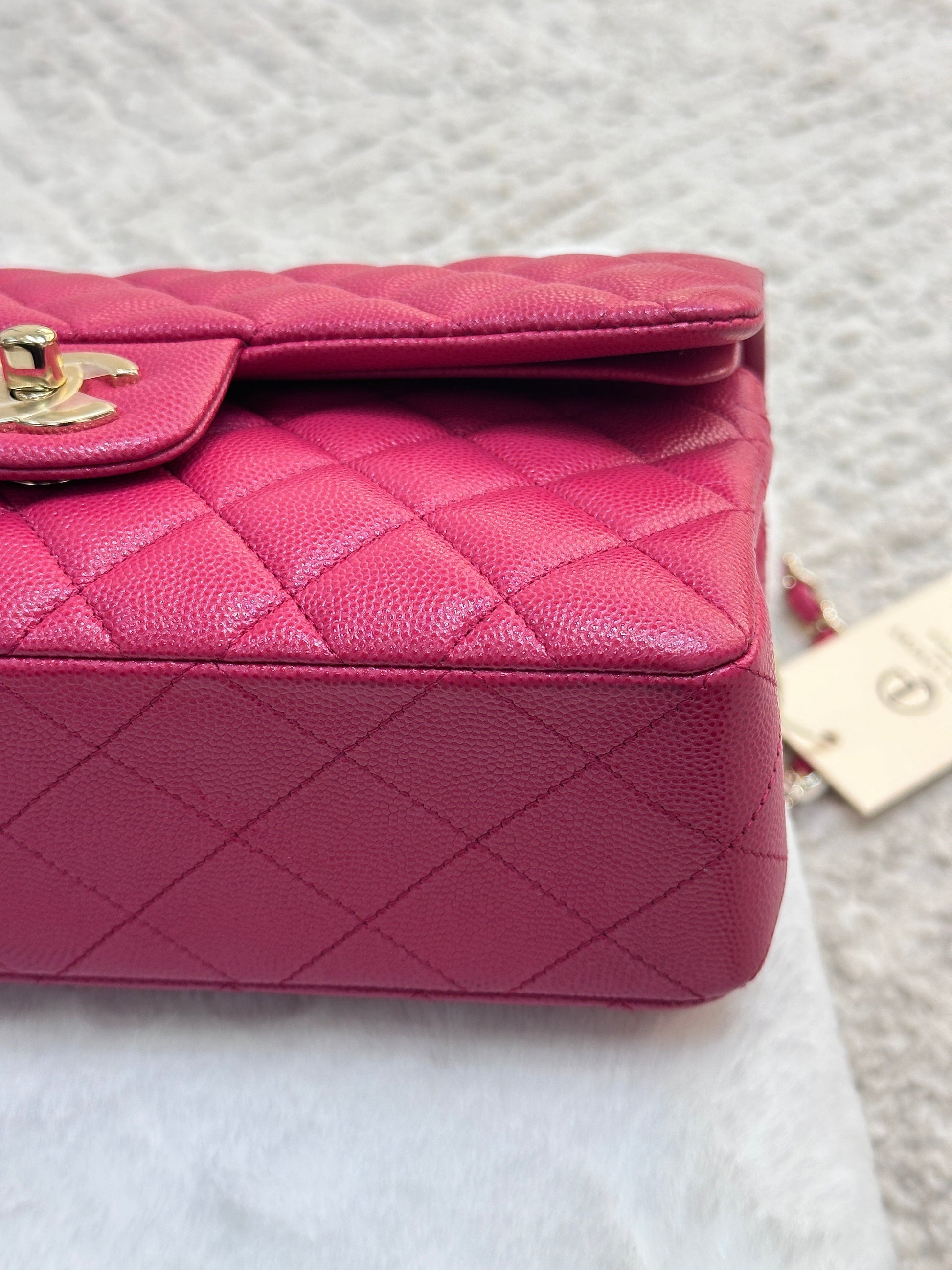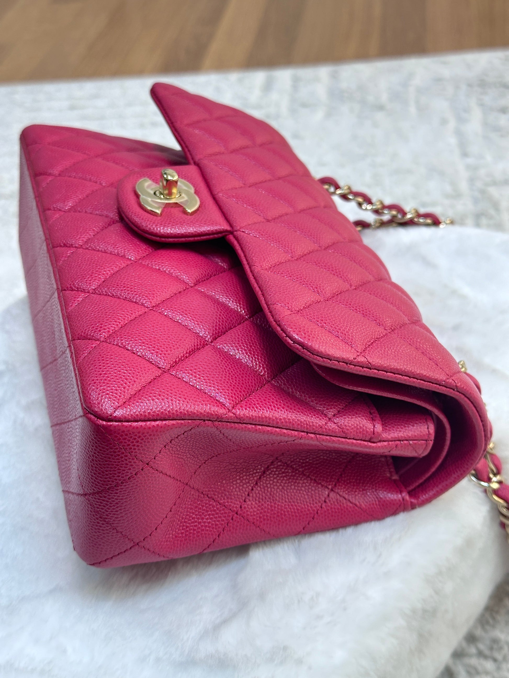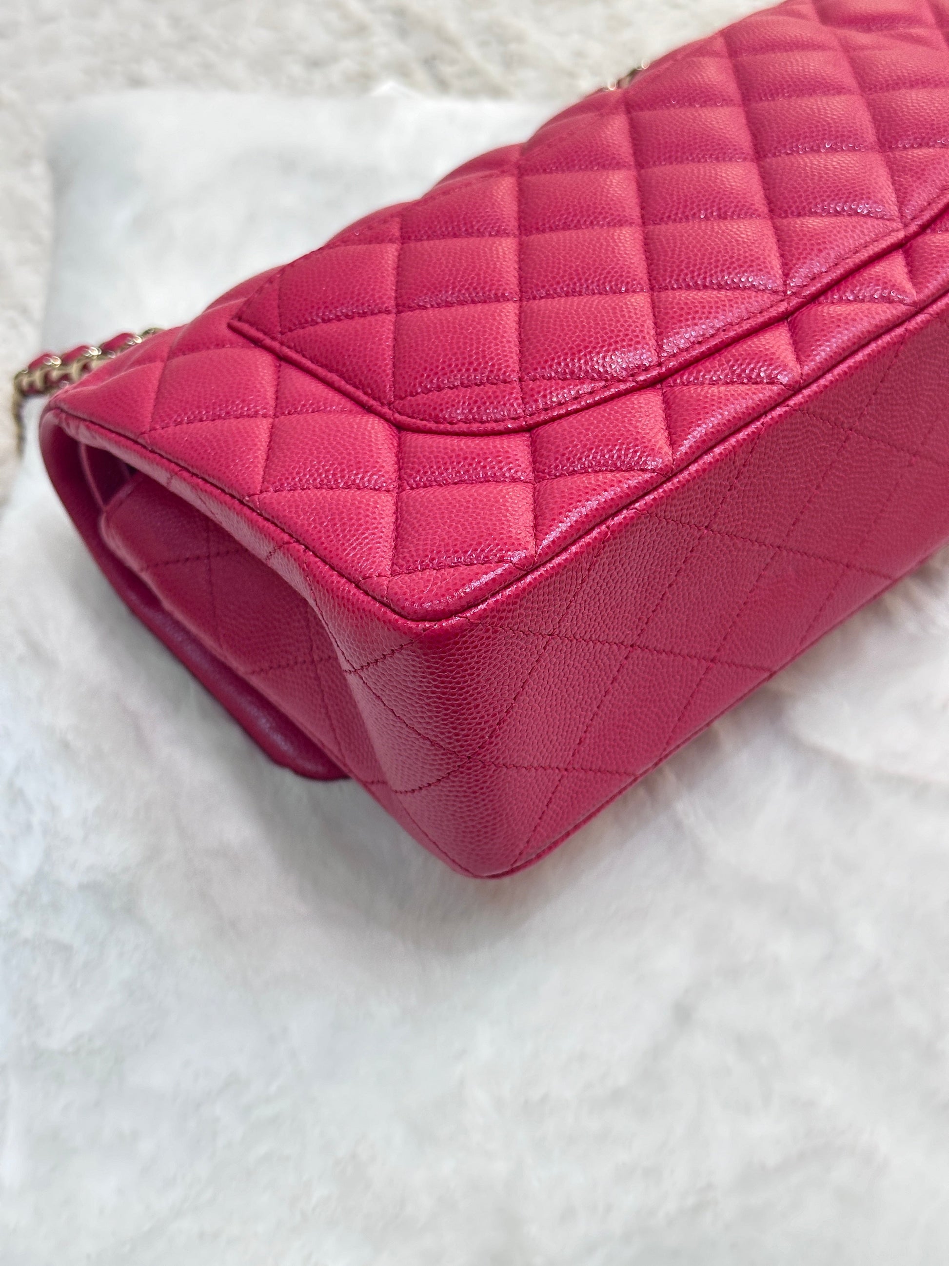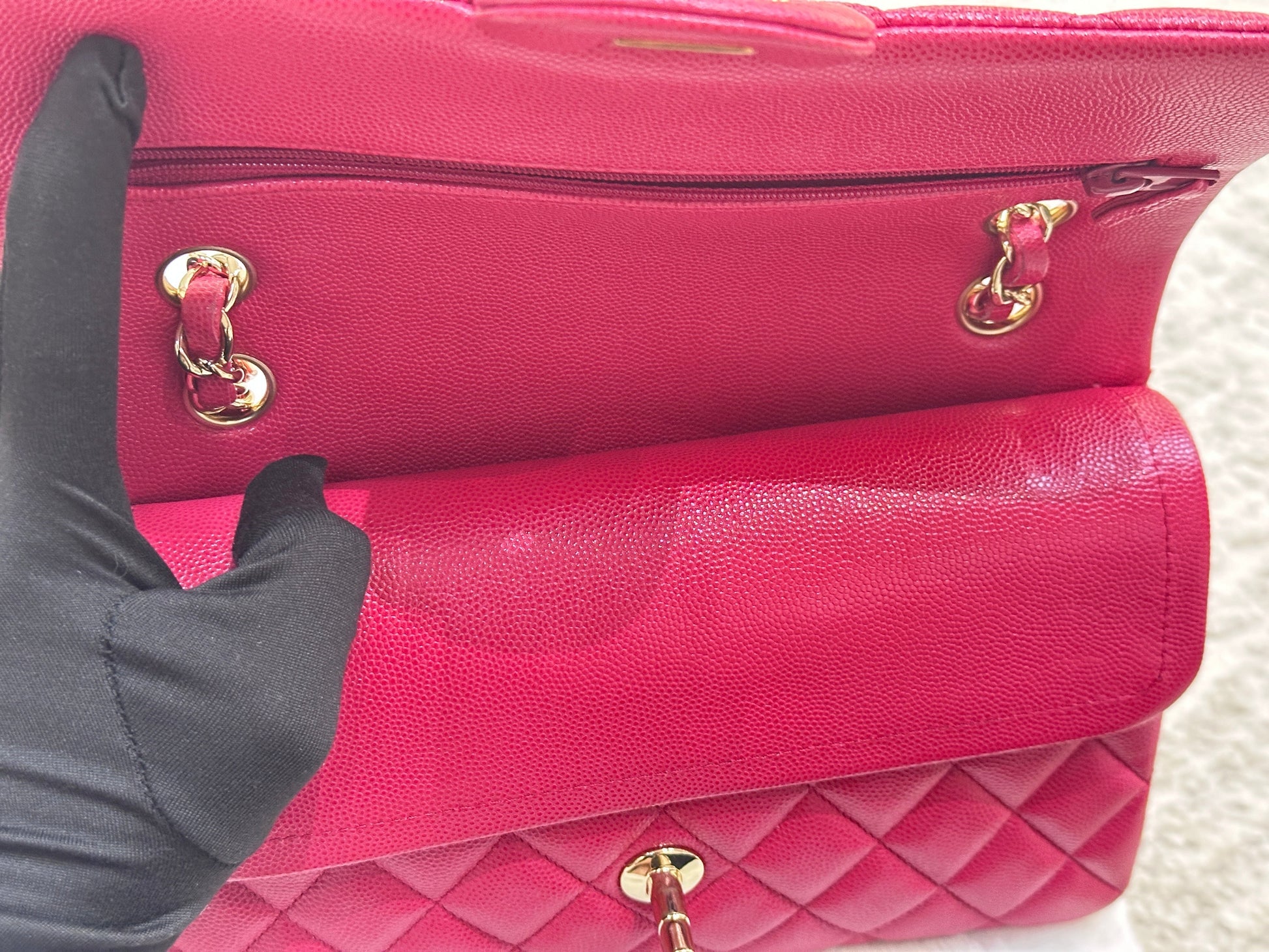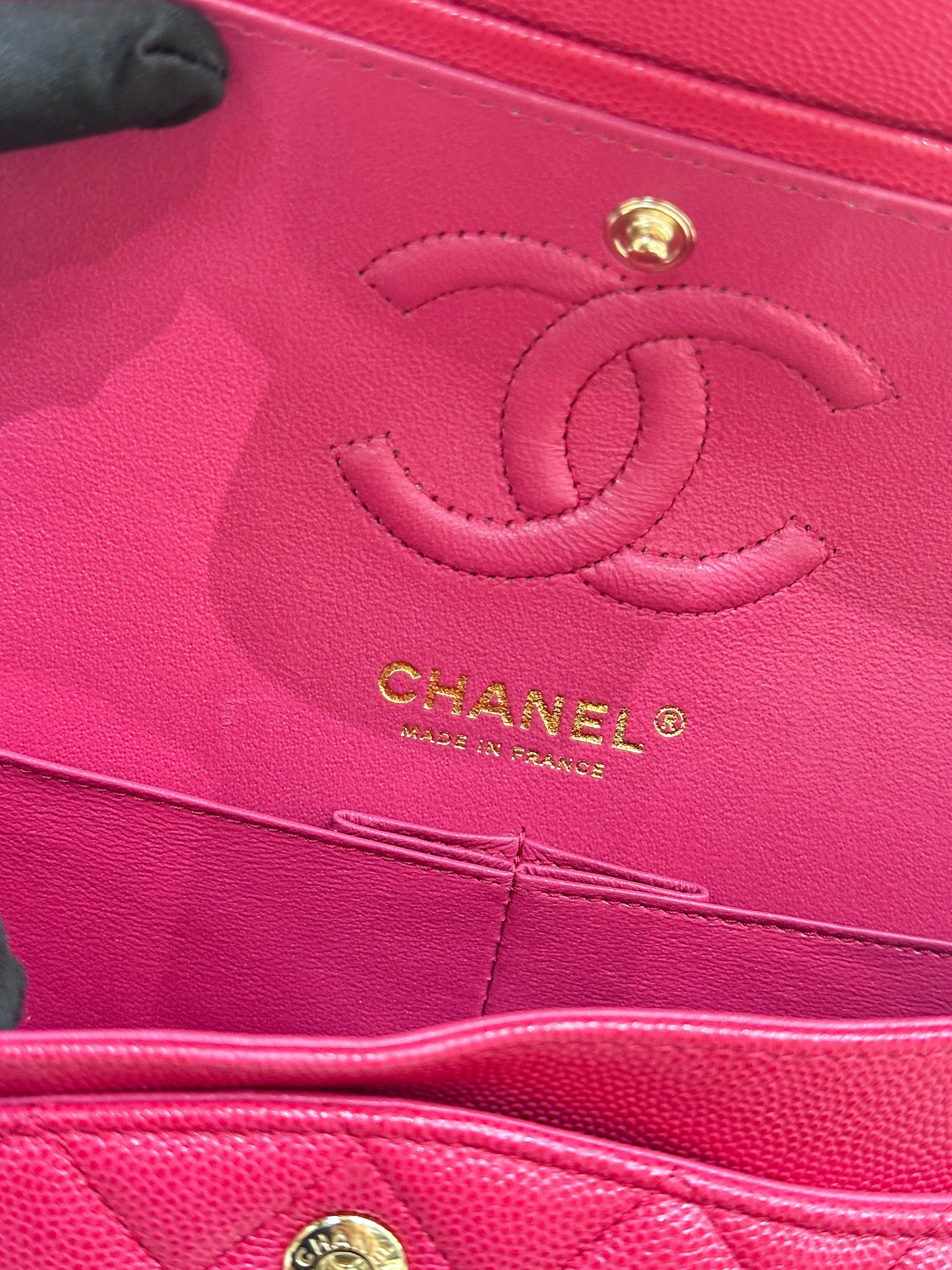 CHANEL Small Classic Double Flap Caviar Quilted Red GHW ?