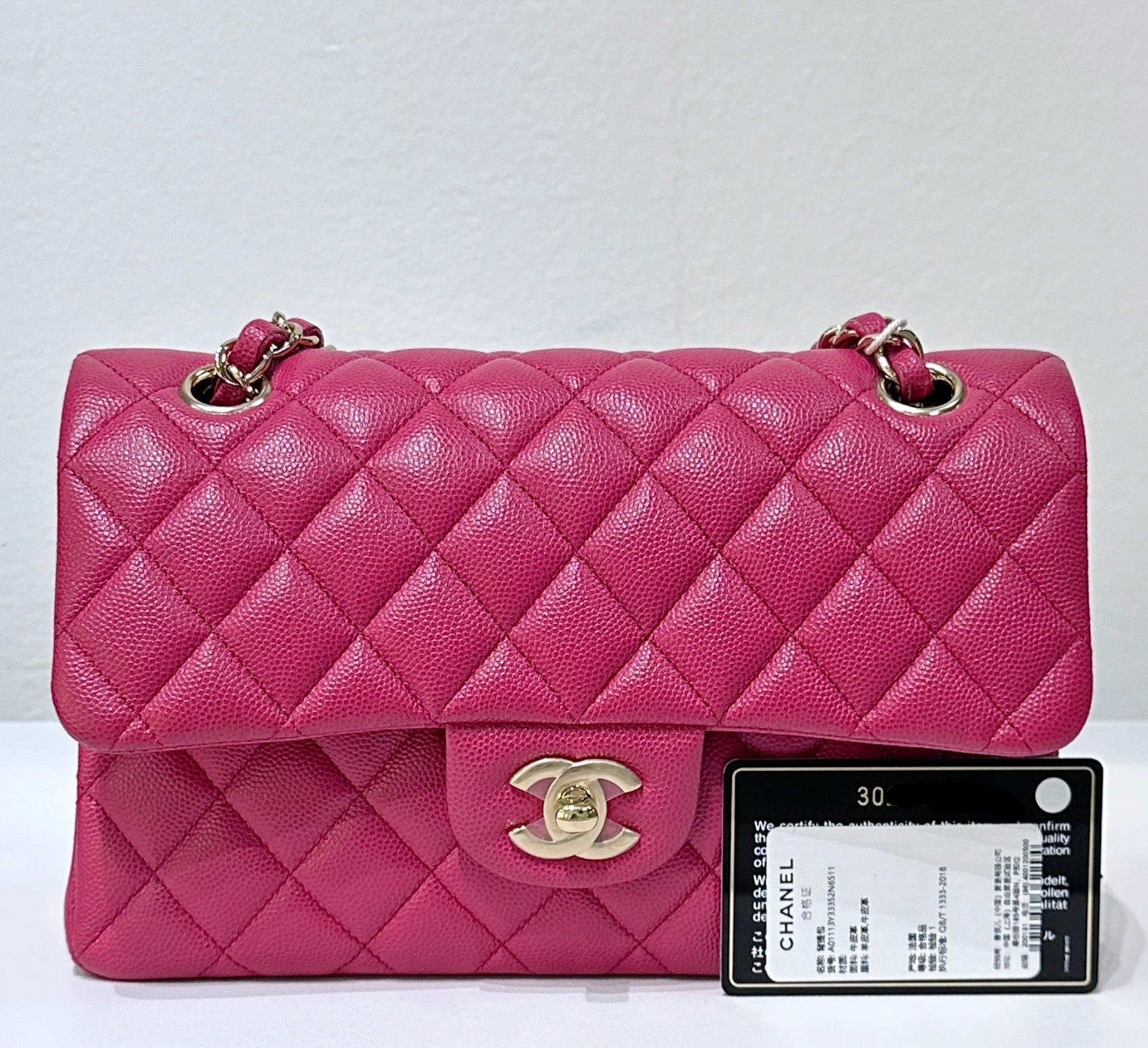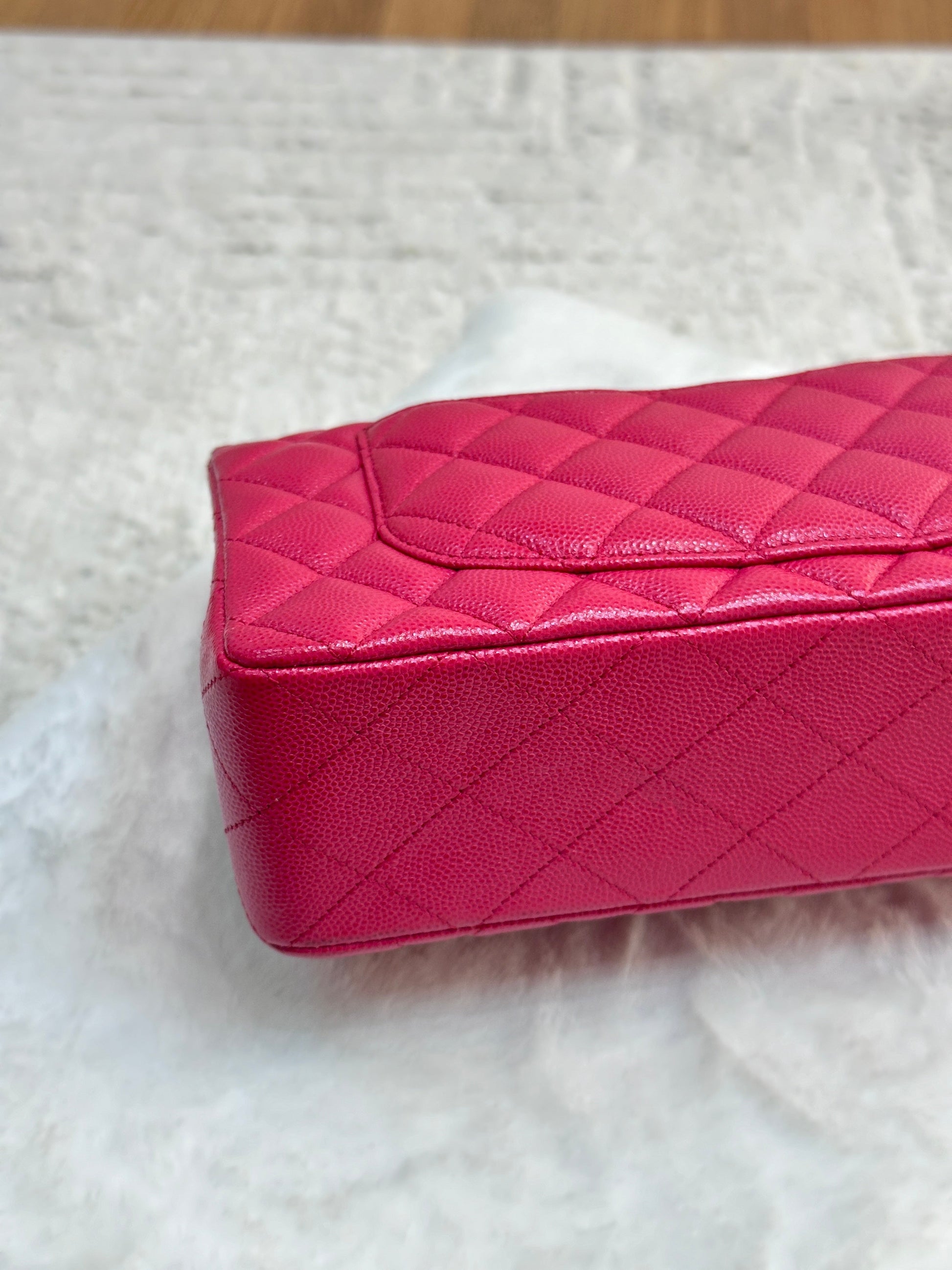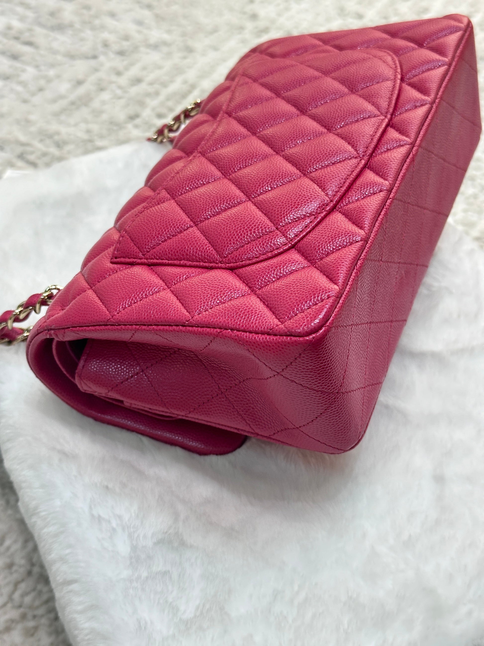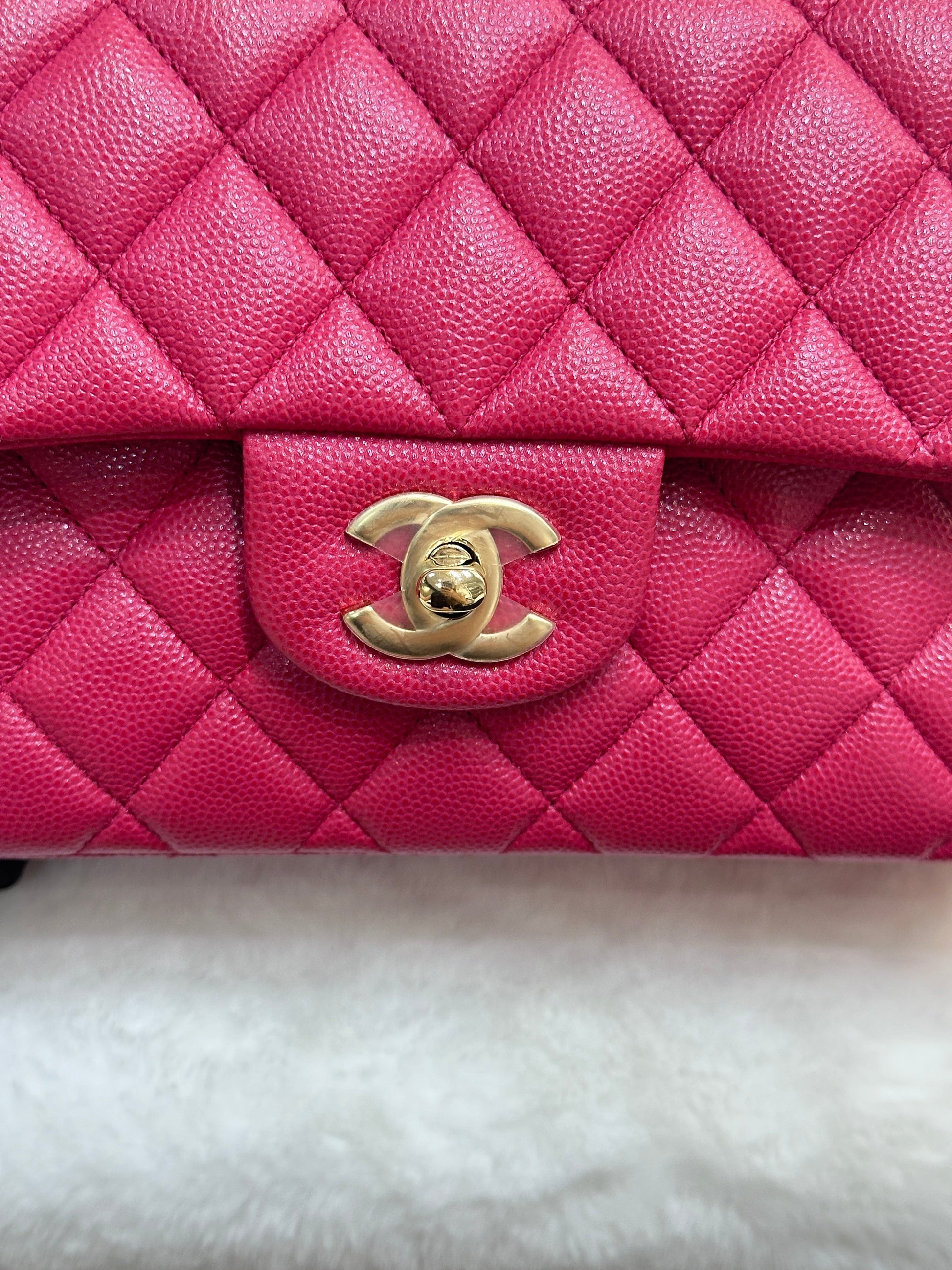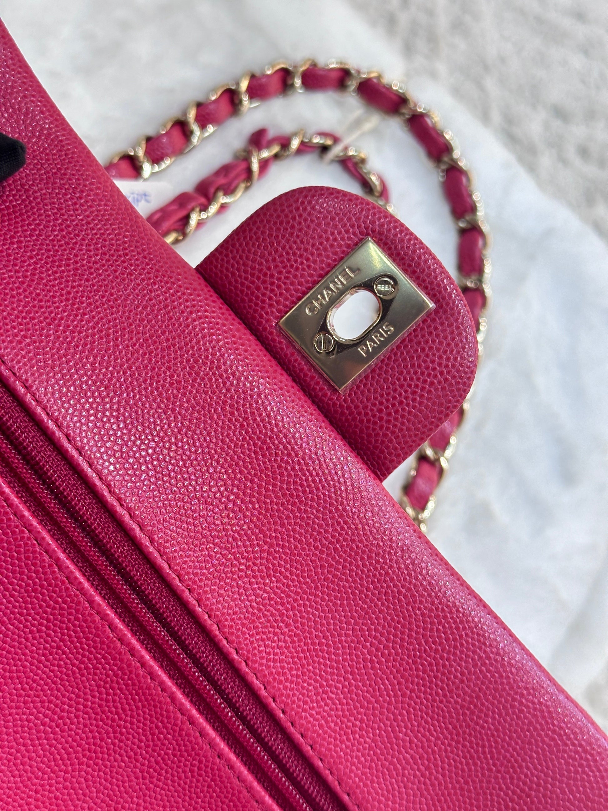 CHANEL Small Classic Double Flap Caviar Quilted Red GHW ?