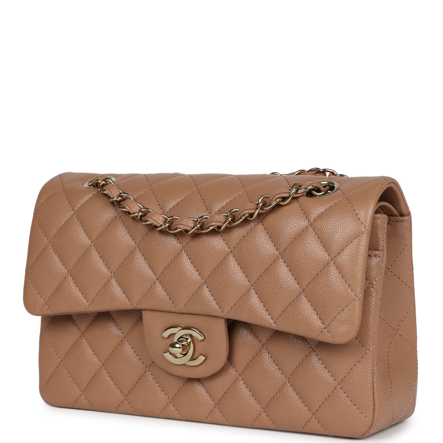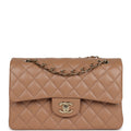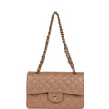 Chanel Small Classic Double Flap Dark Beige Caviar Light Gold Hardware