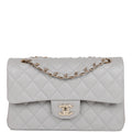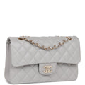 Chanel Small Classic Double Flap Grey Caviar Light Gold Hardware