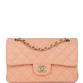 Chanel Small Classic Double Flap Peach Lambskin Light Gold Hardware