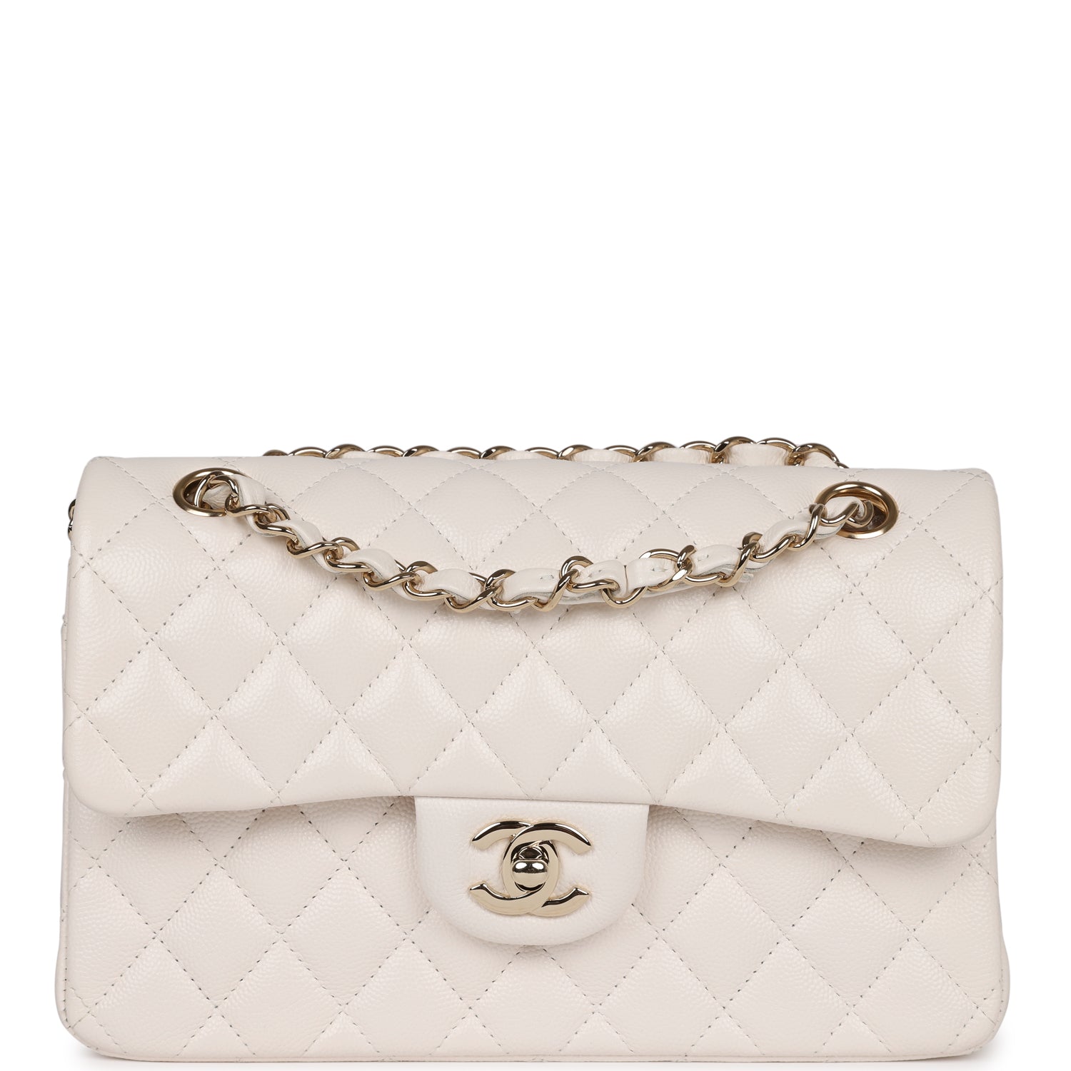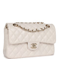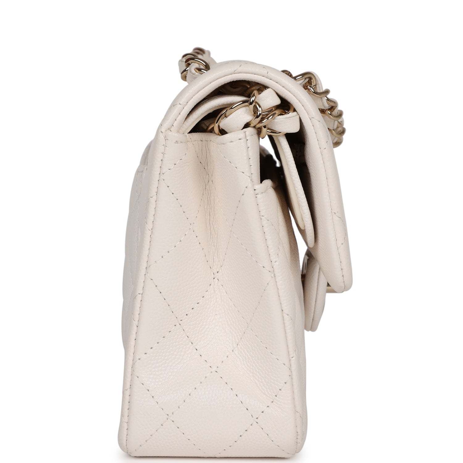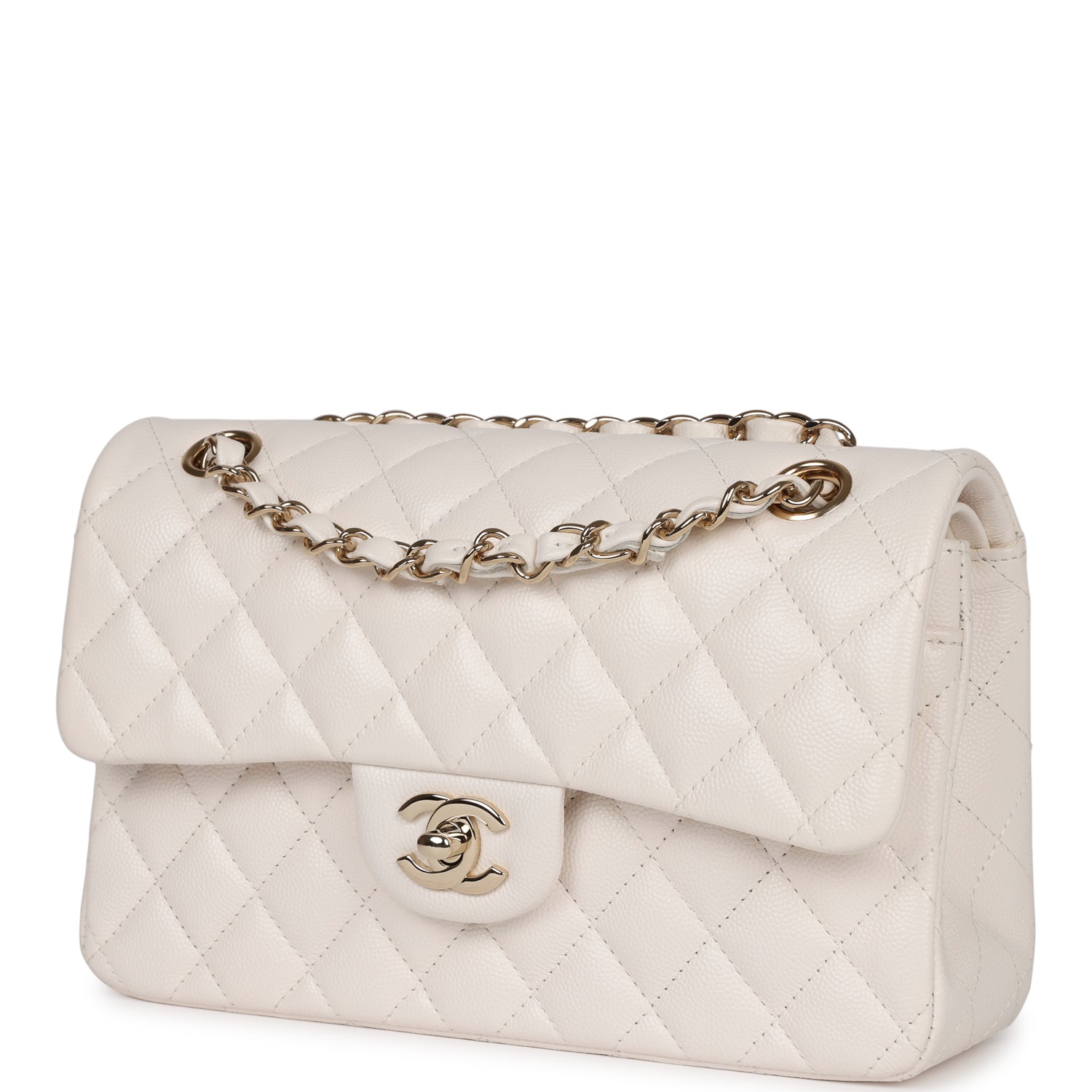 Chanel Small Classic Double Flap White Caviar Light Gold Hardware