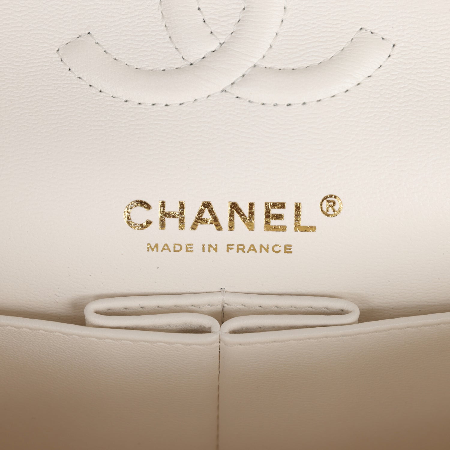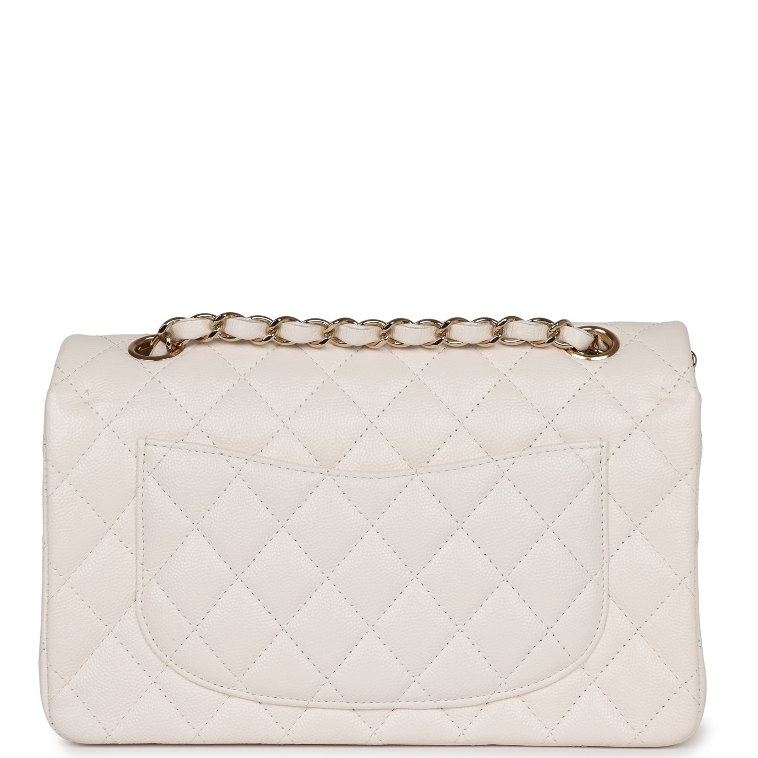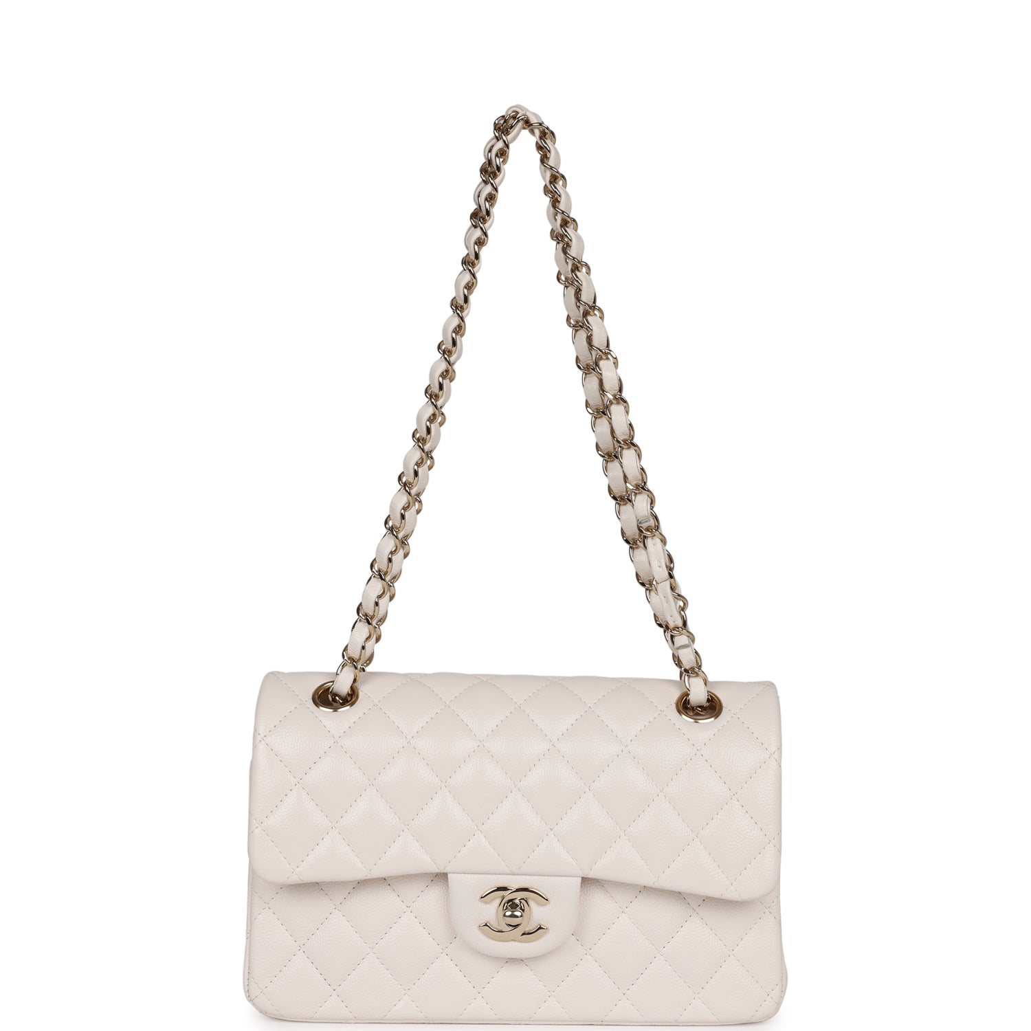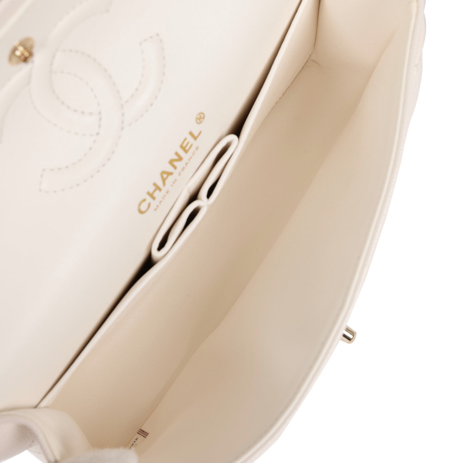 Chanel Small Classic Double Flap White Caviar Light Gold Hardware