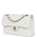 Chanel Small Classic Double Flap White Caviar Light Gold Hardware