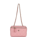 Chanel Small Classic Vanity Case Pink Caviar Light Gold Hardware