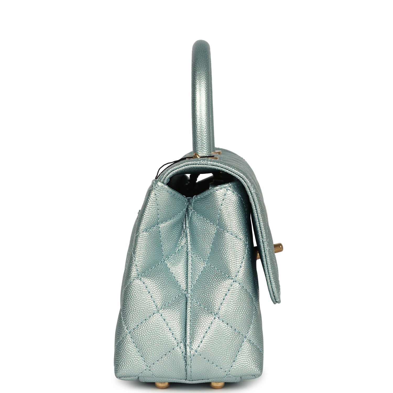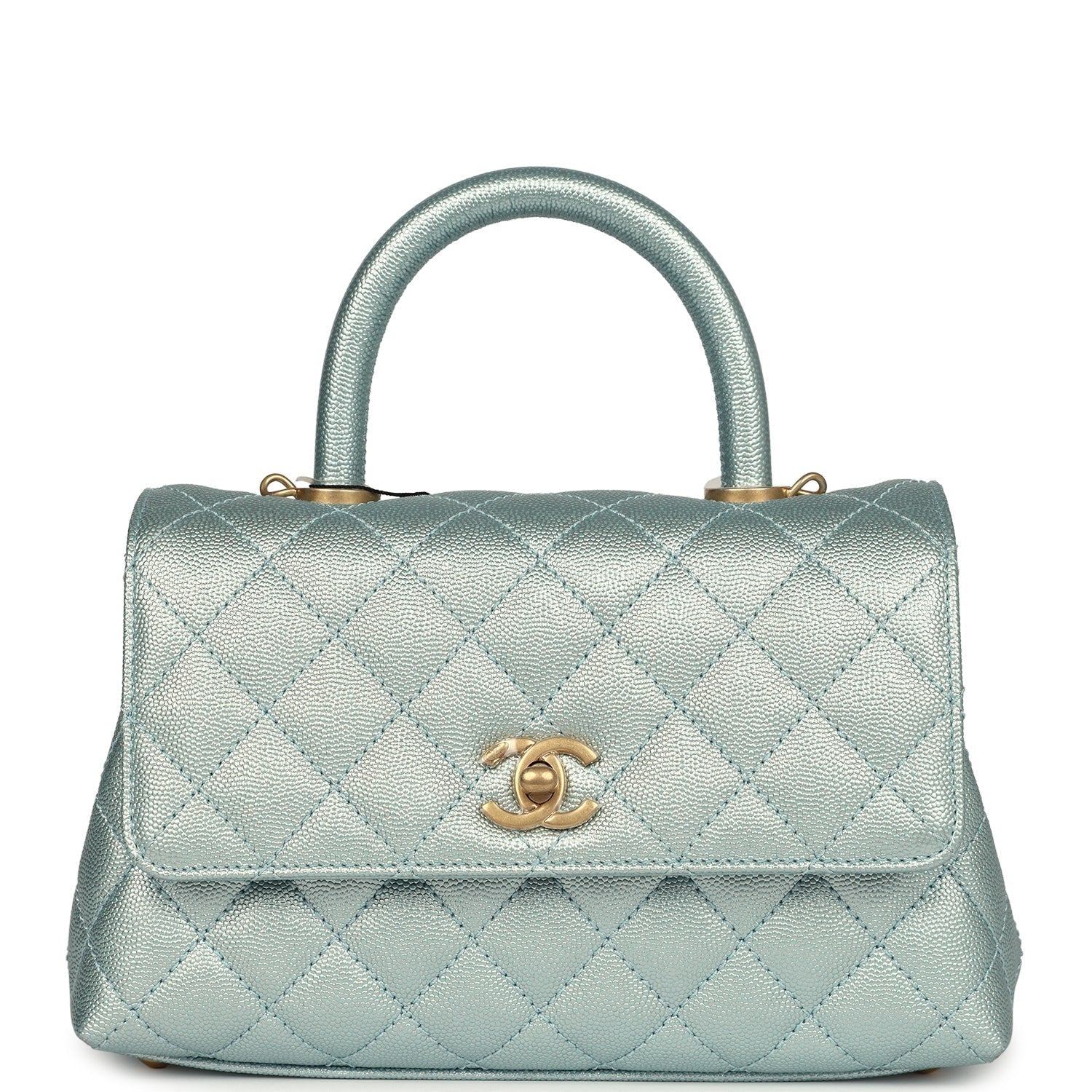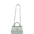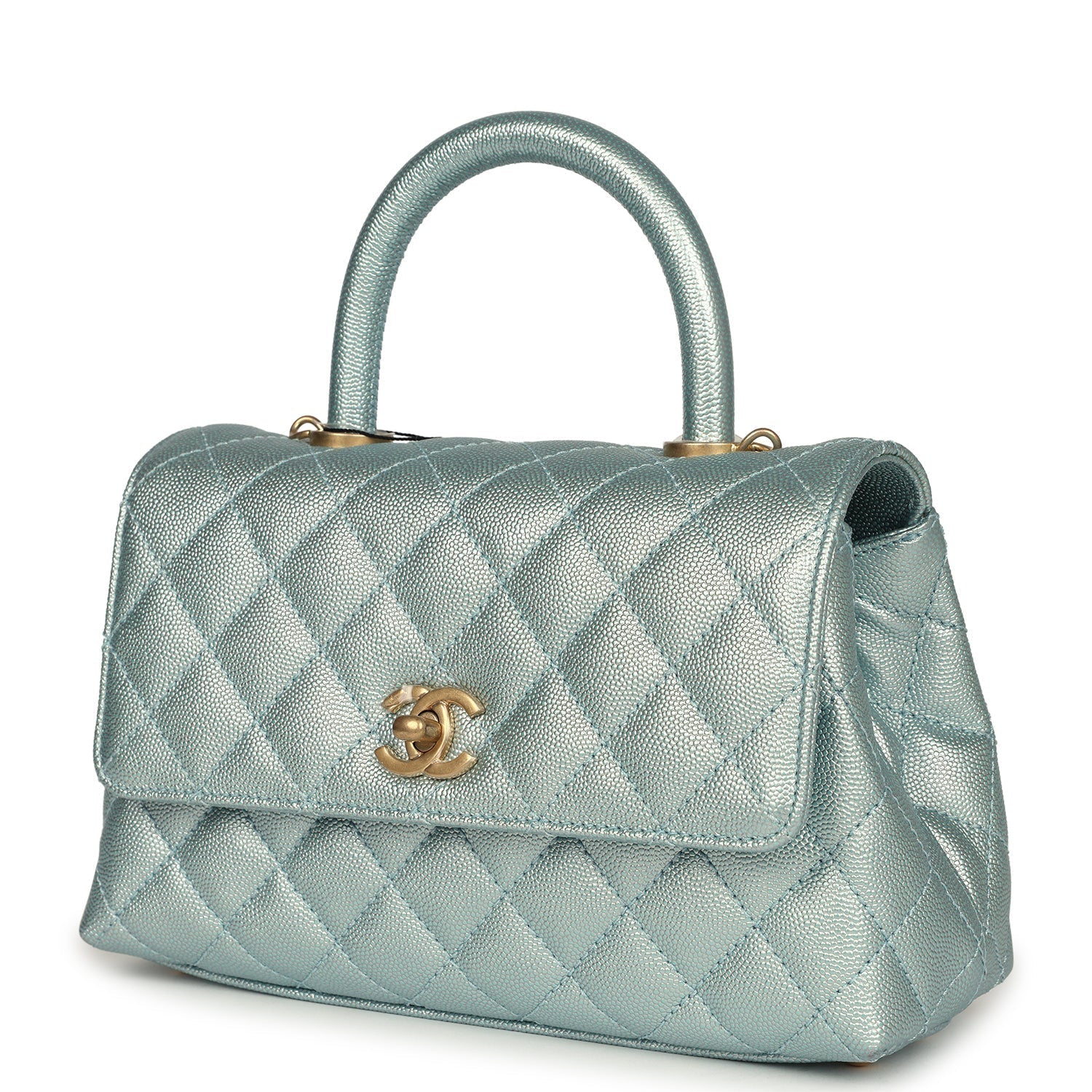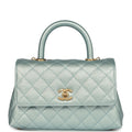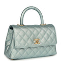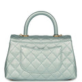 Chanel Small Coco Handle Flap Bag Light Blue Iridescent Caviar Aged Gold Hardware