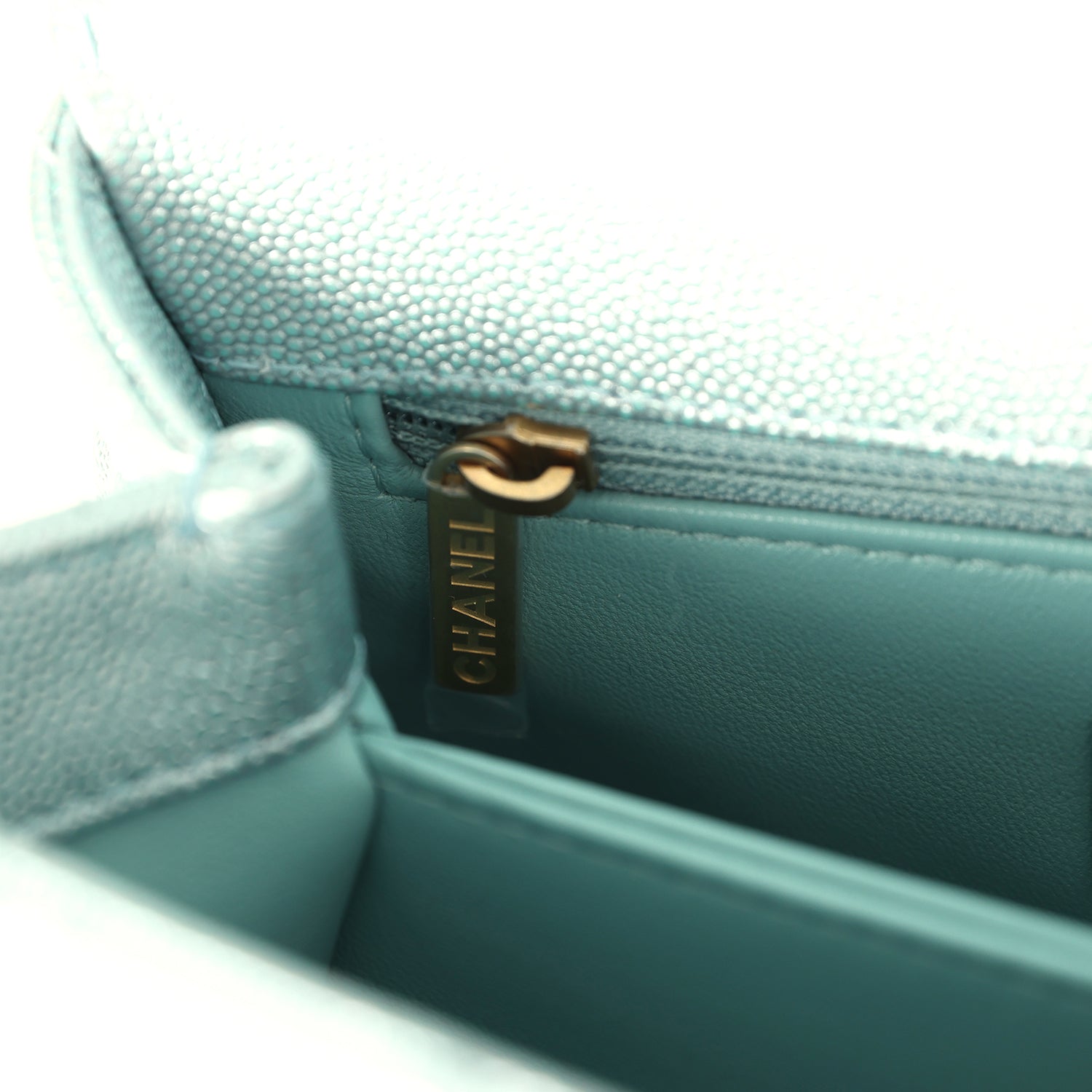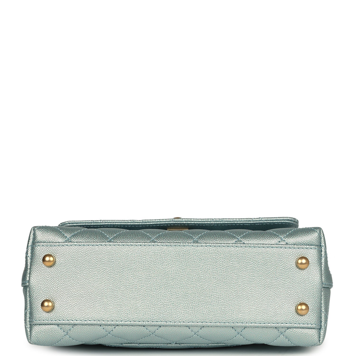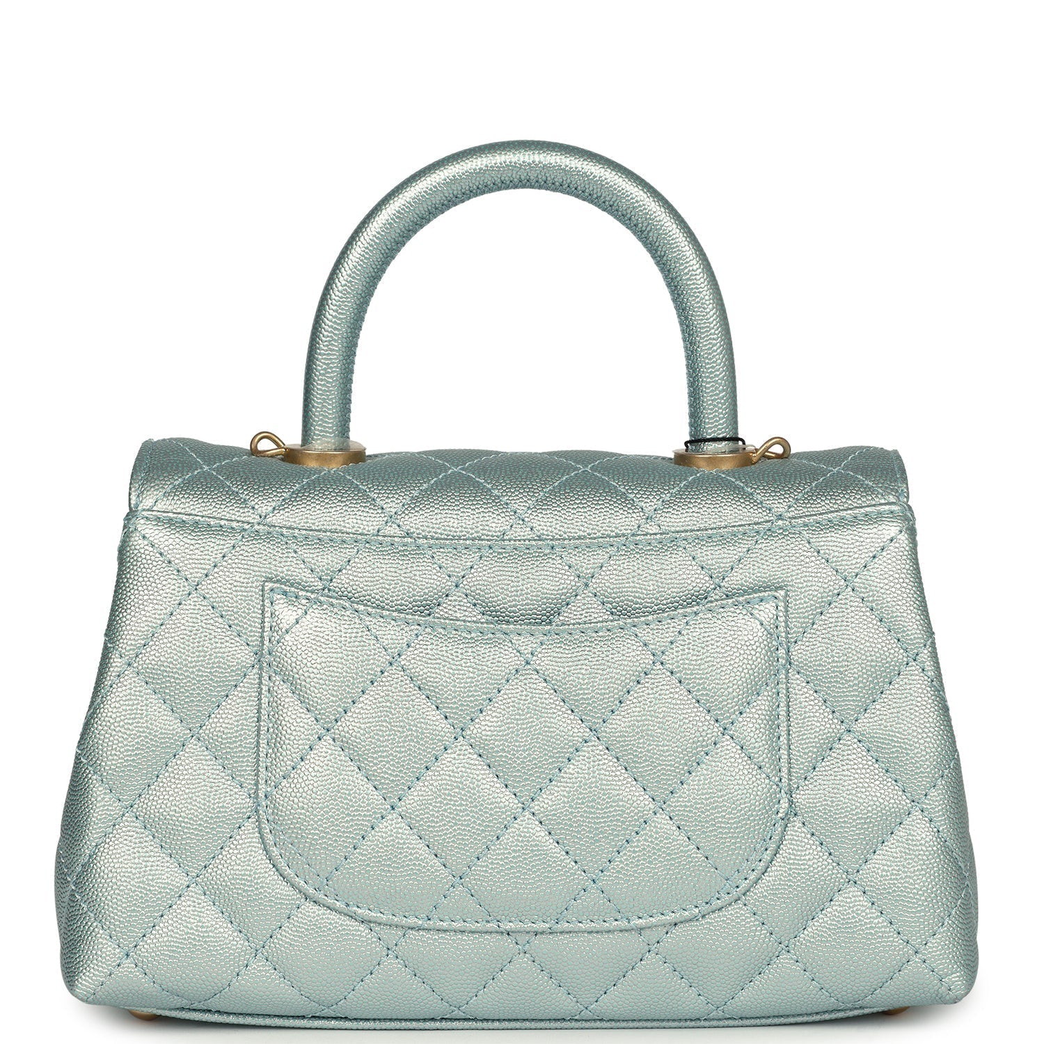 Chanel Small Coco Handle Flap Bag Light Blue Iridescent Caviar Aged Gold Hardware