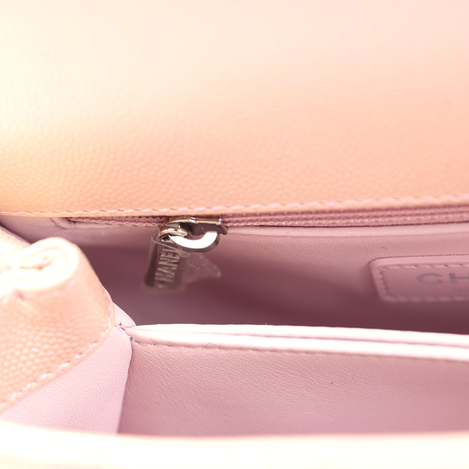Chanel Small Coco Handle Flap Bag Light Pink Iridescent Caviar Silver Hardware