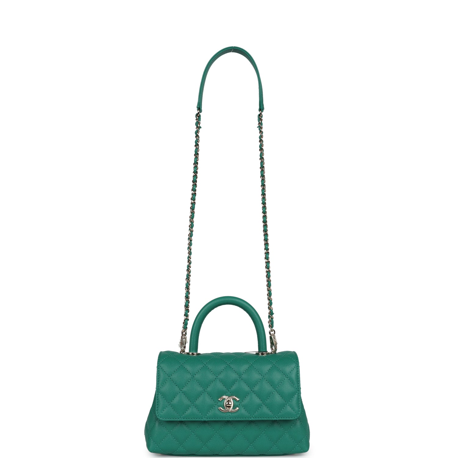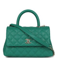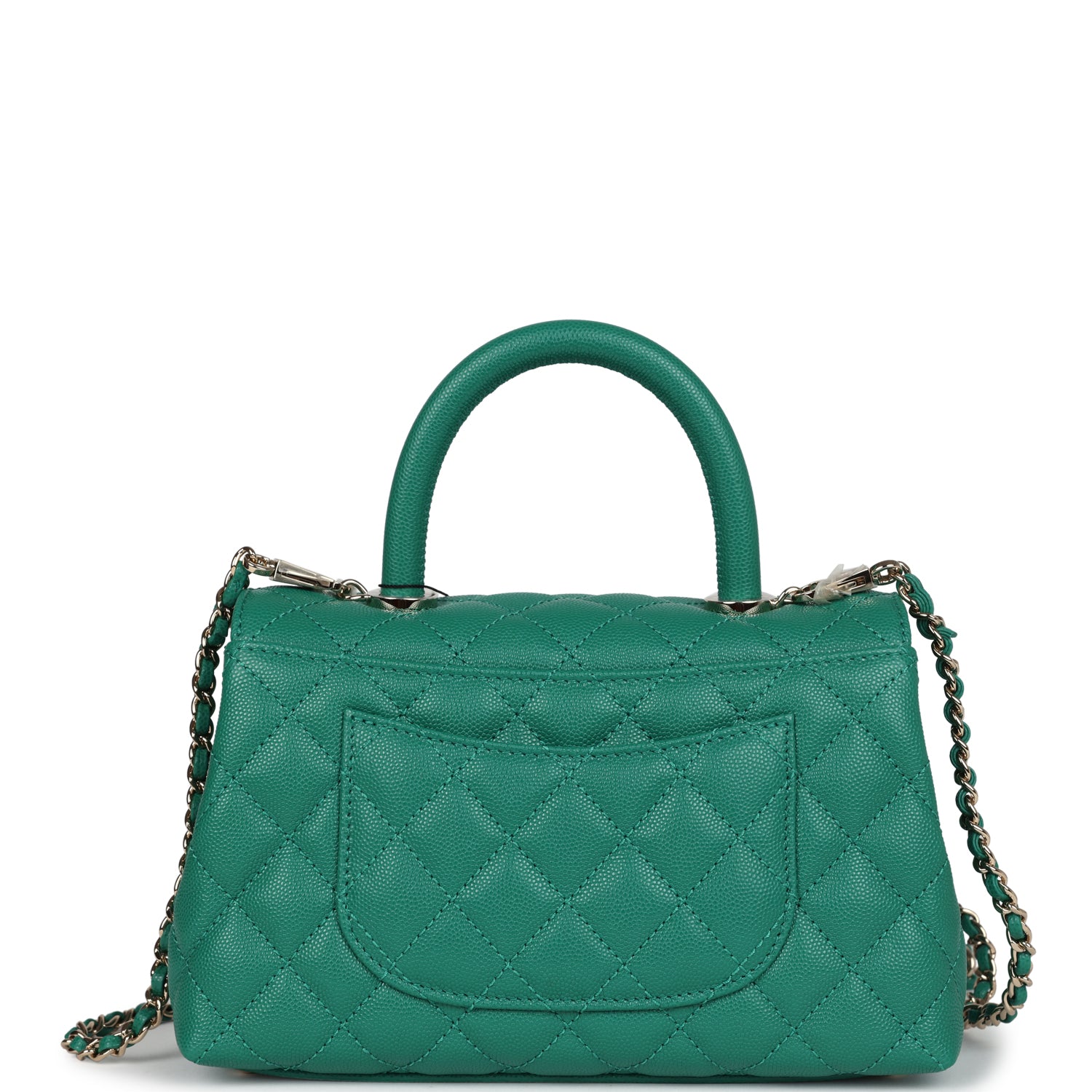Chanel Small Coco Top Handle Flap Bag Dark Green Caviar Light Gold Hardware