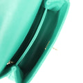 The interior is lined in dark green leather with one zip pocket on the rear wall and one center divide slip pocket.
