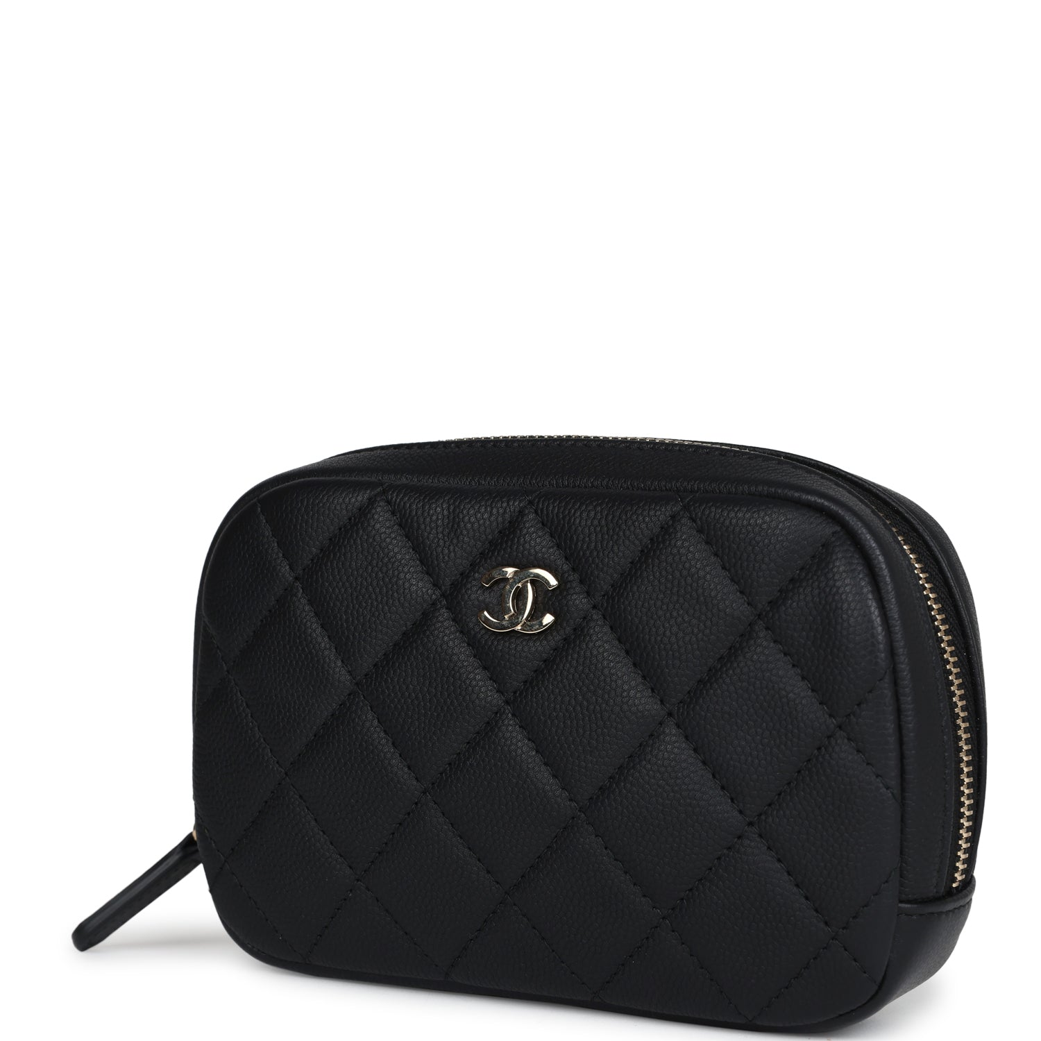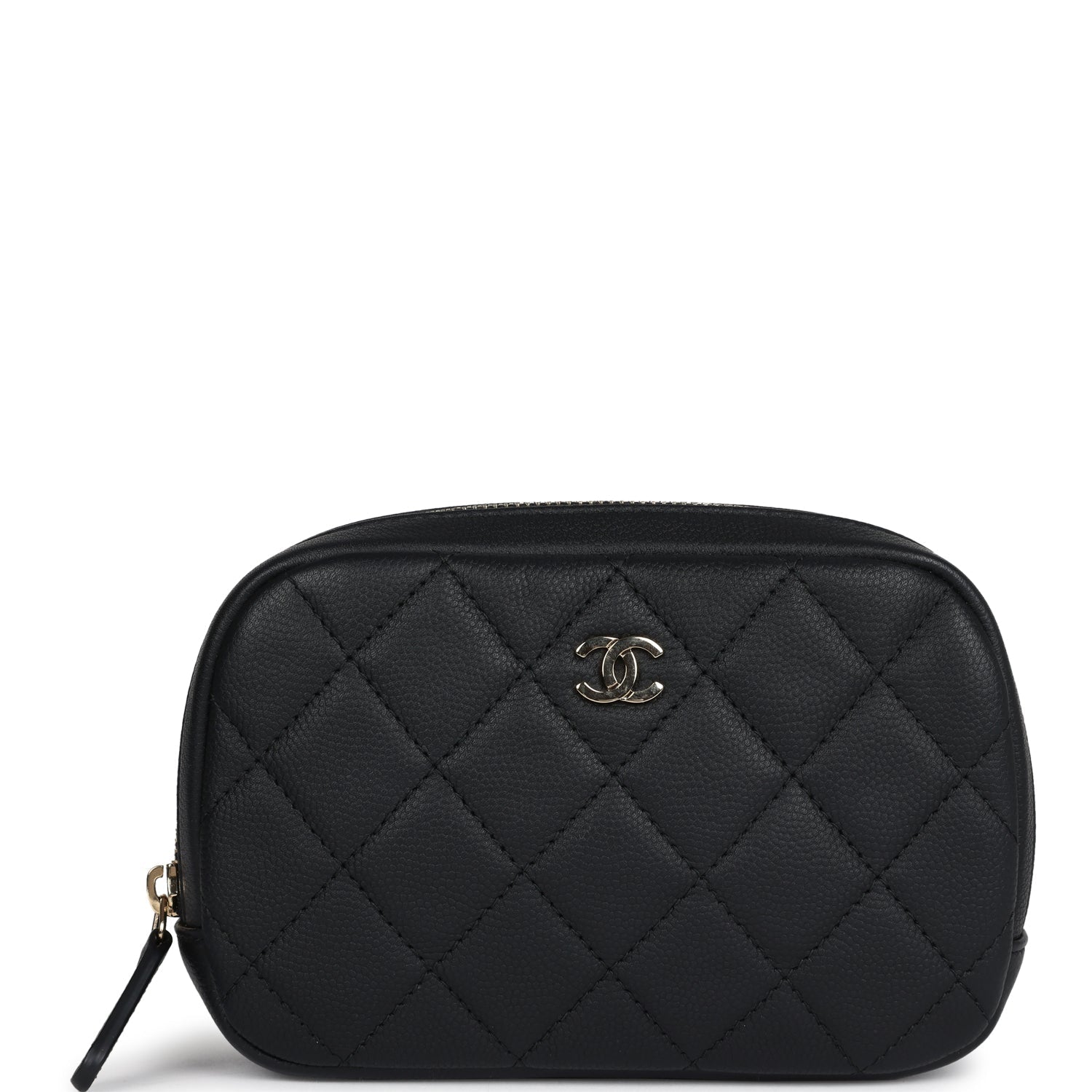 Chanel Small Curvy Cosmetic Pouch Black Caviar Light Gold Hardware