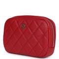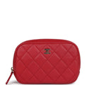Chanel Small Curvy Cosmetic Pouch Red Caviar Light Gold Hardware