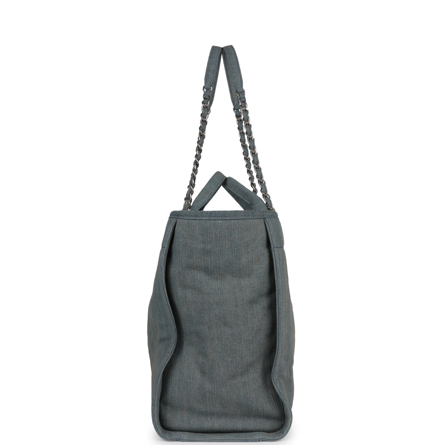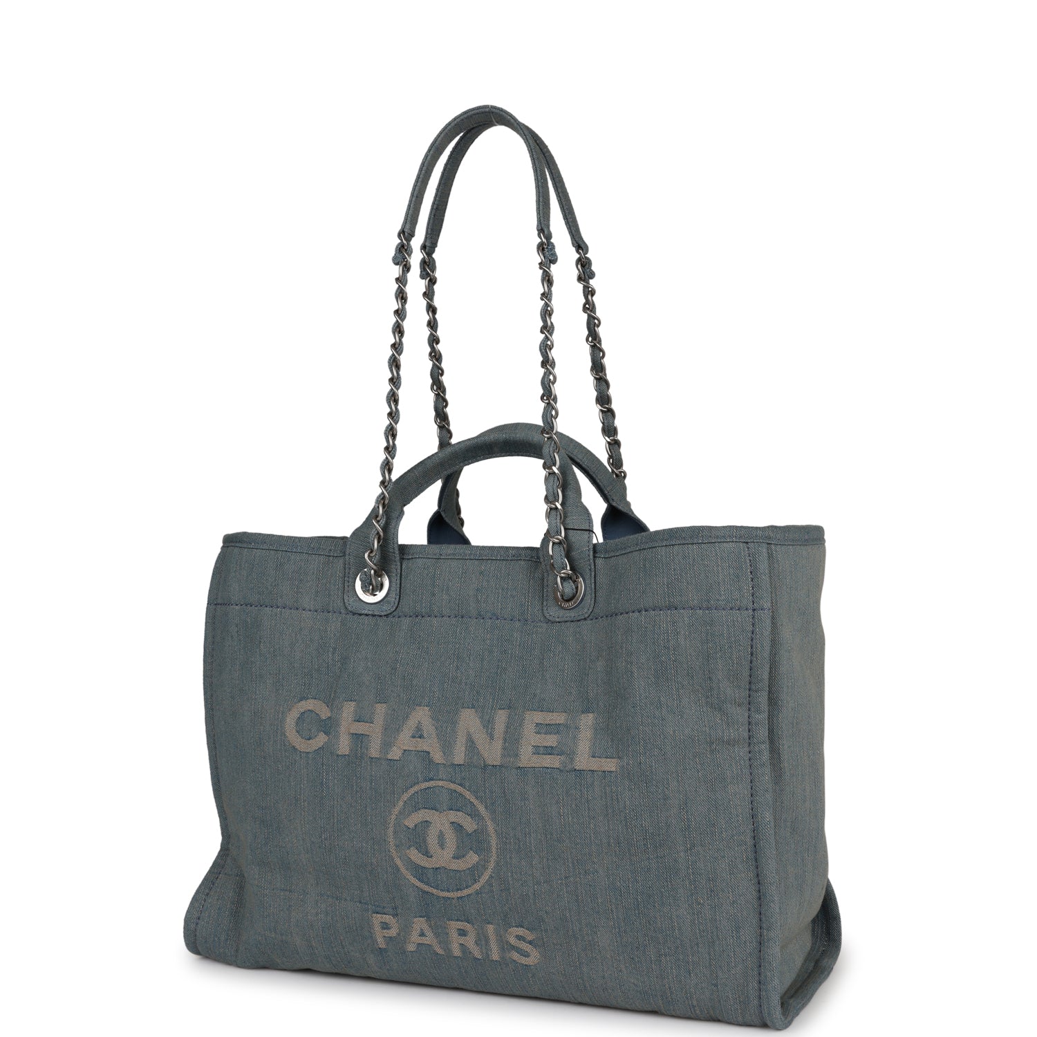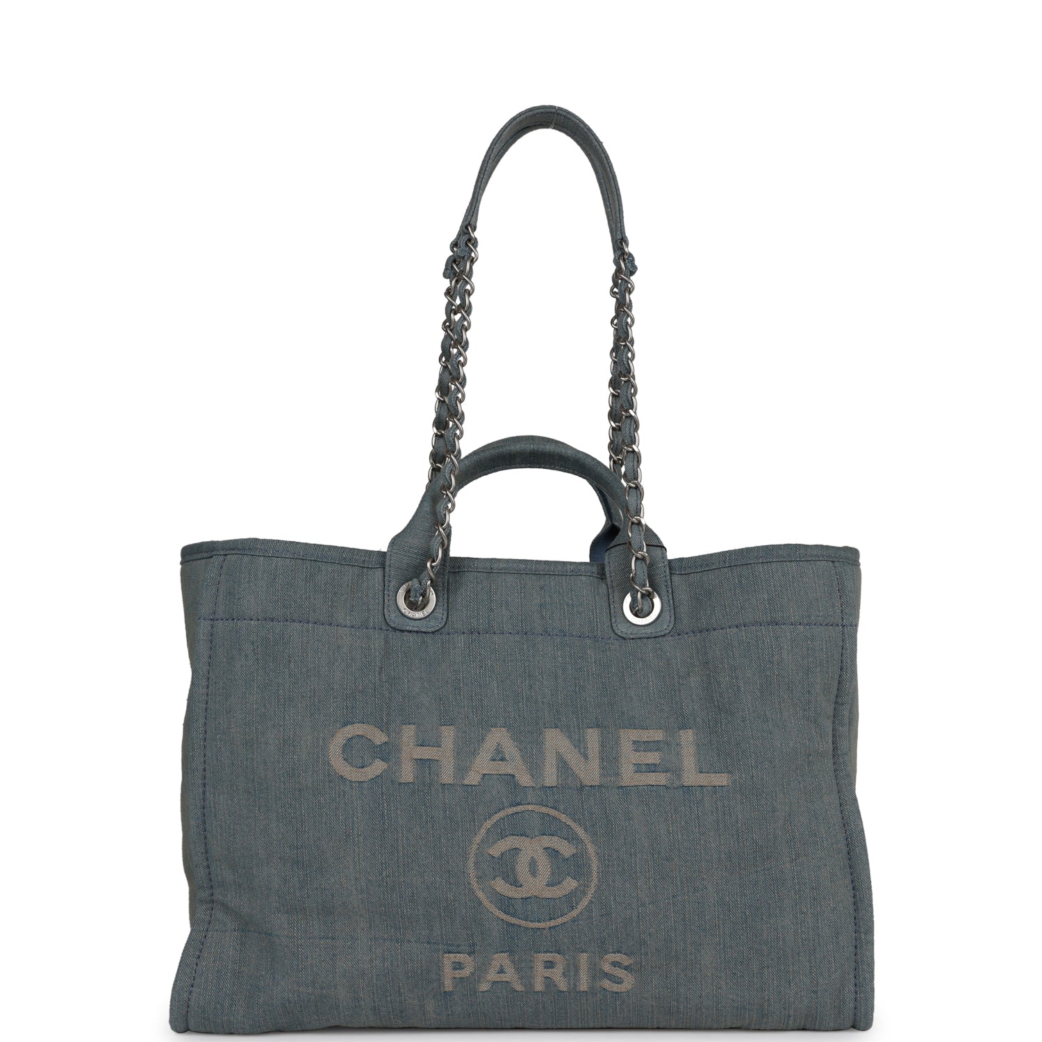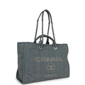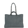 Chanel Large Deauville Shopping Tote Distressed Blue Denim Silver Hardware