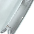 The interior is lined in light grey leather and has 2 interior pockets; one zippered pocket and 1 slip pocket.