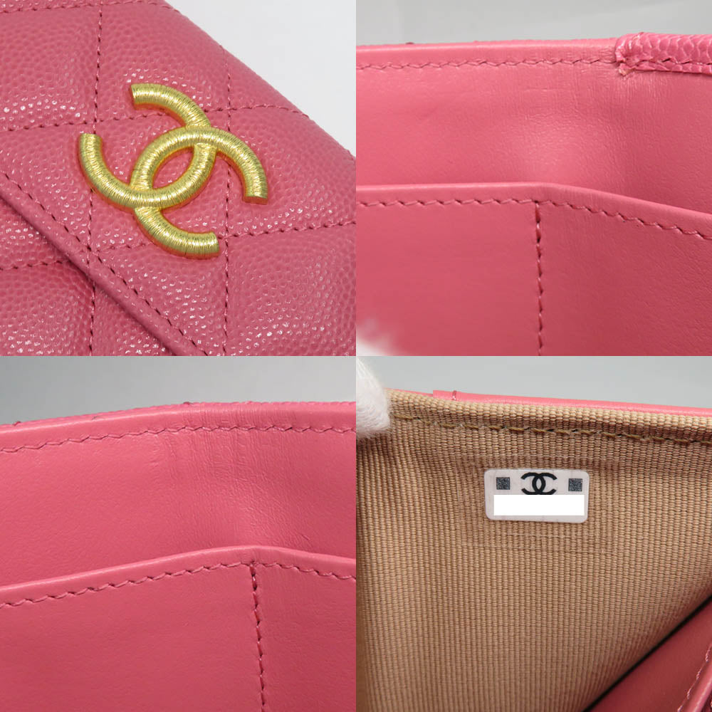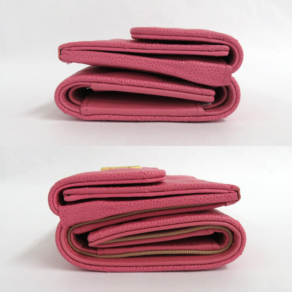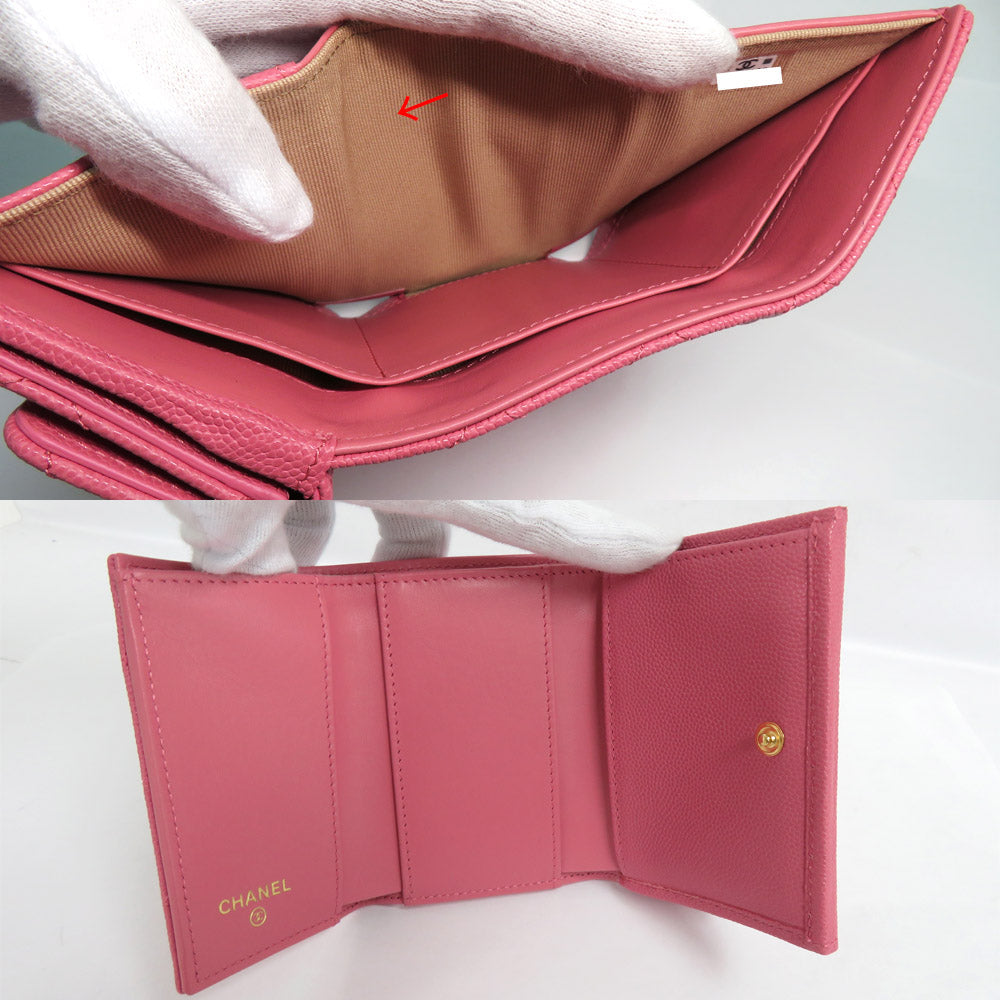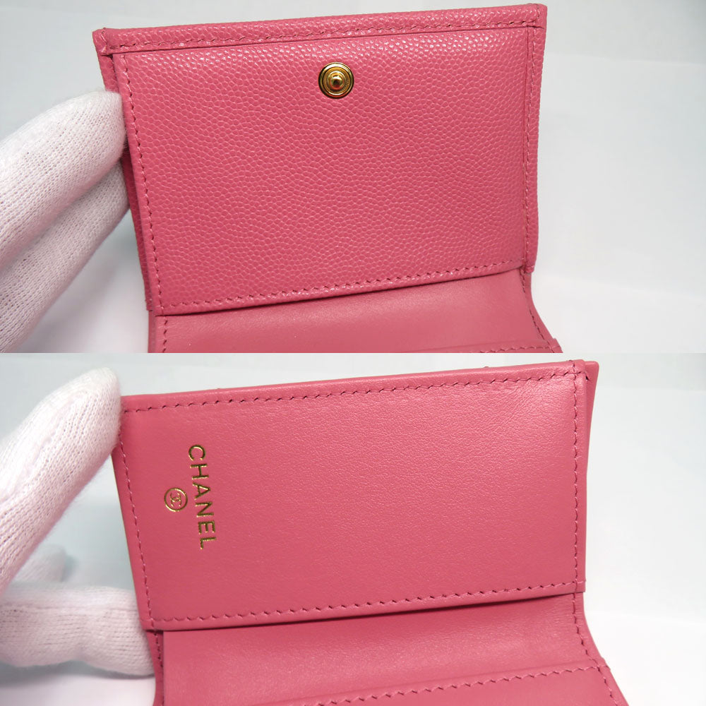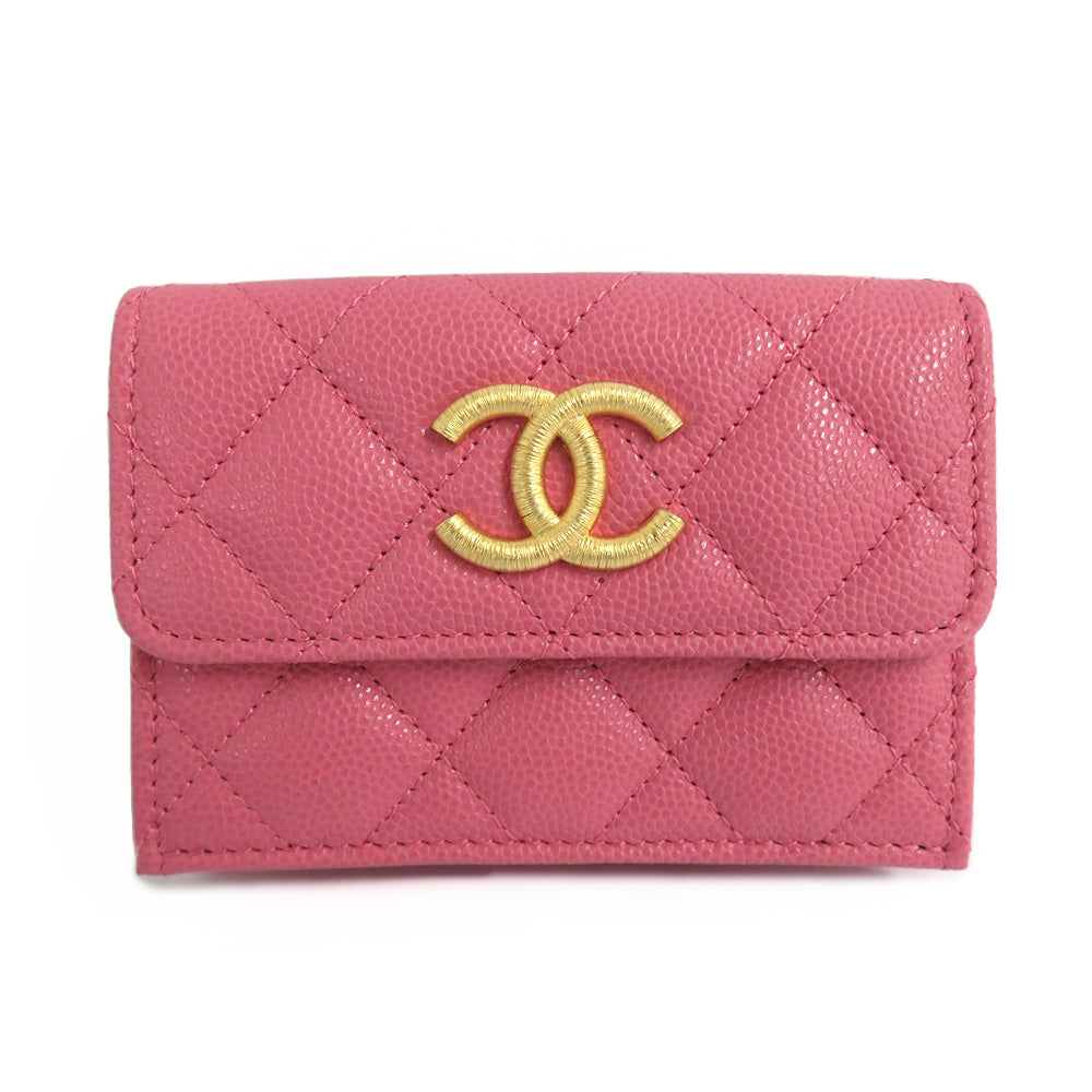Chanel Small Flap Wallet AP3518 Matrasse Caviar S Pink G Coco Metal Three Folded Wallet