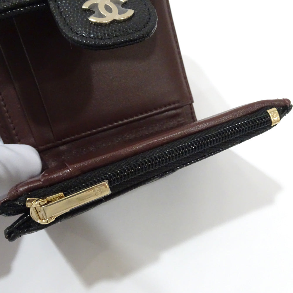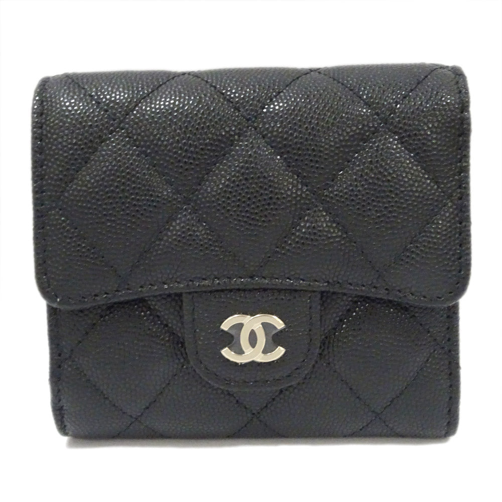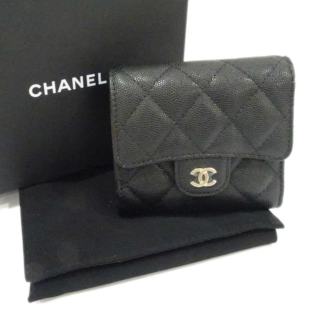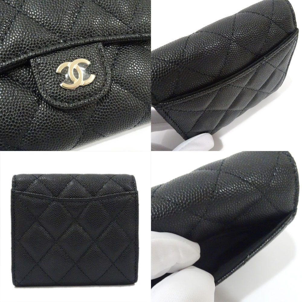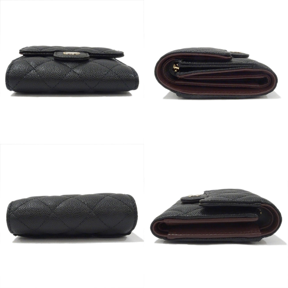 CHANEL Small Flap Wallet Three Fold Wallet Green S Caviar Skin Black Gold AP0712 Matrasse Wallet Small s