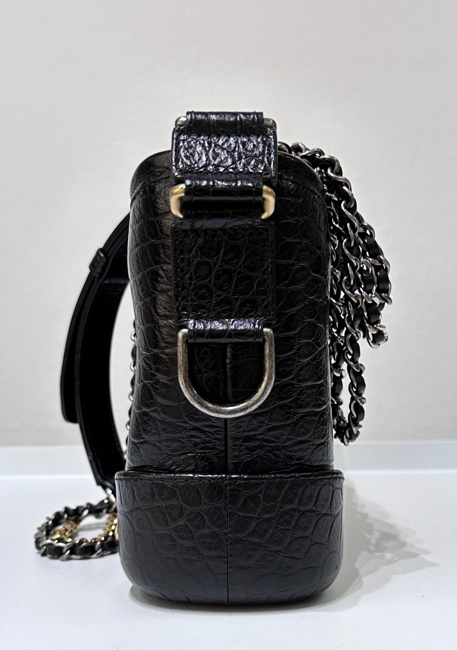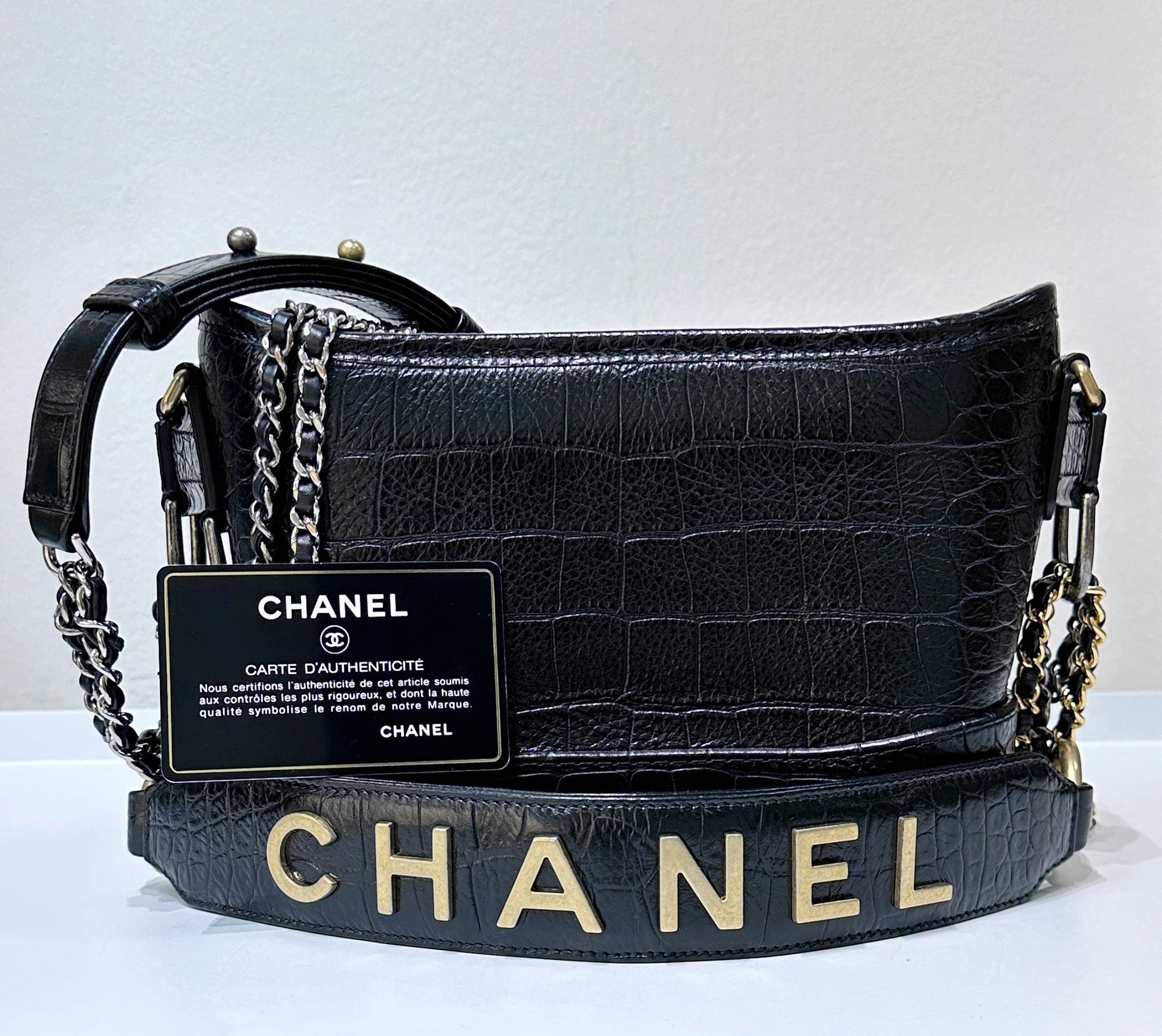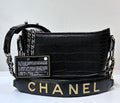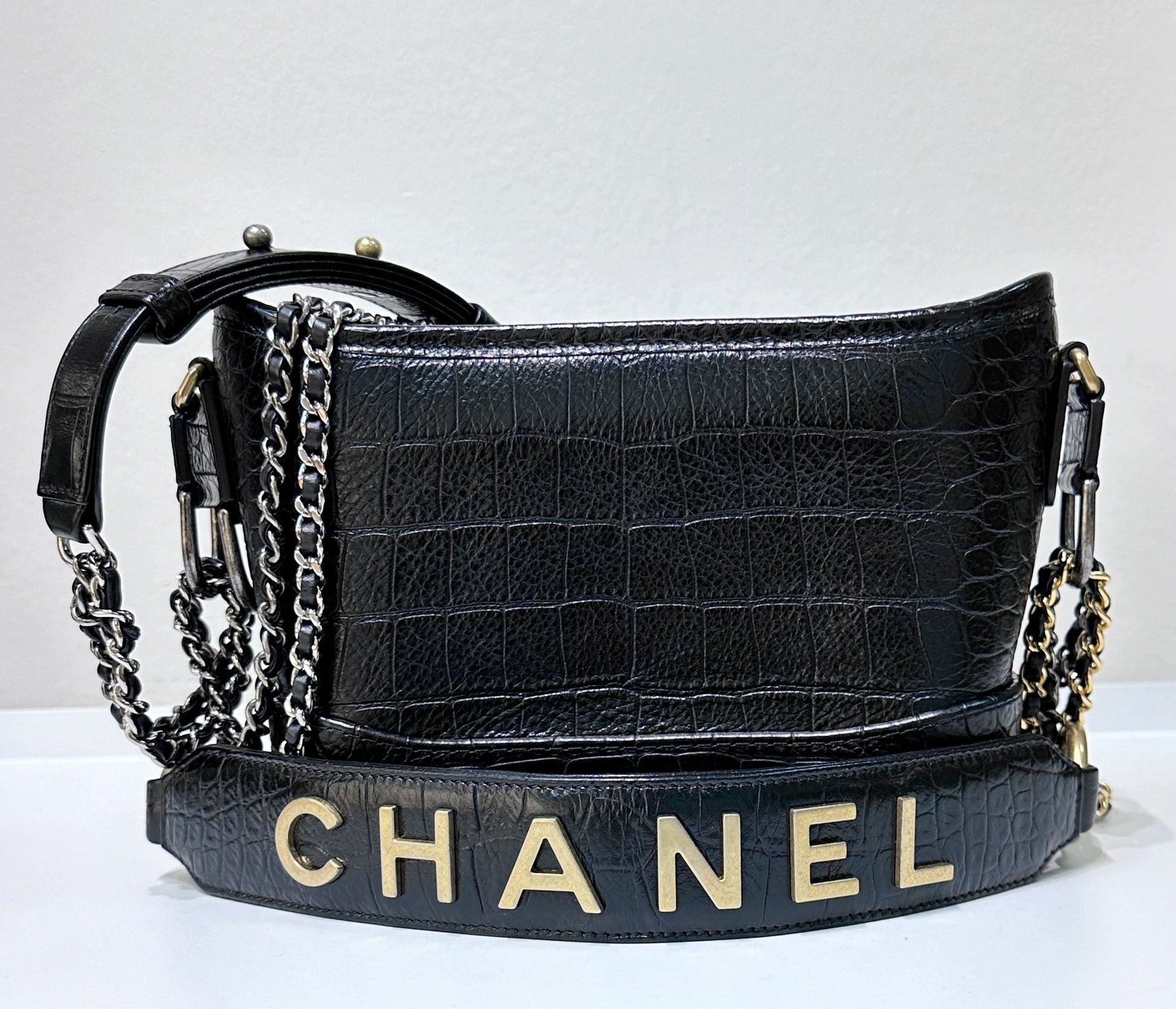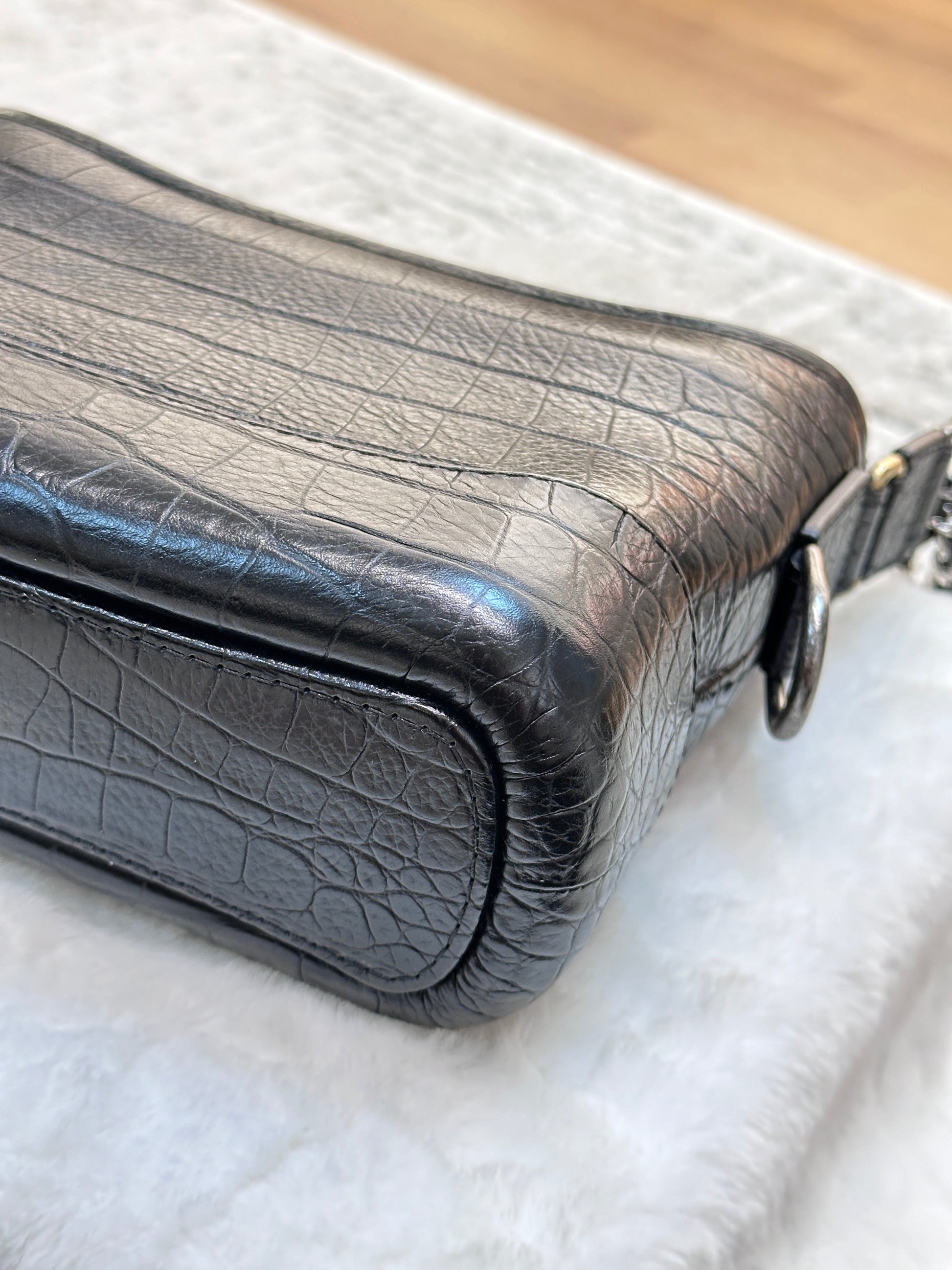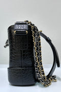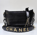 Chanel Small Gabrielle Hobo Bag Crocodile Embossed Calfskin Black