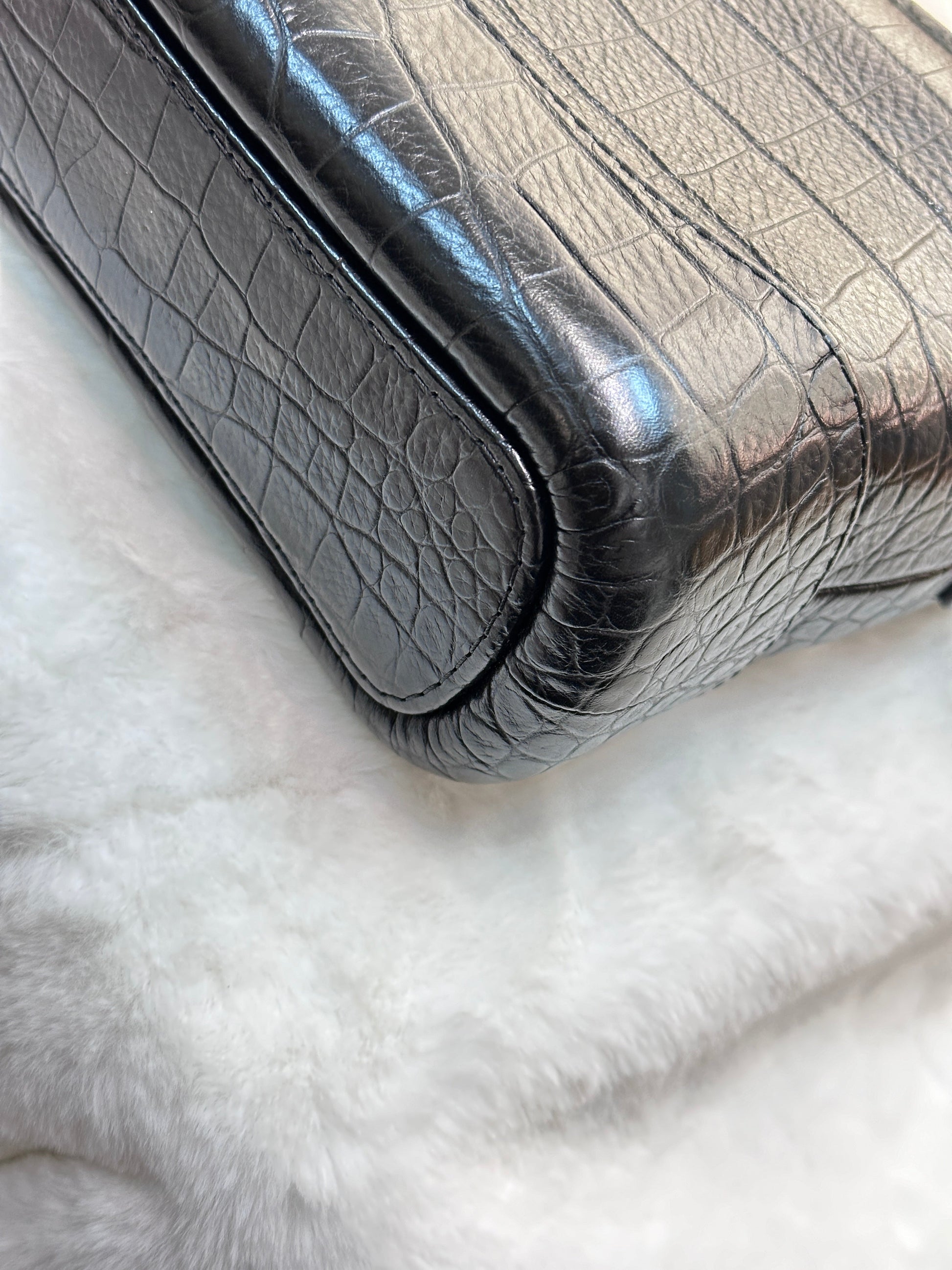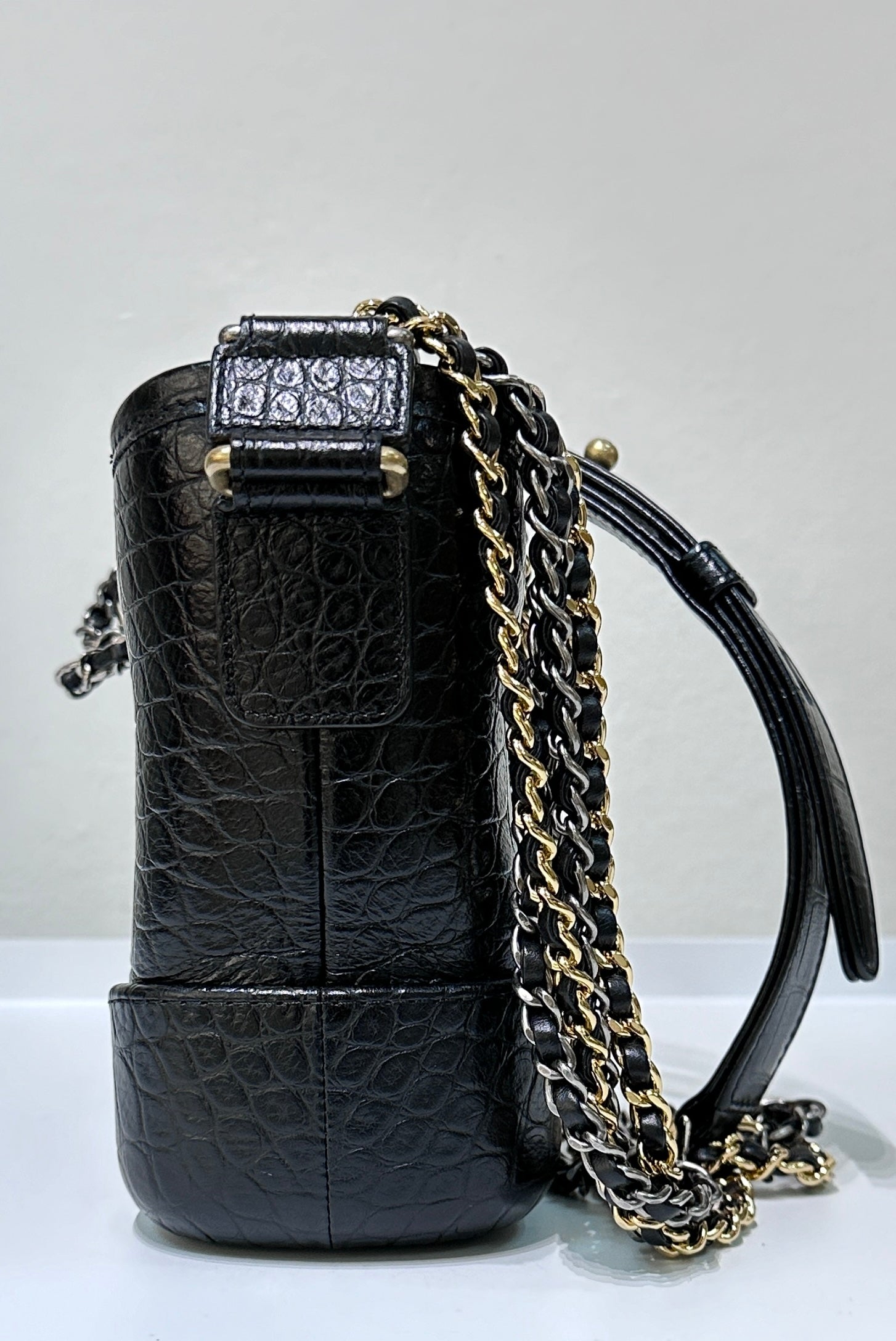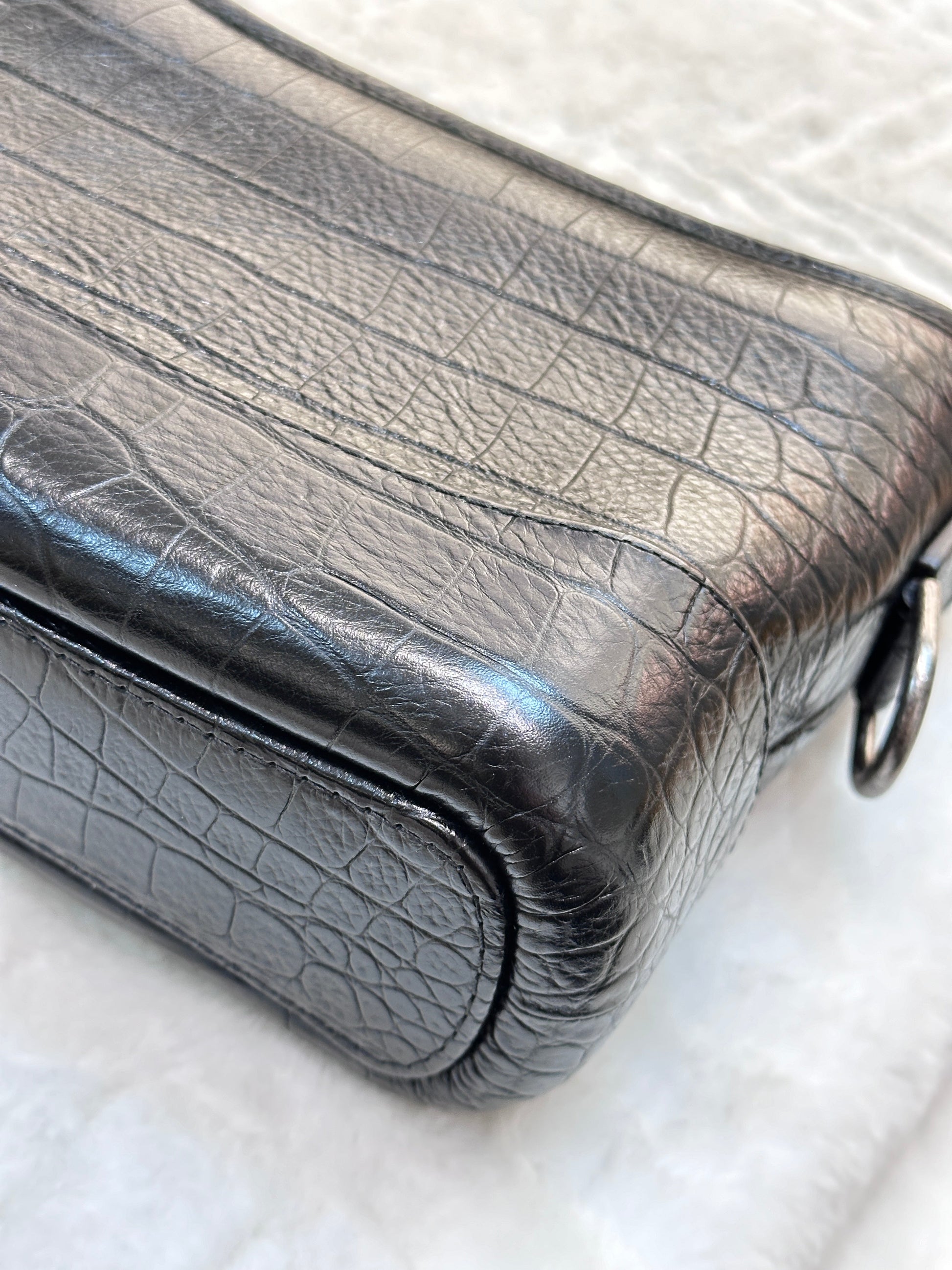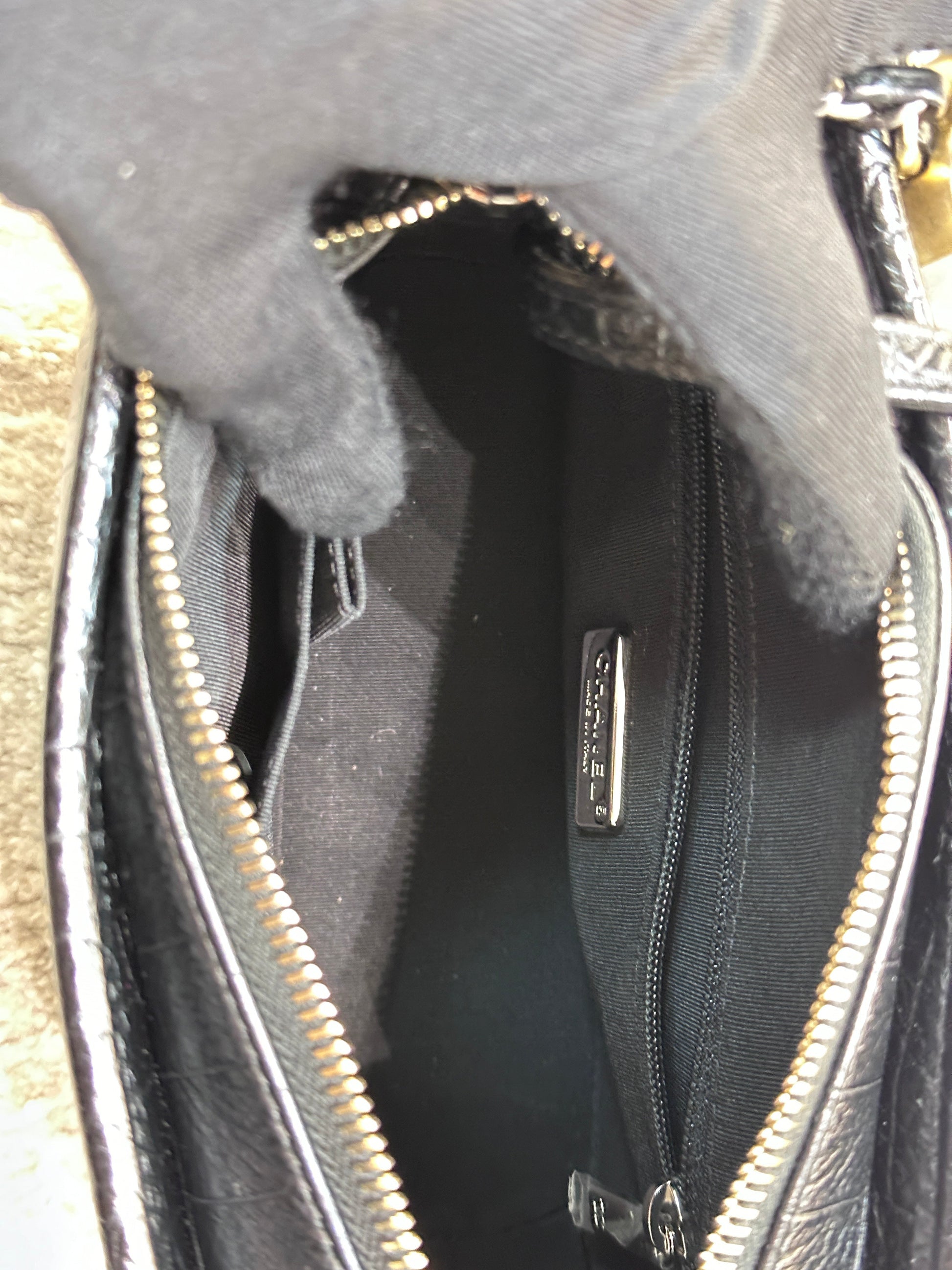 Chanel Small Gabrielle Hobo Bag Crocodile Embossed Calfskin Black