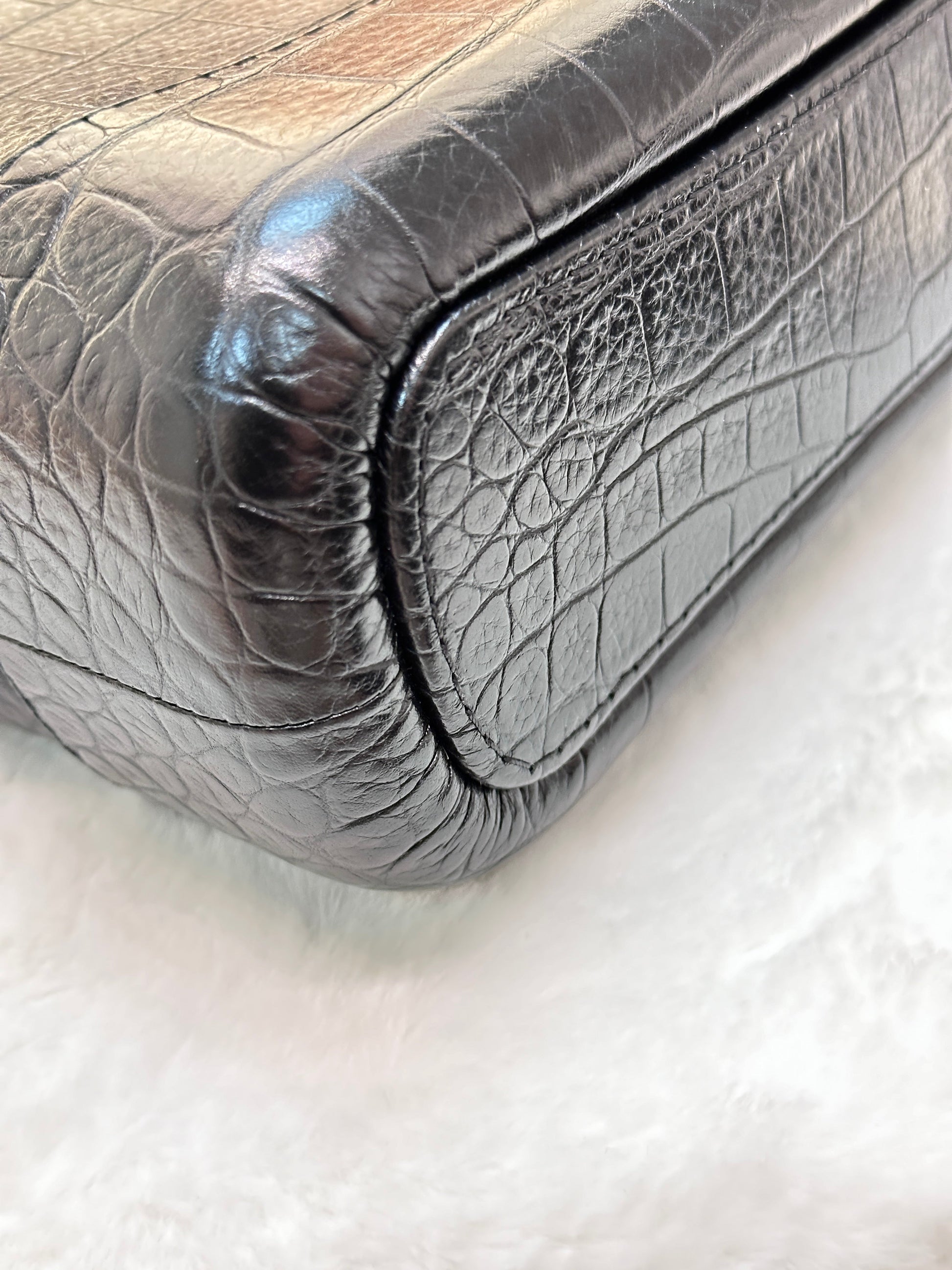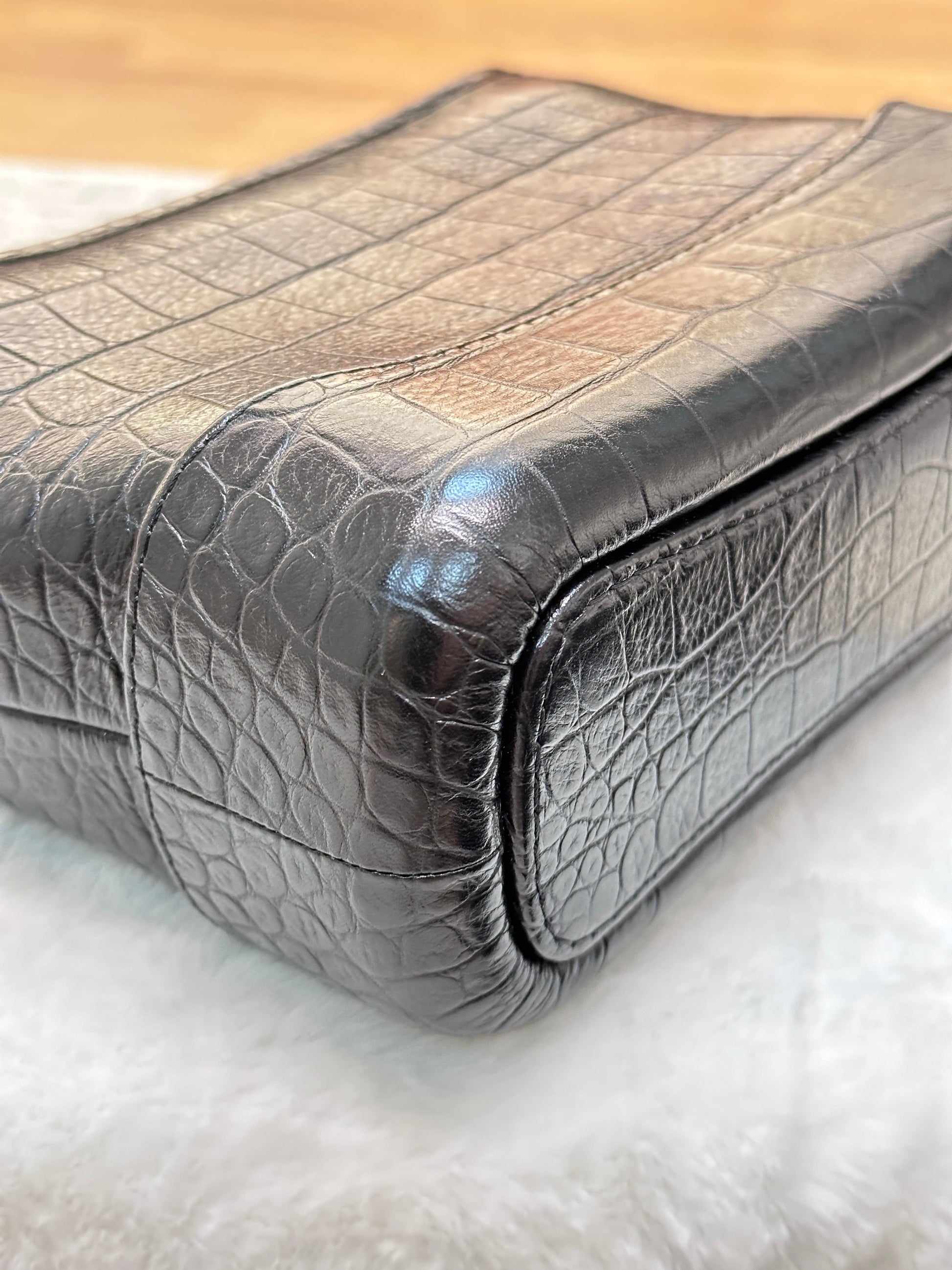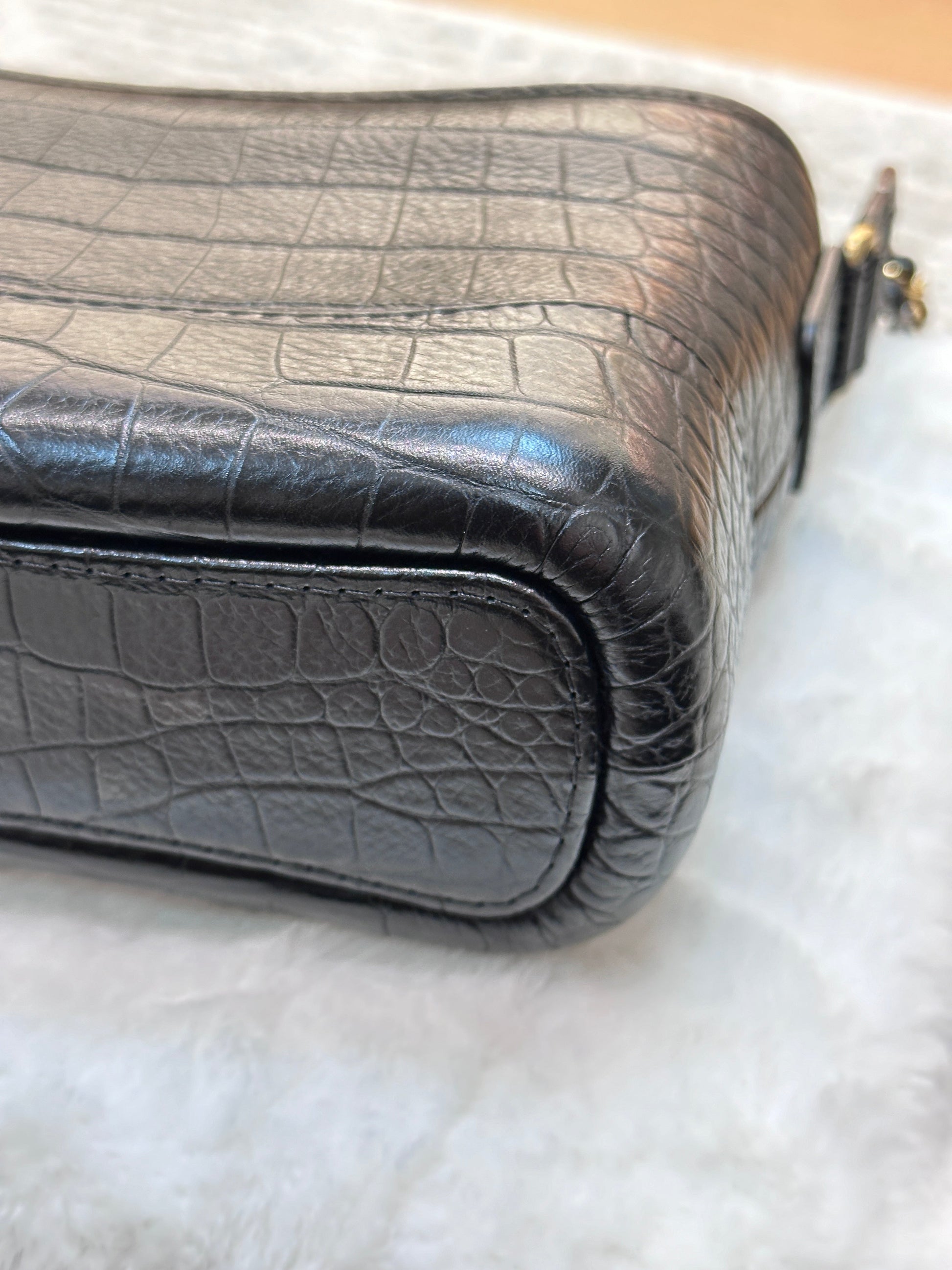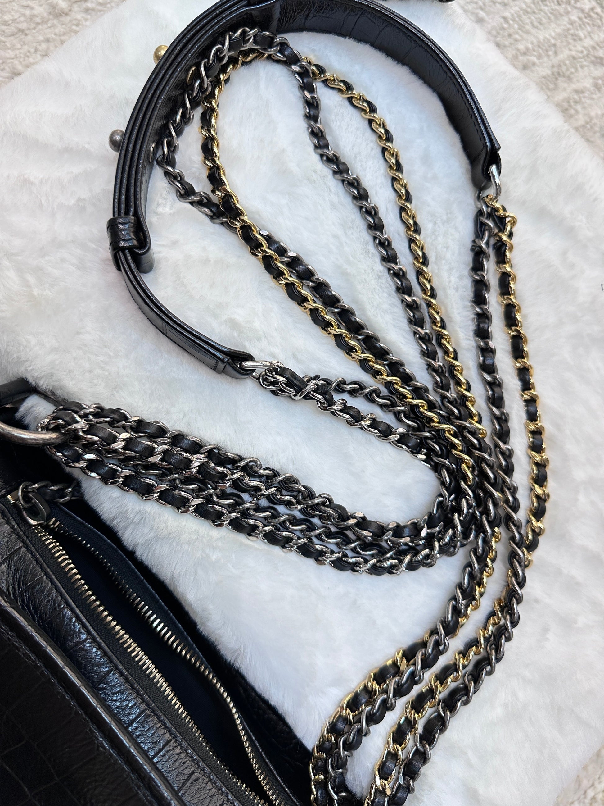 Chanel Small Gabrielle Hobo Bag Crocodile Embossed Calfskin Black