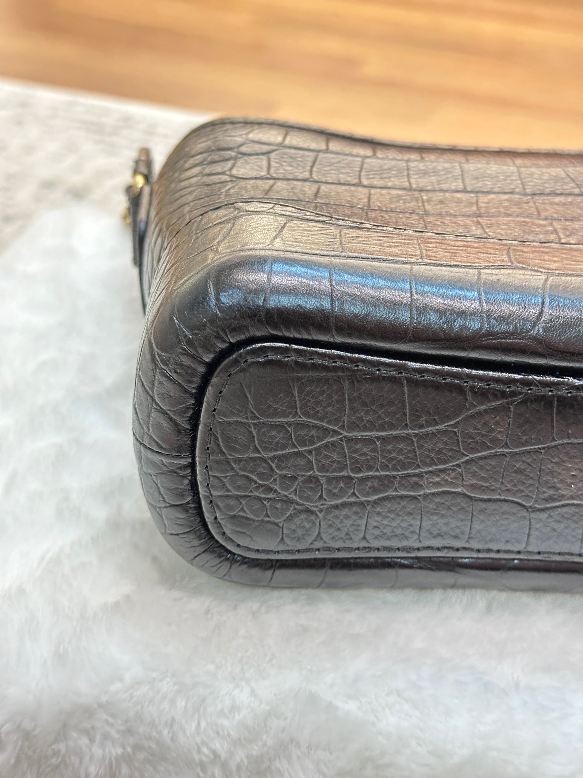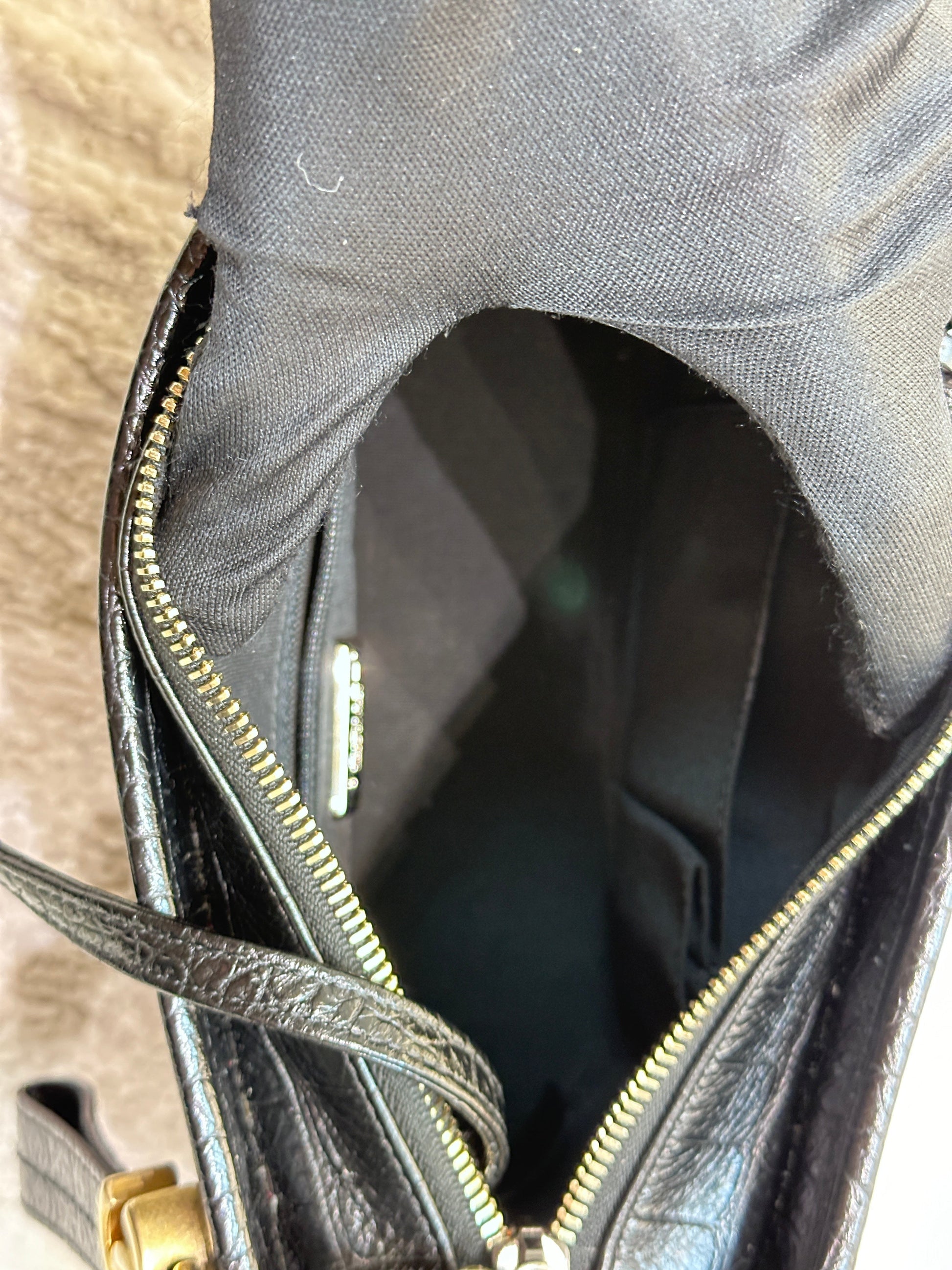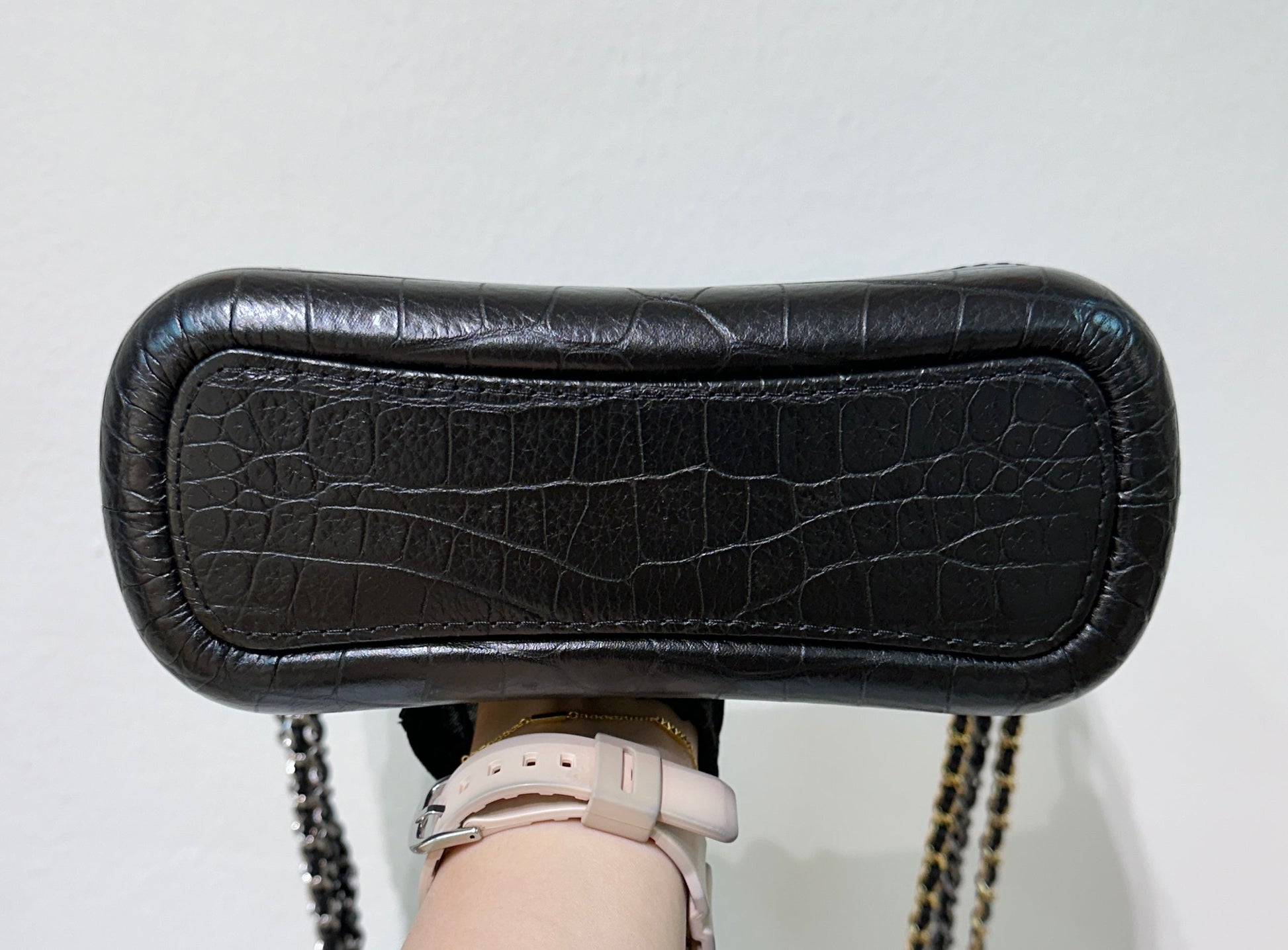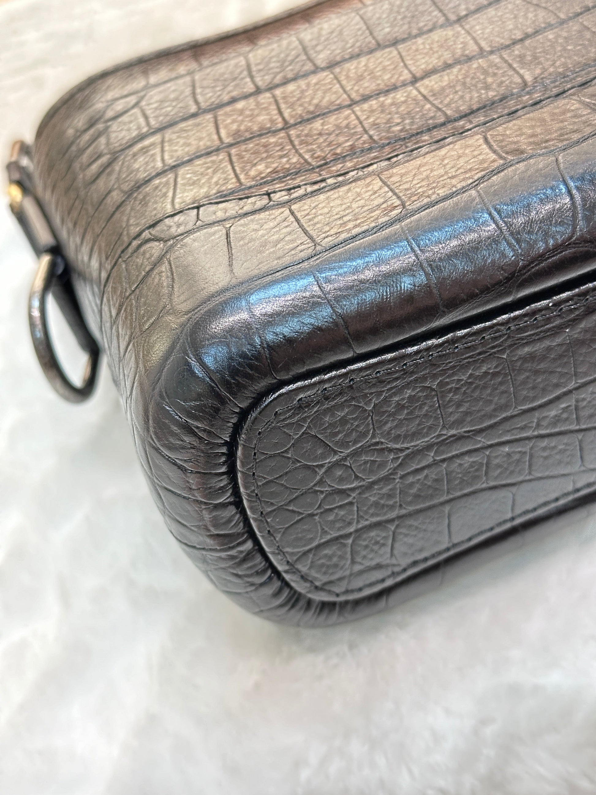 Chanel Small Gabrielle Hobo Bag Crocodile Embossed Calfskin Black