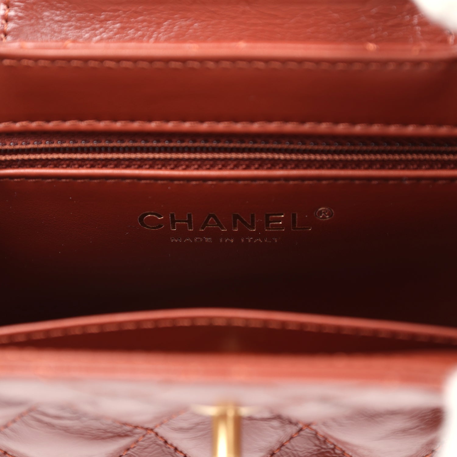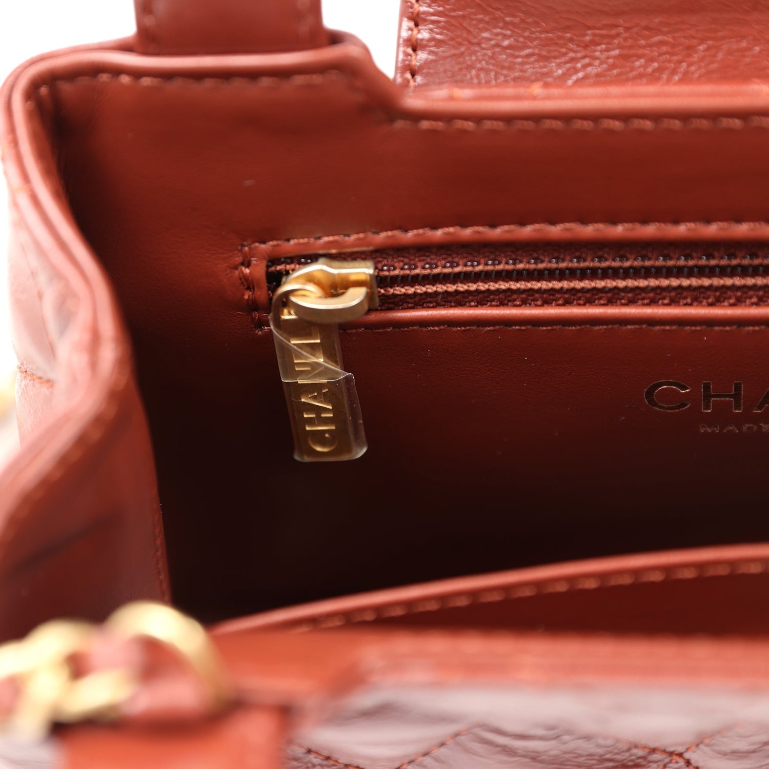 Chanel Small Kelly Brown Shiny Aged Calfskin Brushed Gold Hardware