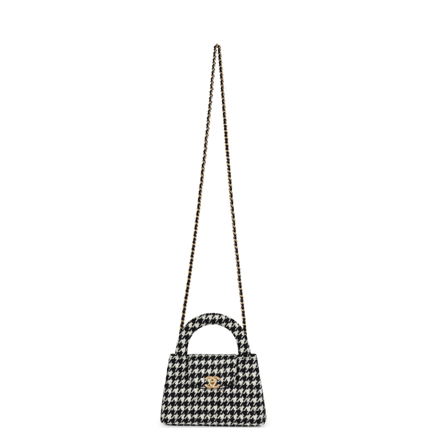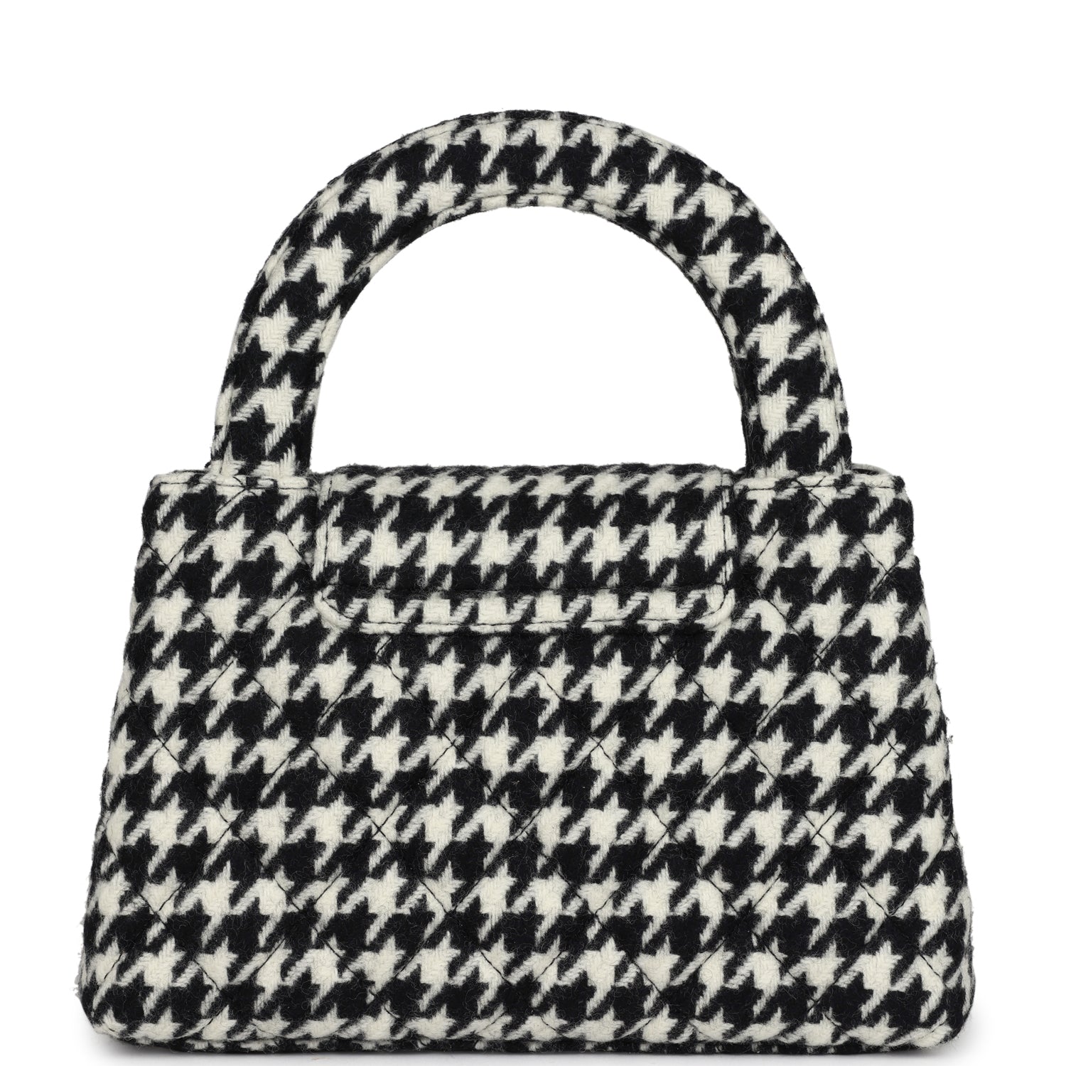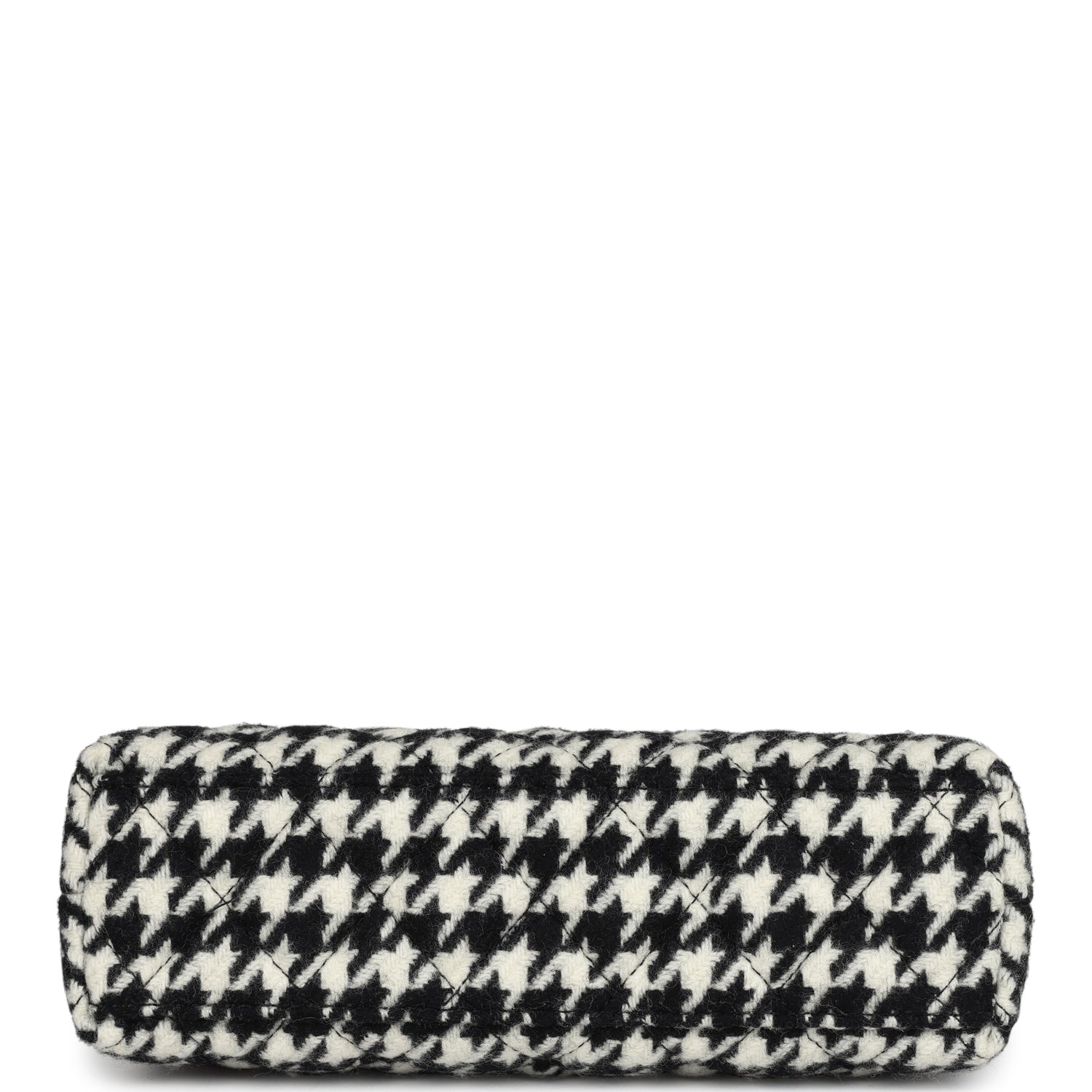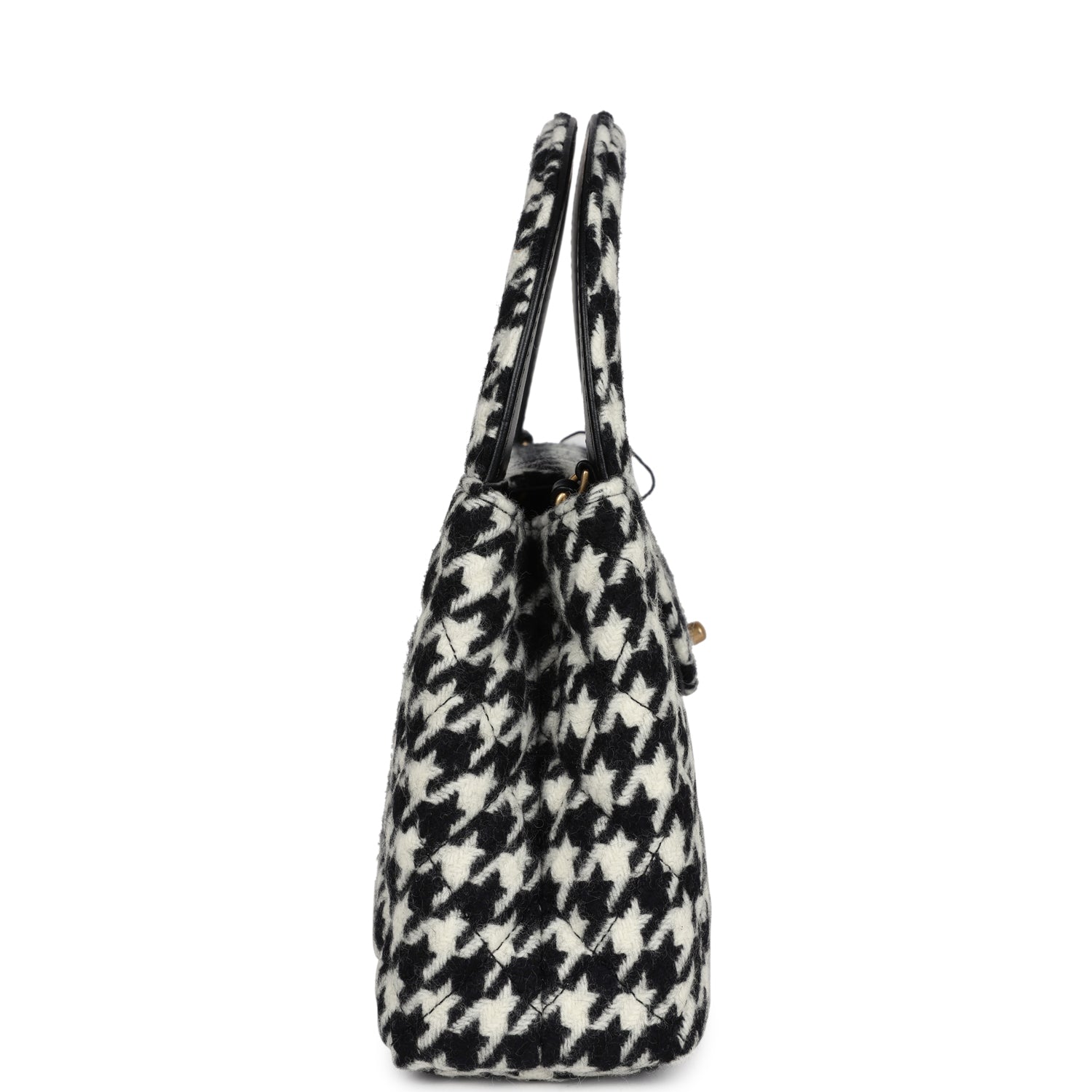 Chanel Small Kelly Shopper Black and White Houndstooth Tweed Brushed Gold Hardware