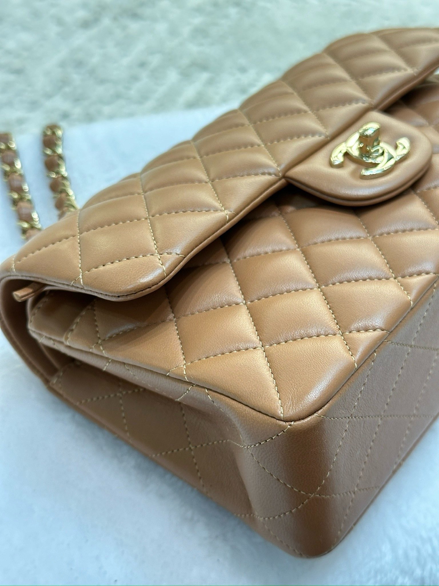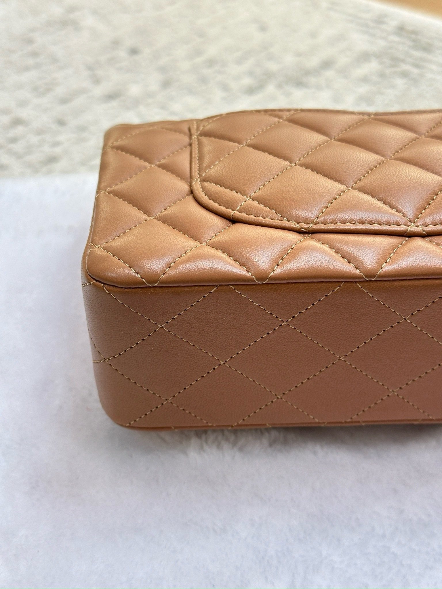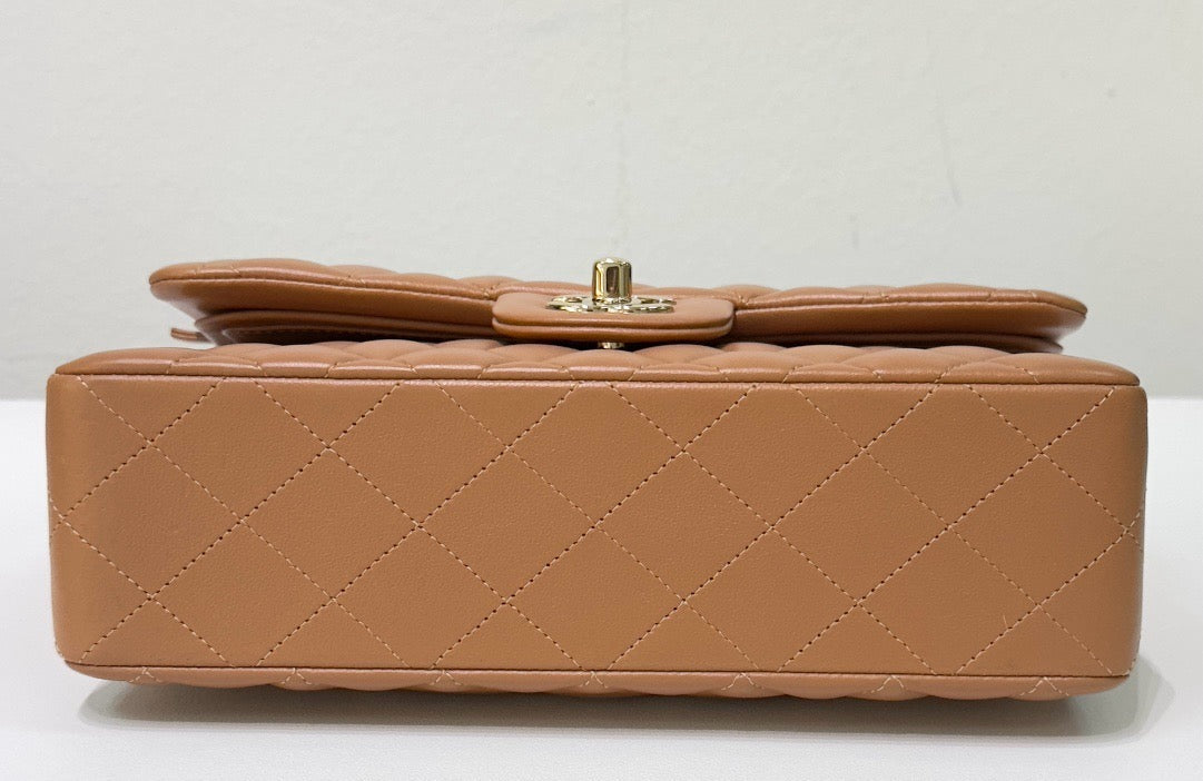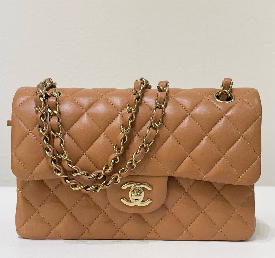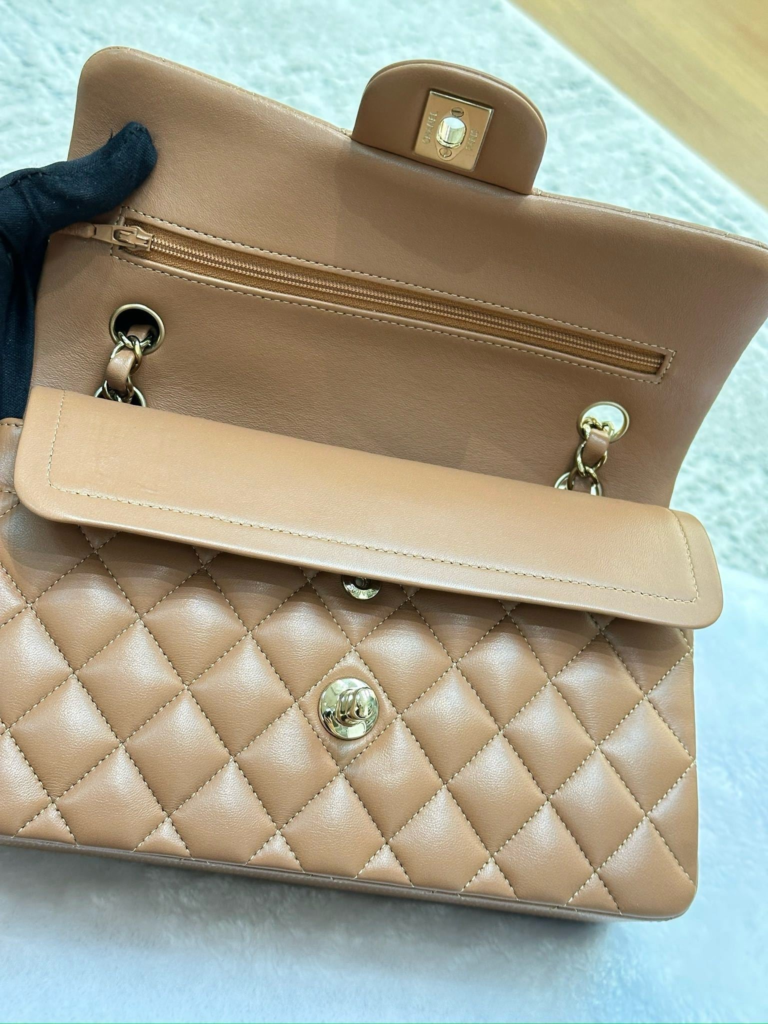 Chanel Small Lambskin Classic Double Flap Bag Dark Beige LGHW