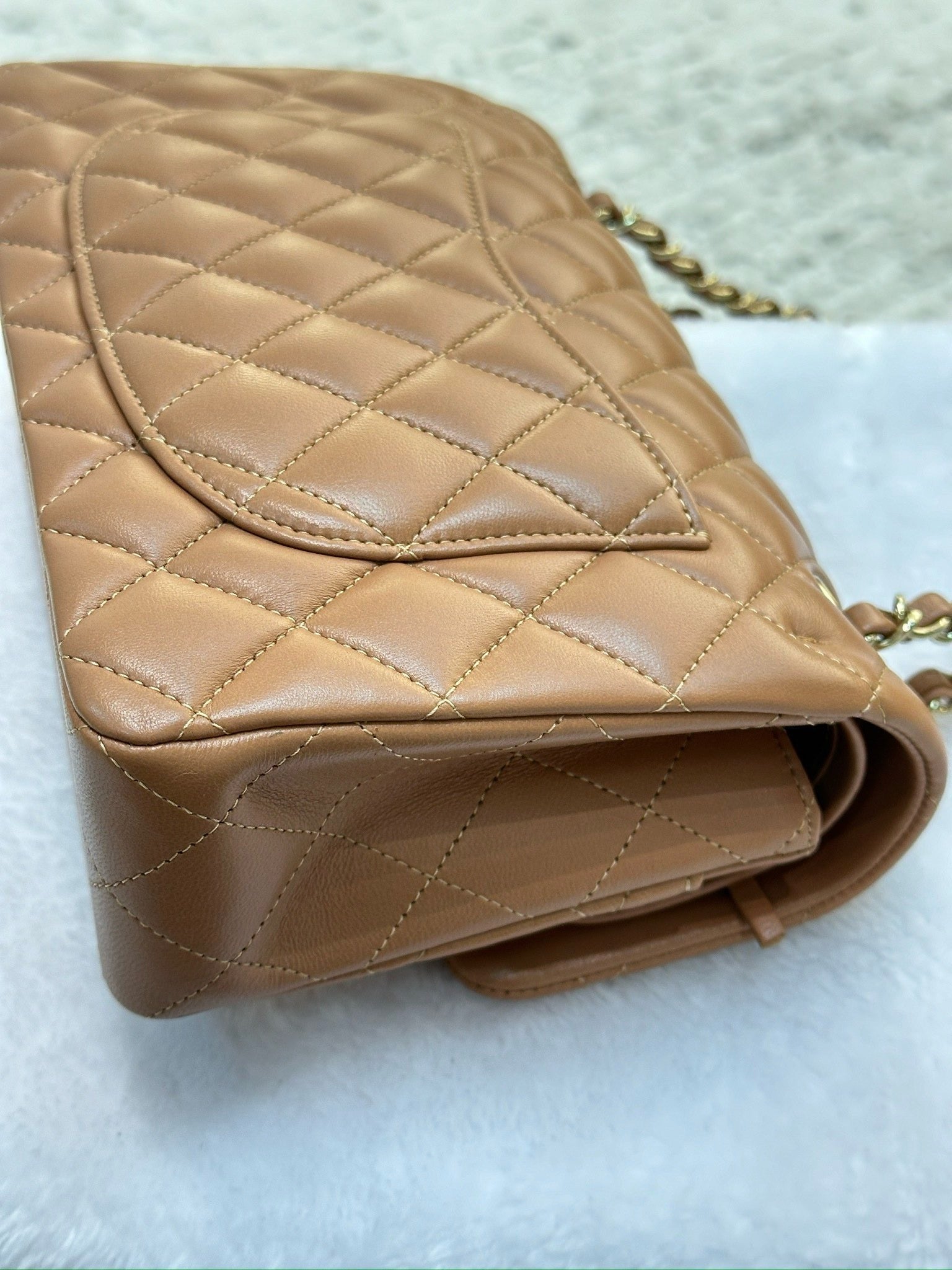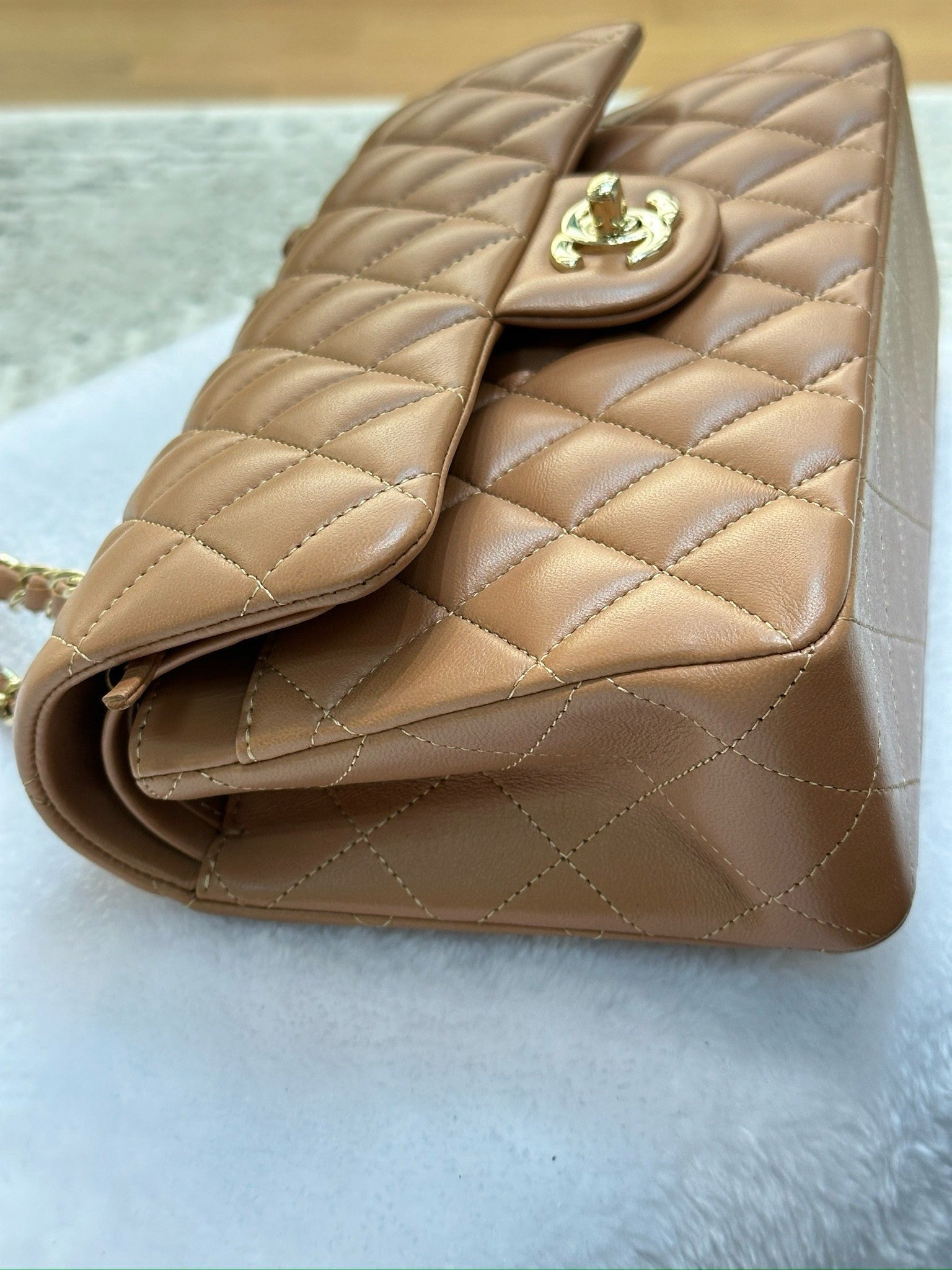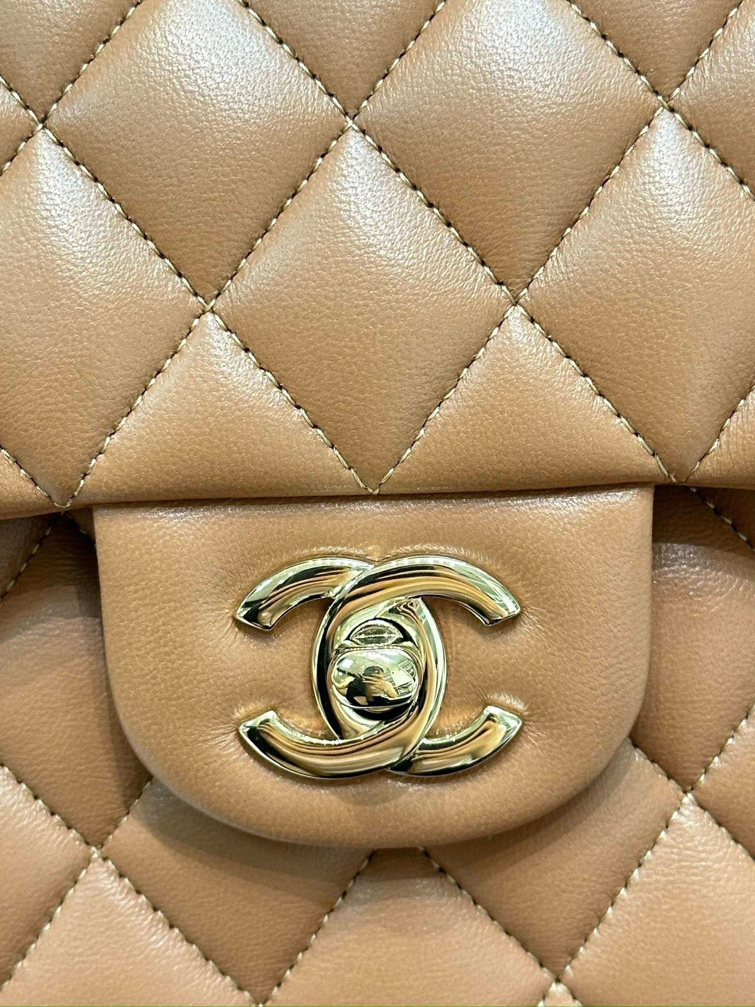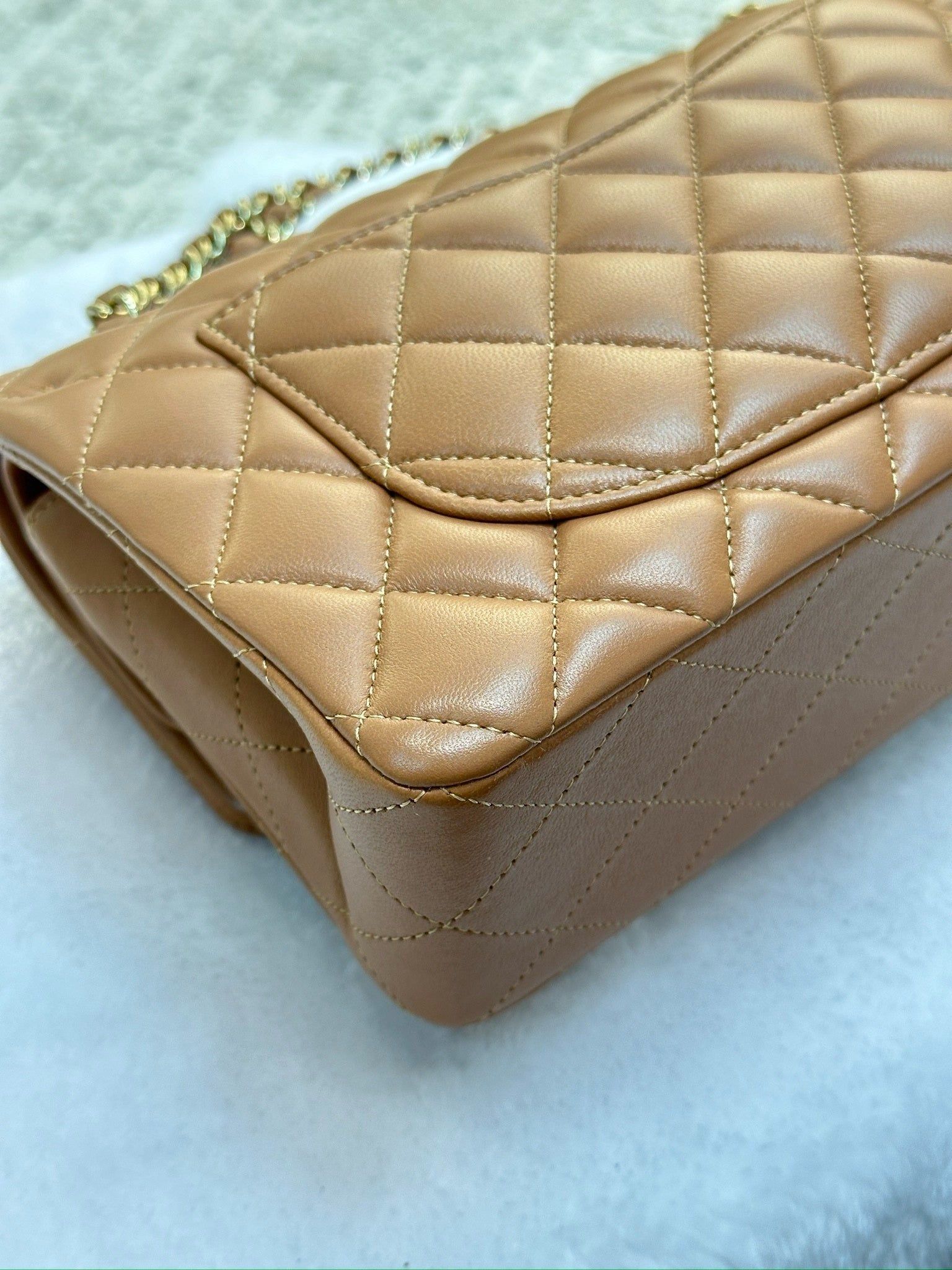 Chanel Small Lambskin Classic Double Flap Bag Dark Beige LGHW