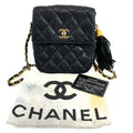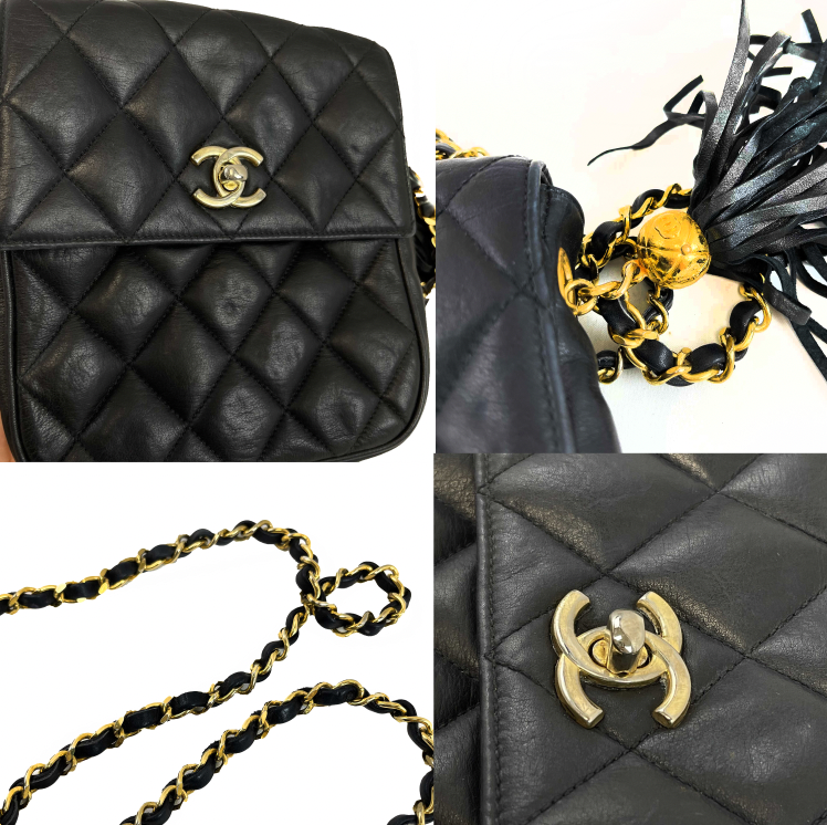 CHANEL Small Square Flap Leather Vintage Gold CC Tassel Black Crossbody Handbag