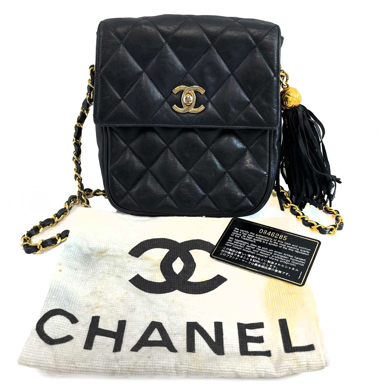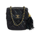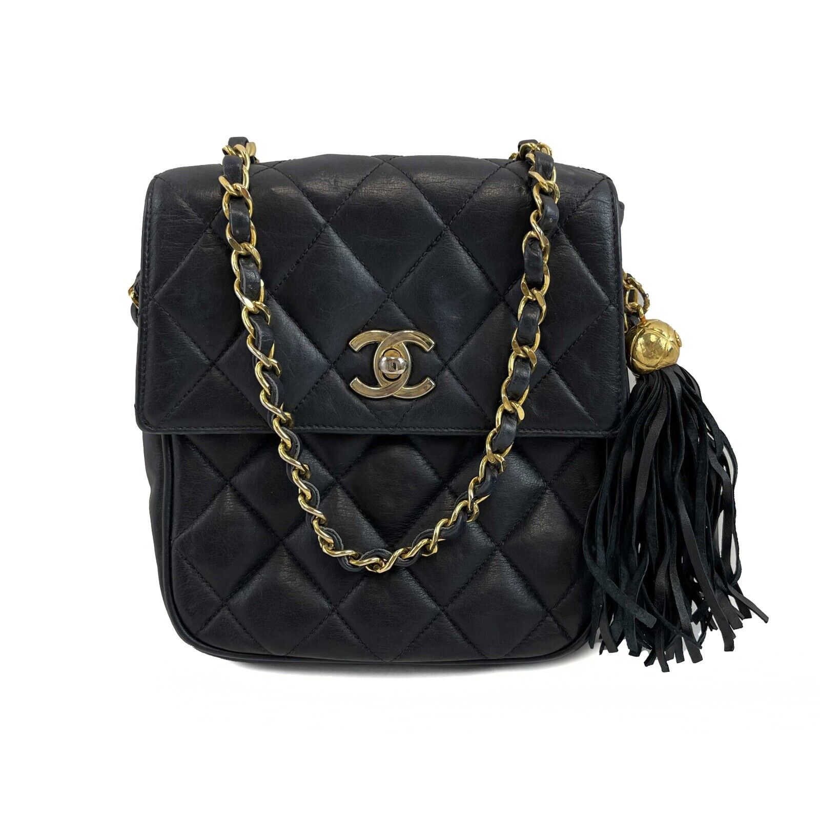 Chanel - Good - Small Square Flap Leather Vintage Gold CC w/Tassel - Black - Handbag