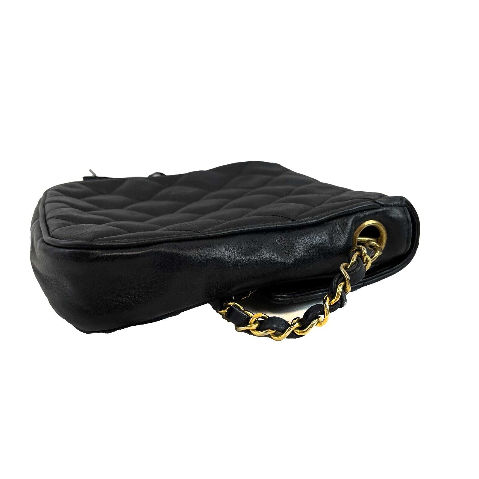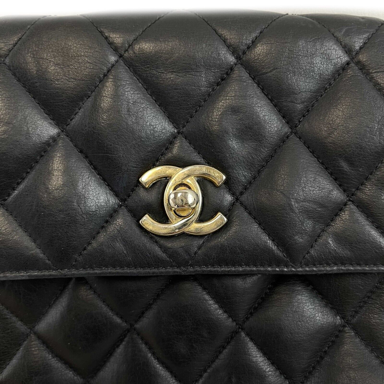 * Features a gold chain link leather threaded strap and a gold Chanel CC turn lock